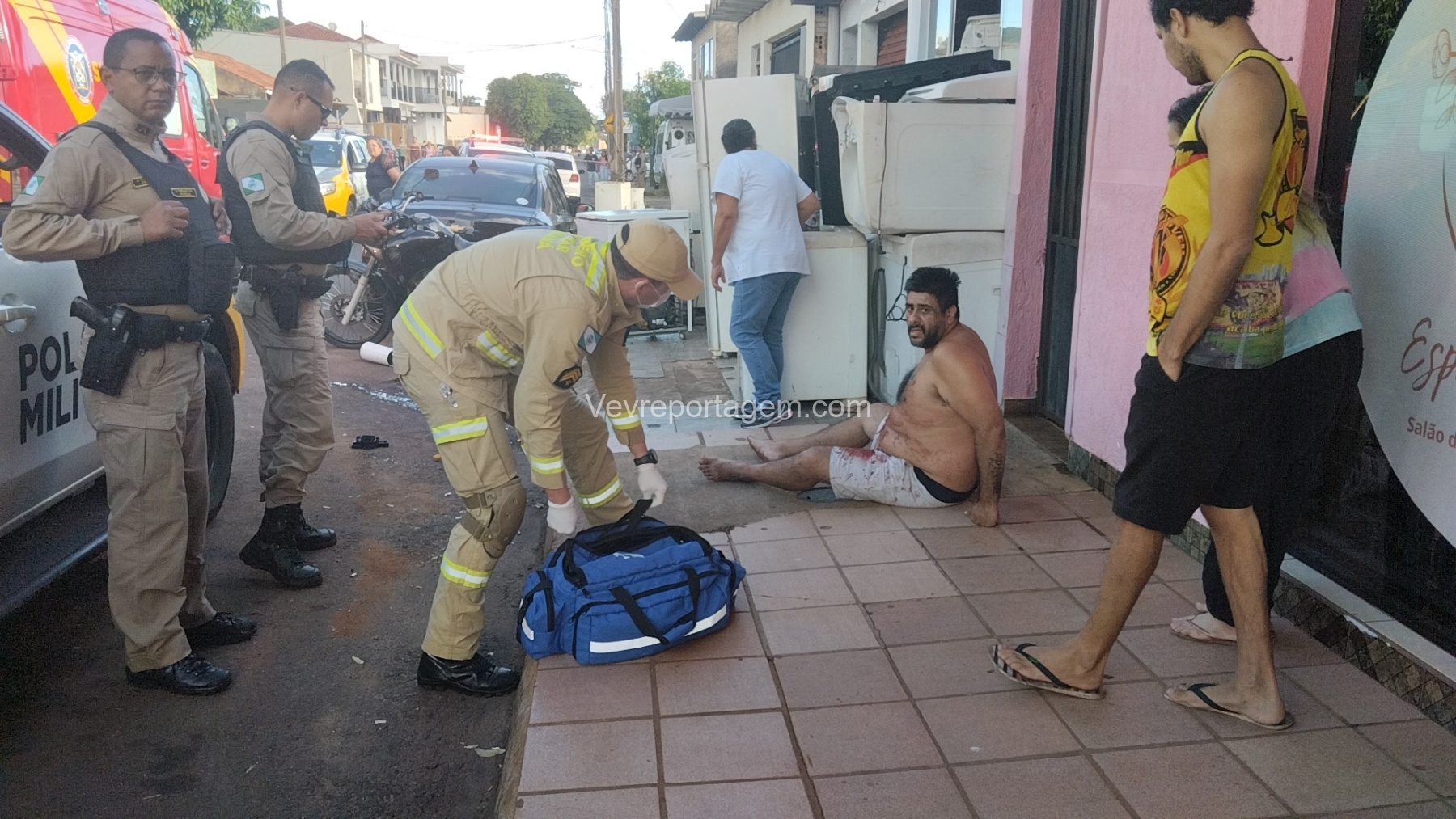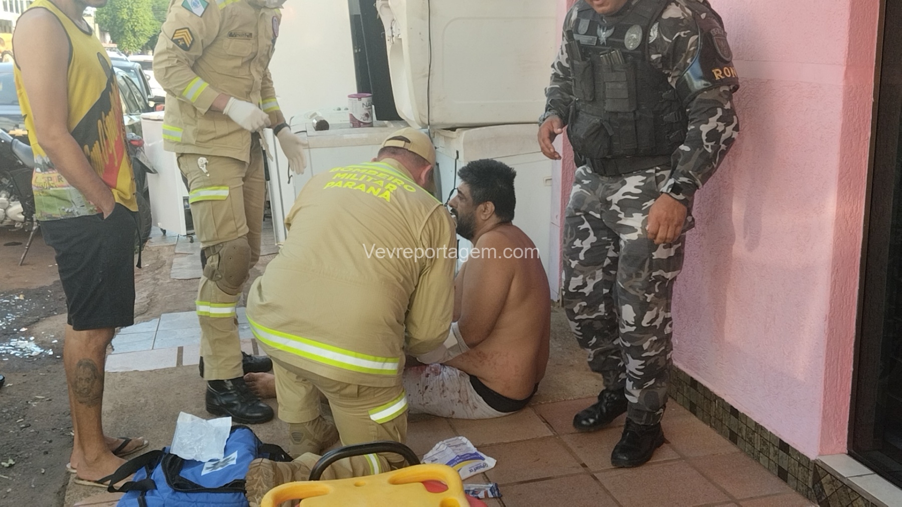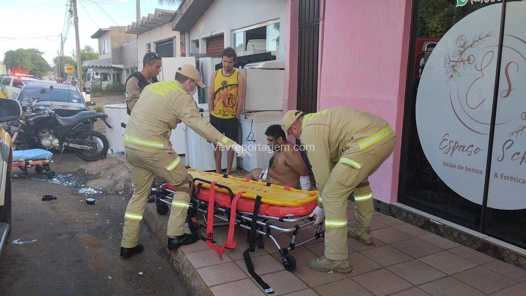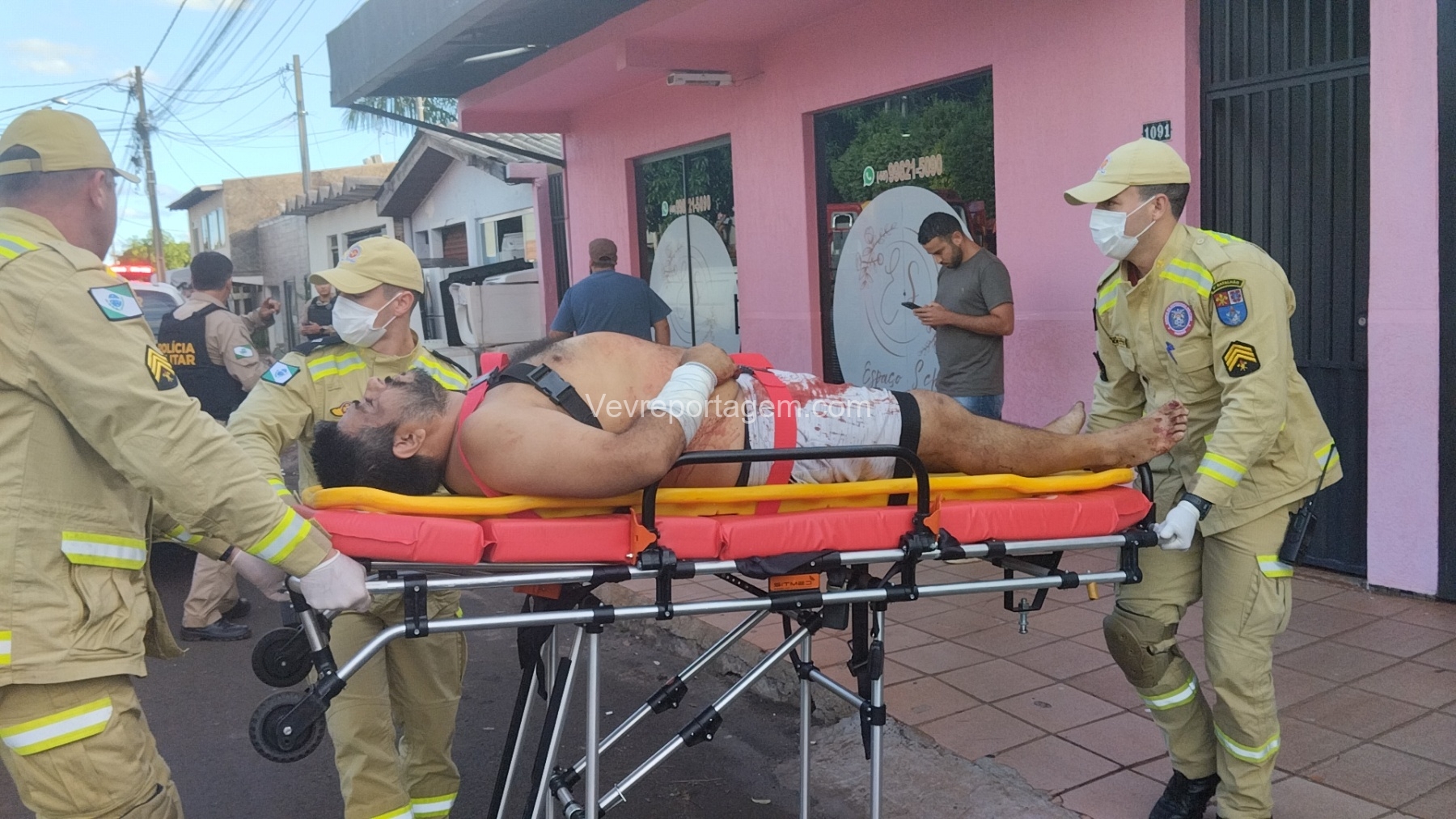As vítimas foram atendidas ainda no local, sendo uma na calçada e a outra no interior do estabelecimento, antes de serem encaminhadas ao Hospital Municipal.