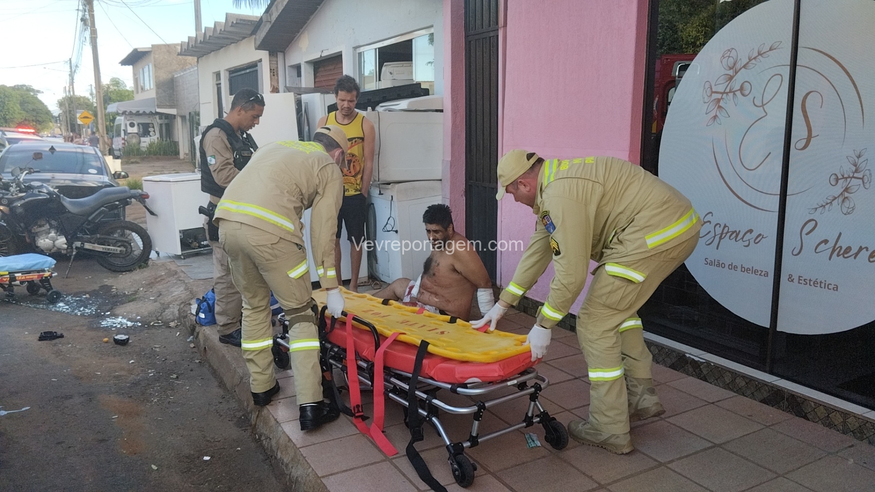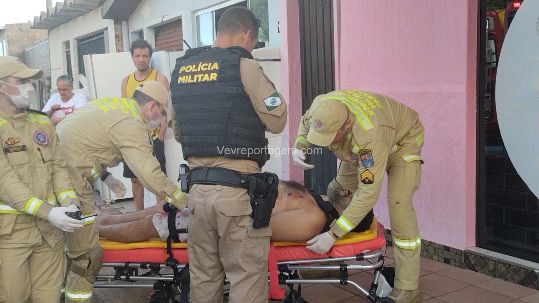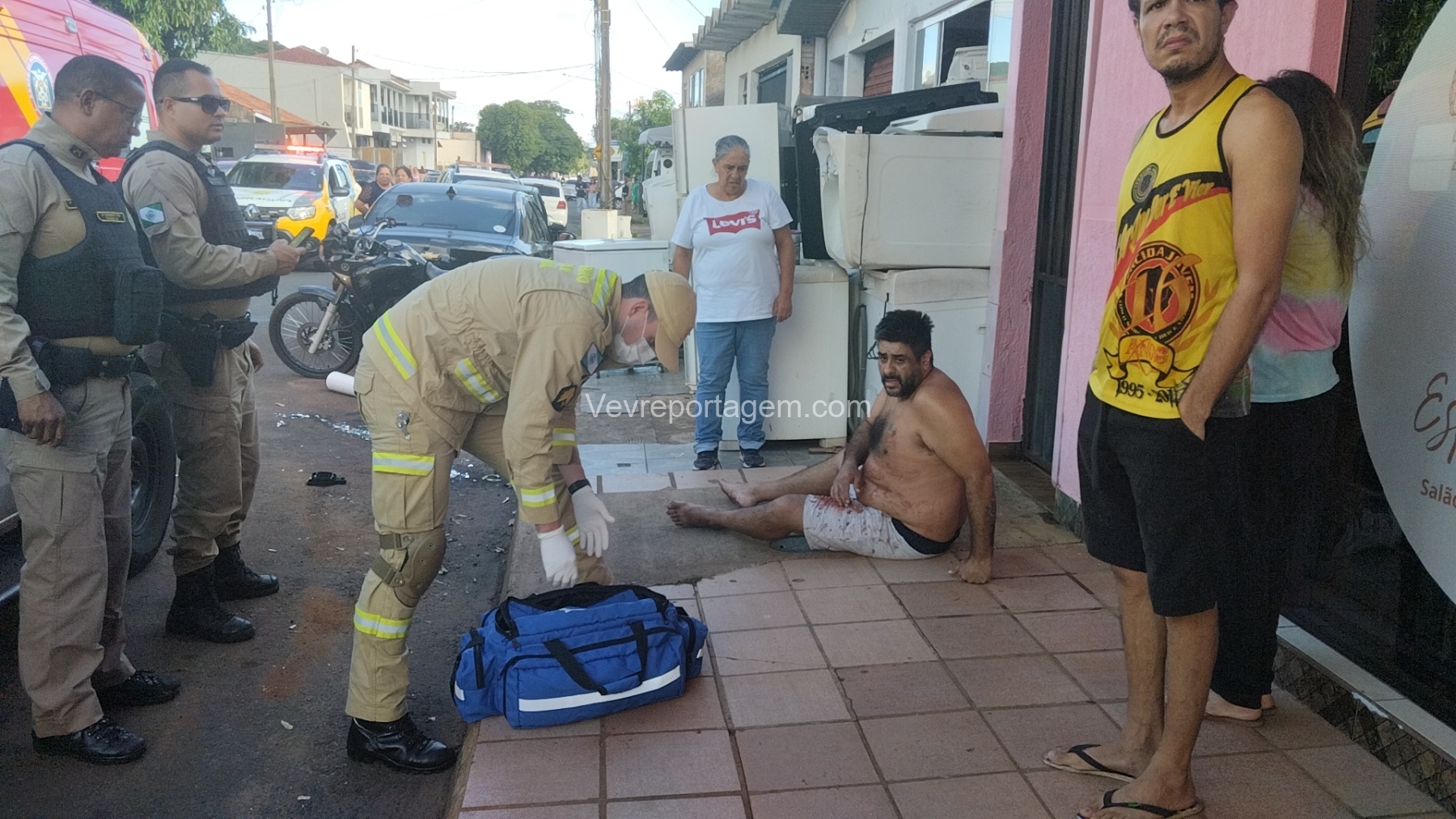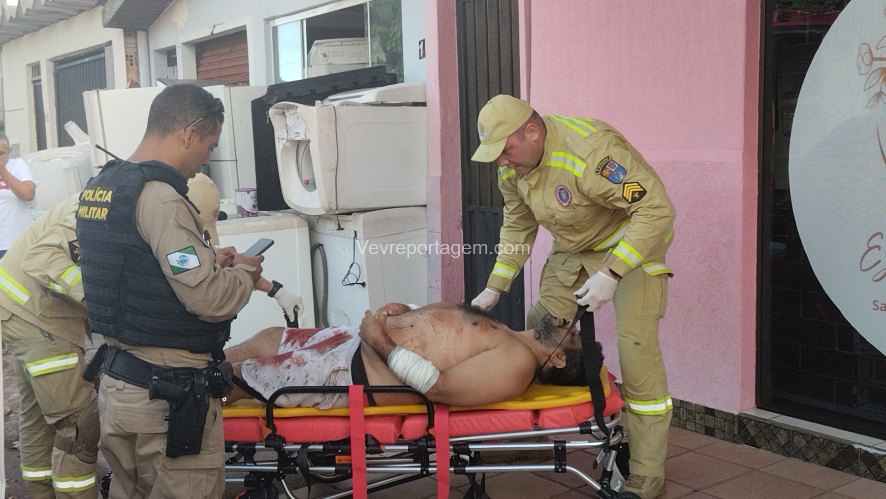 As vítimas foram atendidas ainda no local, sendo uma na calçada e a outra no interior do estabelecimento, antes de serem encaminhadas ao Hospital Municipal.