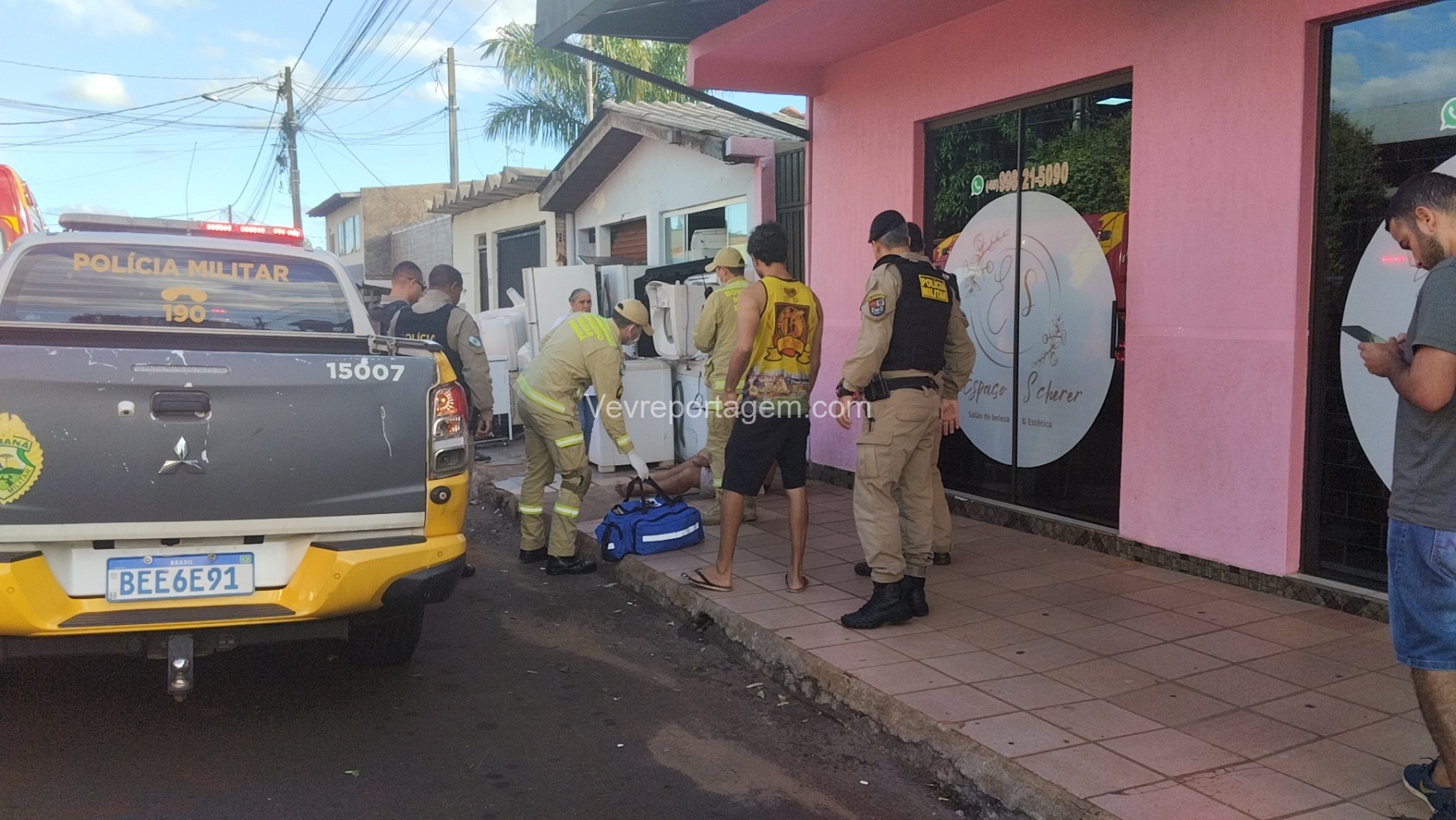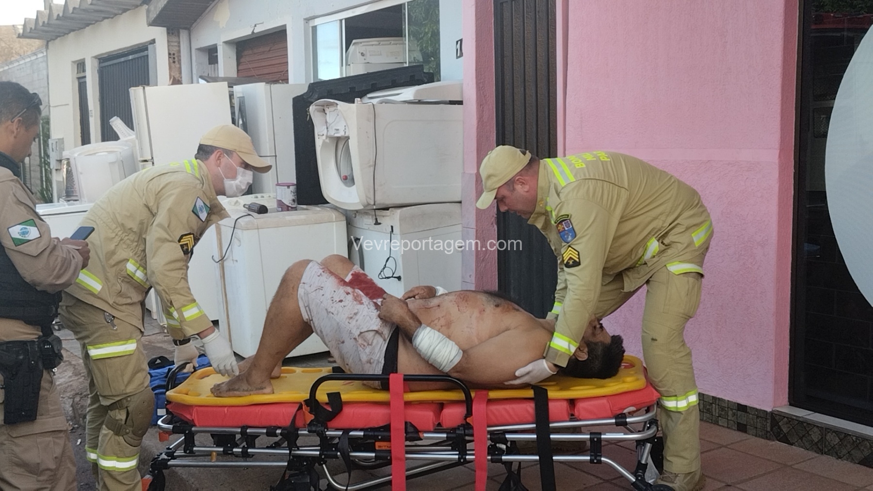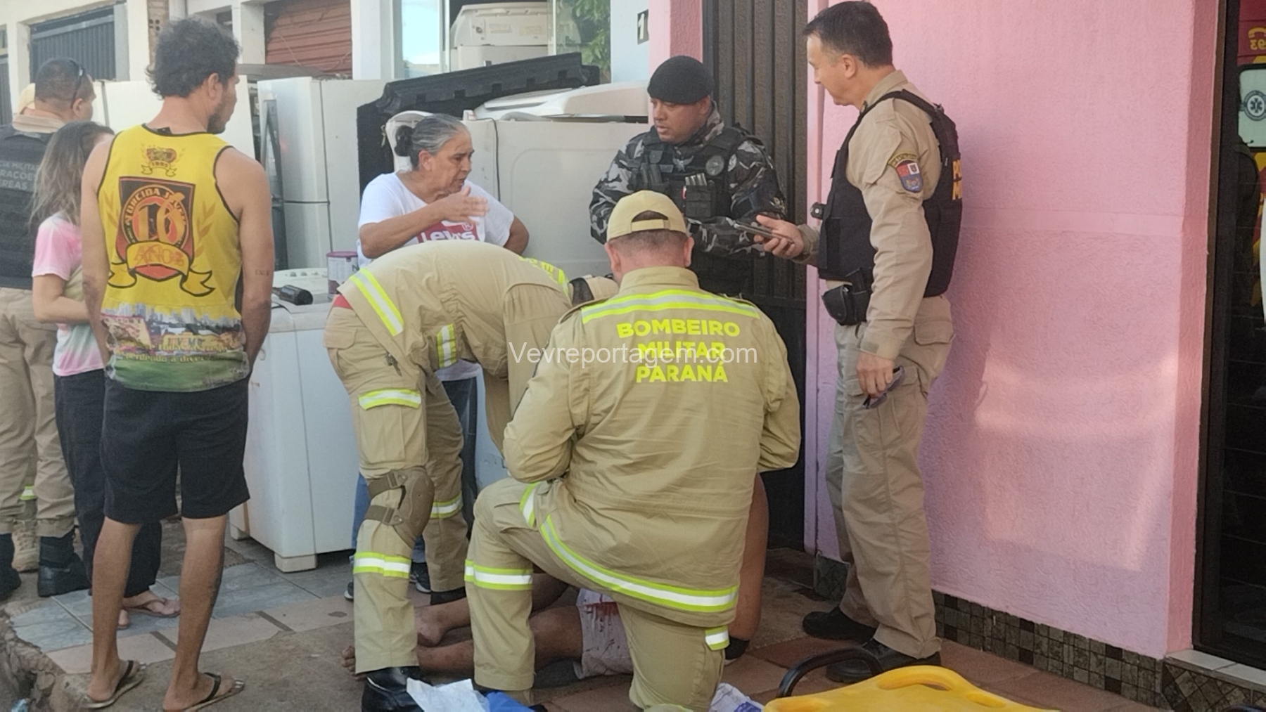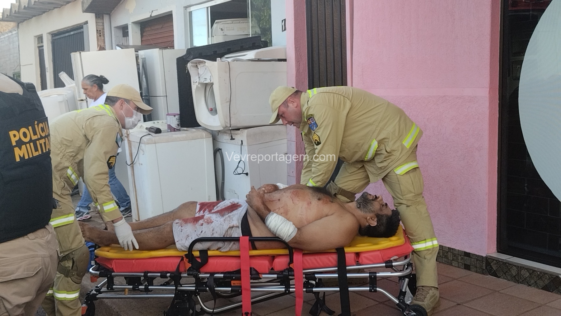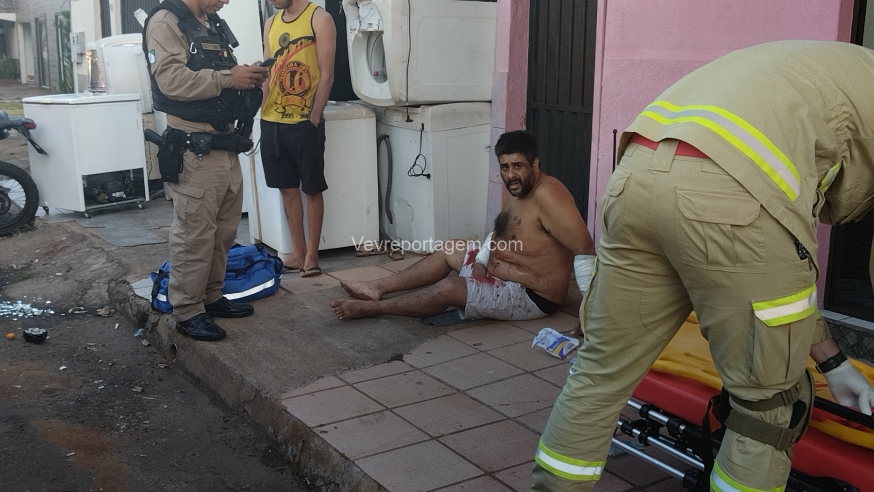 As vítimas foram atendidas ainda no local, sendo uma na calçada e a outra no interior do estabelecimento, antes de serem encaminhadas ao Hospital Municipal.