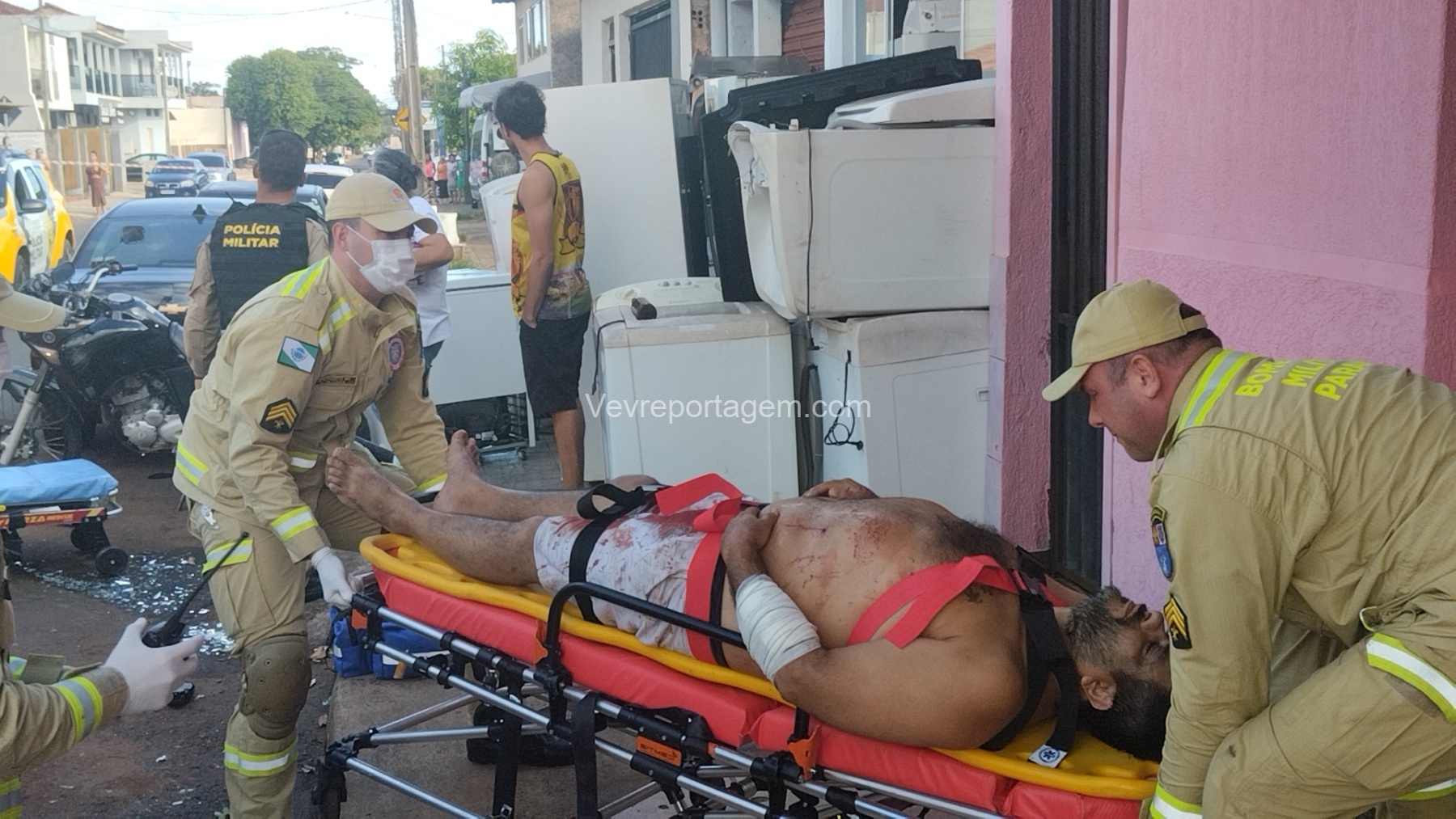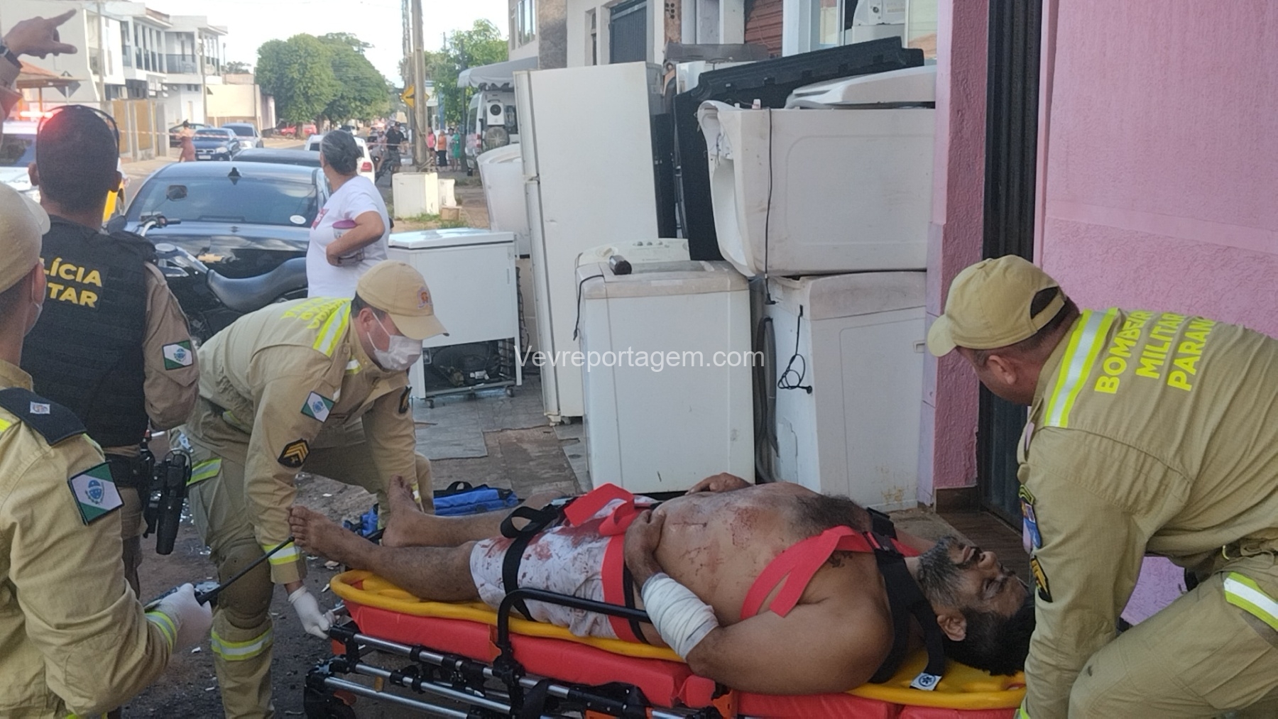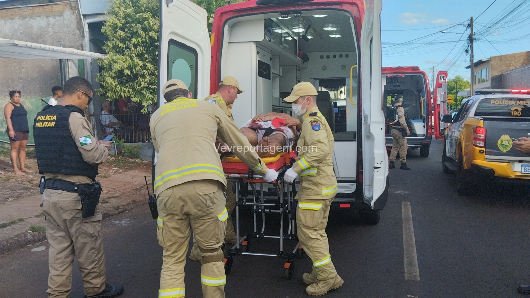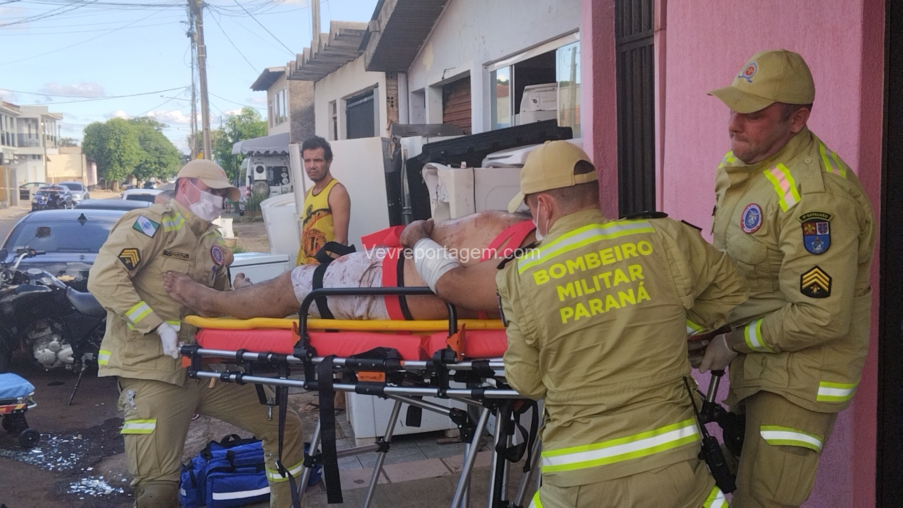 As vítimas foram atendidas ainda no local, sendo uma na calçada e a outra no interior do estabelecimento, antes de serem encaminhadas ao Hospital Municipal.