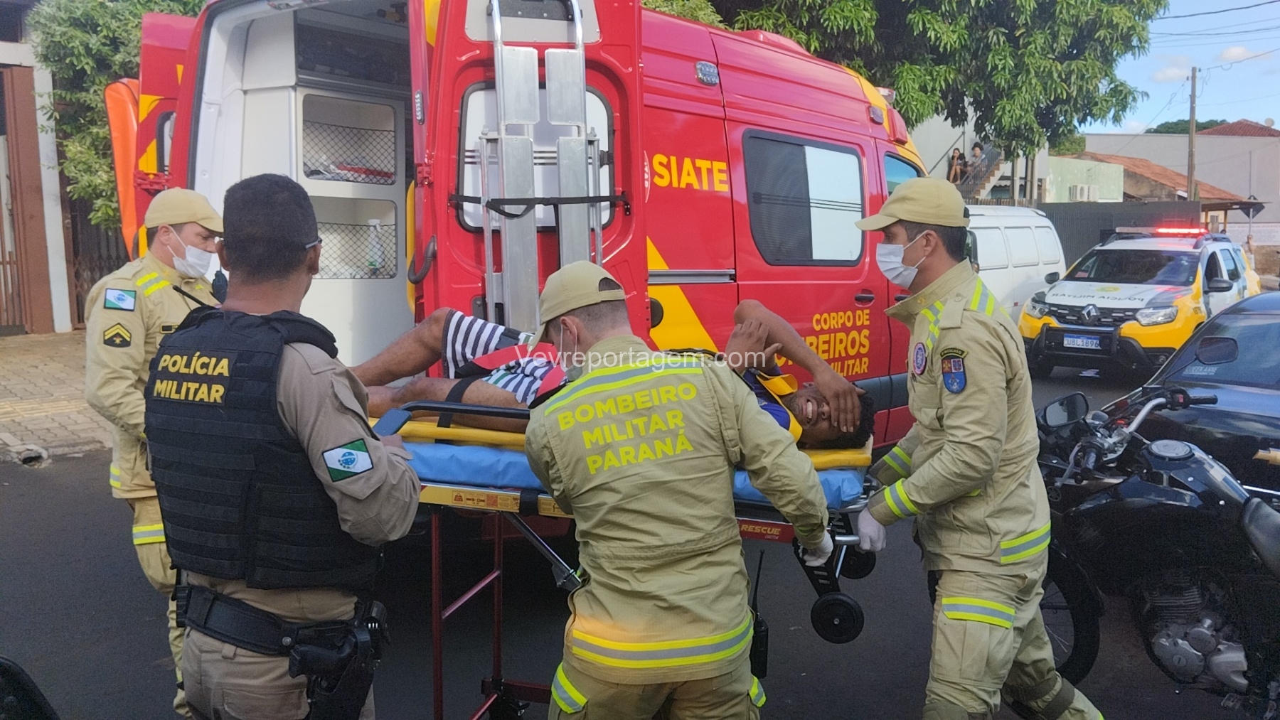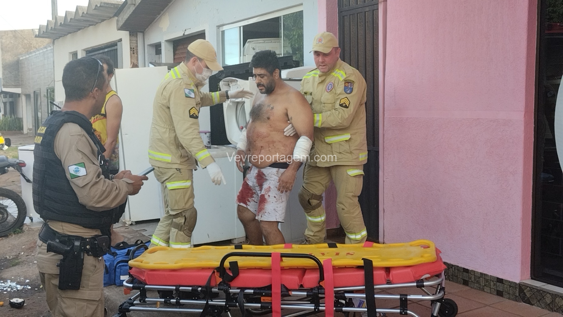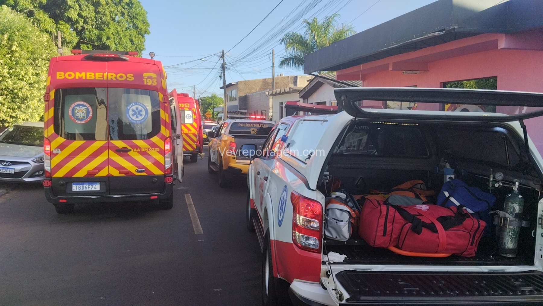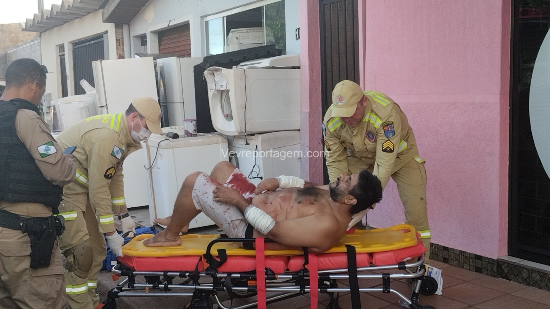 As vítimas foram atendidas ainda no local, sendo uma na calçada e a outra no interior do estabelecimento, antes de serem encaminhadas ao Hospital Municipal.