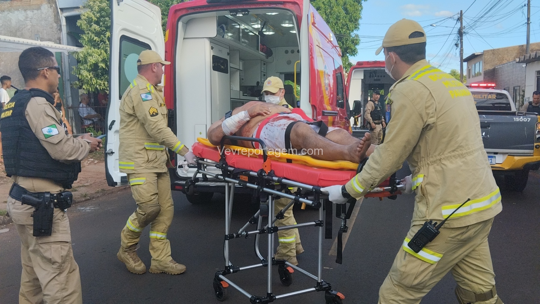 Ao chegarem no endereço, os policiais constataram dois homens baleados, identificados como Waldinei Santos de Oliveira, 27 anos e Gilmar Henrique de Matos Junior, 39 anos.