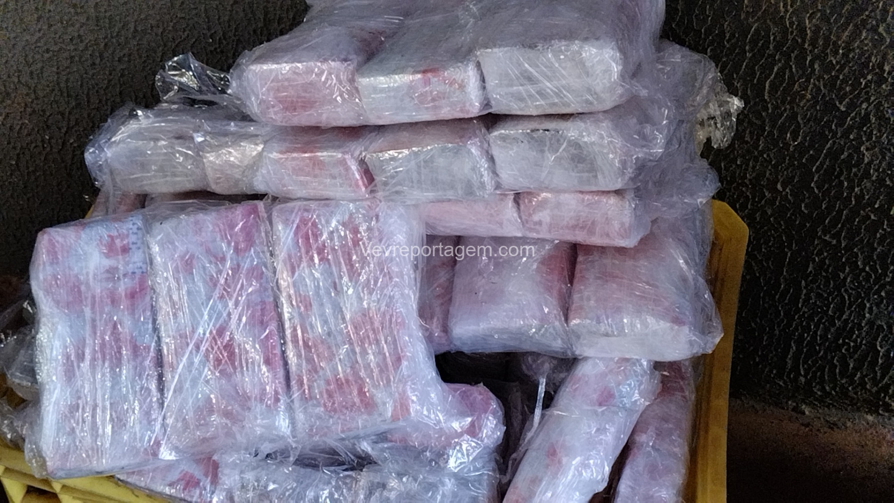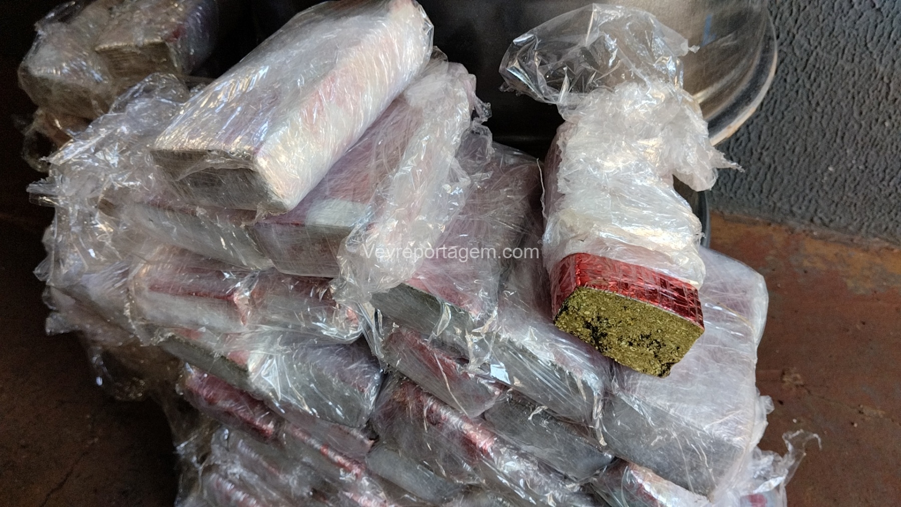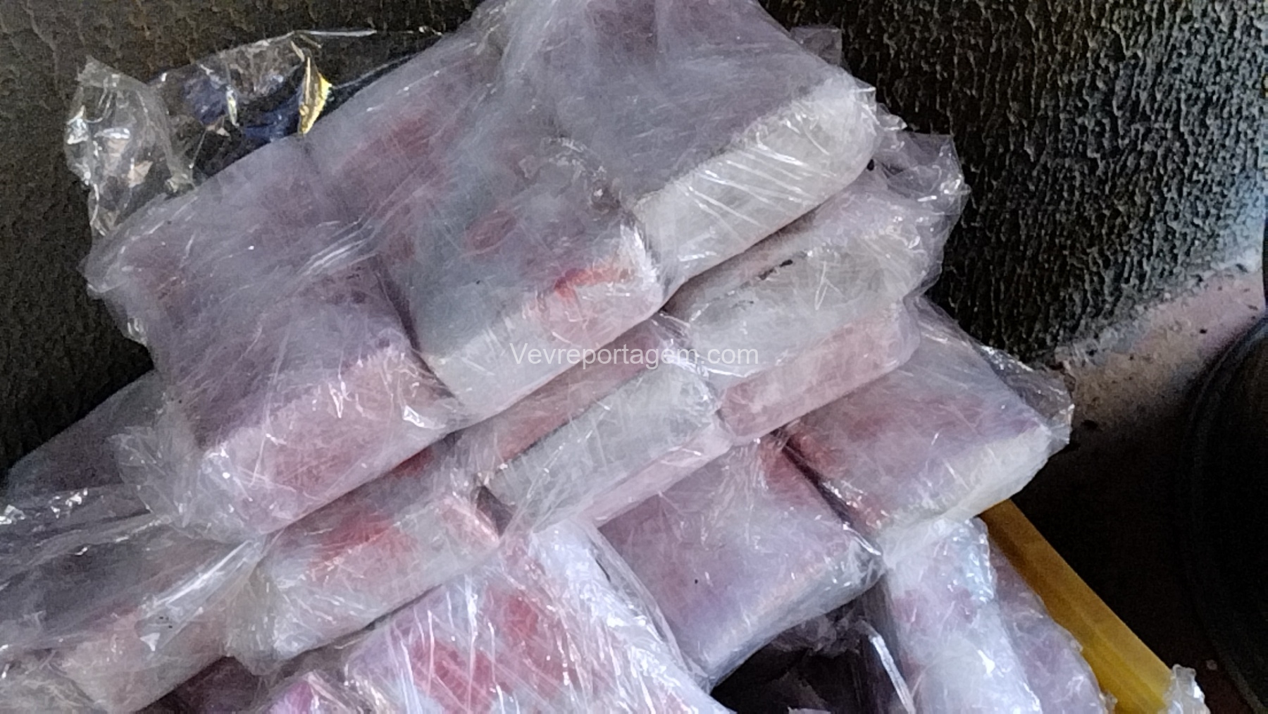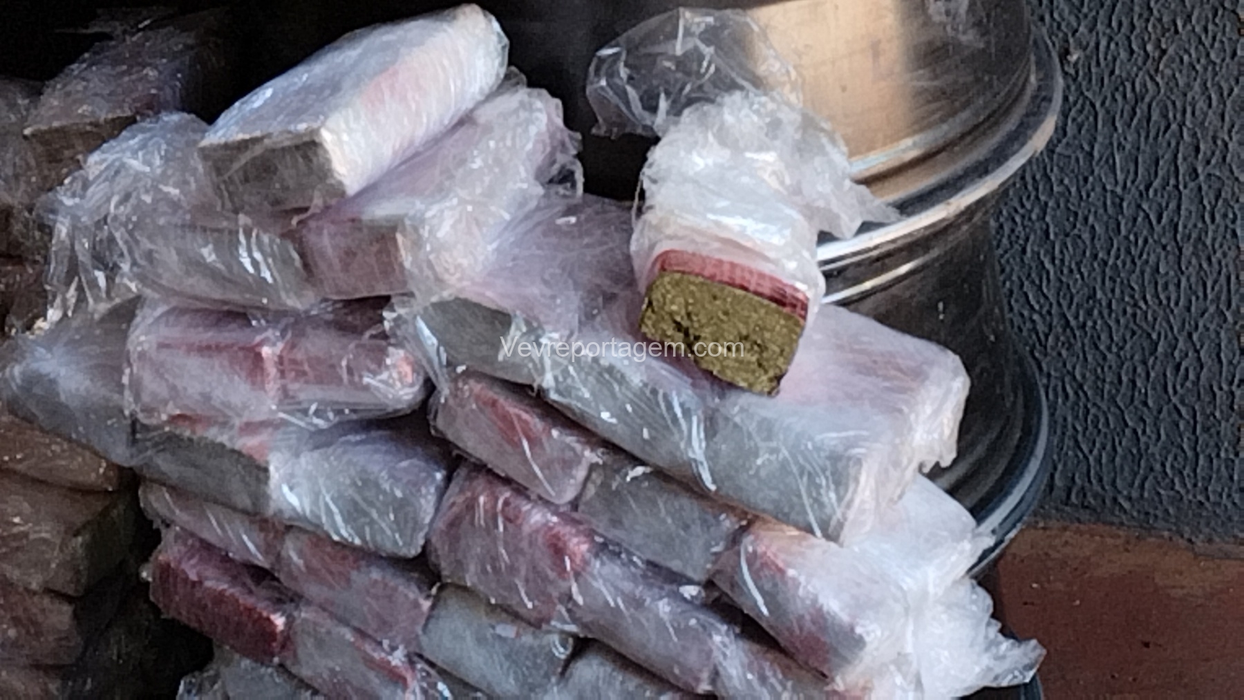 As rodas estavam envoltas em papel filme, o que levantou suspeita. Durante a abordagem e verificação, os policiais constataram que entorpecentes estavam escondidos no interior dos pneus.