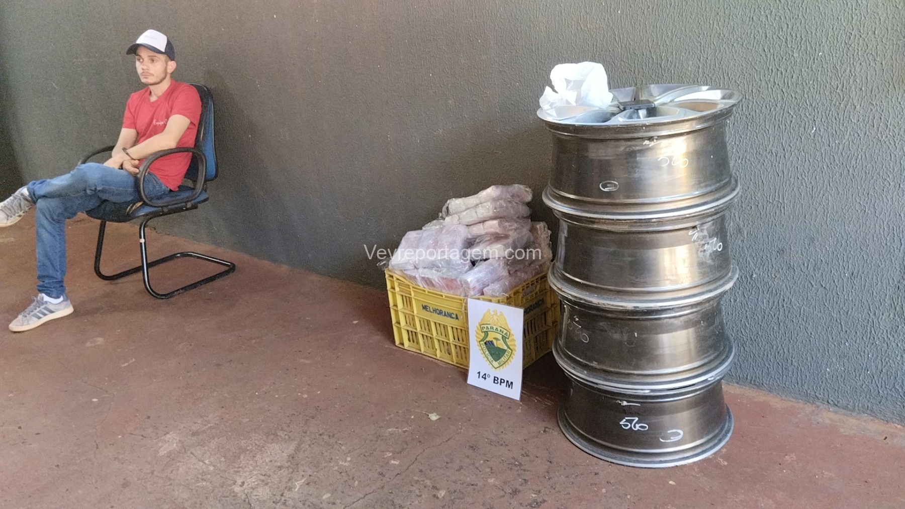 Após a abordagem, os policiais foram até uma residência, onde, conforme apurado, o rapaz deveria ter deixado as rodas já embaladas e posteriormente acionado o guincho para realizar o transporte. No local, estava uma mulher, que foi encaminhada juntamente com o suspeito à delegacia.
