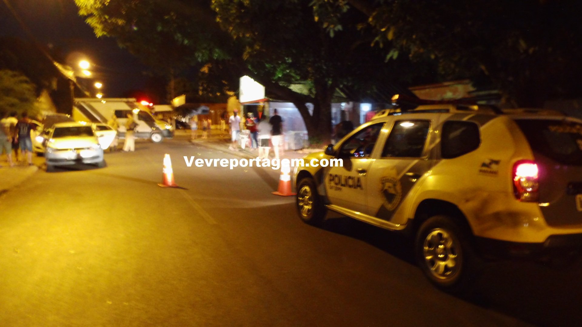 Foi quando perderam o controle do automóvel e colidiu em um outro automóvel estacionado na via, os dois homens desceram efetuado disparos de arma de fogo, onde um dos individuo que estava em posse da arma de fogo conseguiu fugir pulando os muros das residencias e o outro foi alvejado na perna direita.