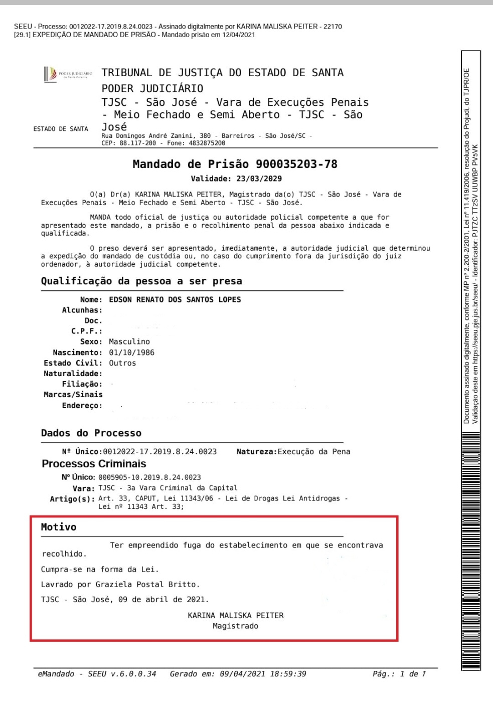 O homem identificado sendo, Edson Renato dos Santos Lopes, 35 anos de idade, tinha fugido de Santa Catarina achando que poderia se esconder em Foz do Iguaçu, mas deu Homem do Chapéu e sua equipe na vida dele.