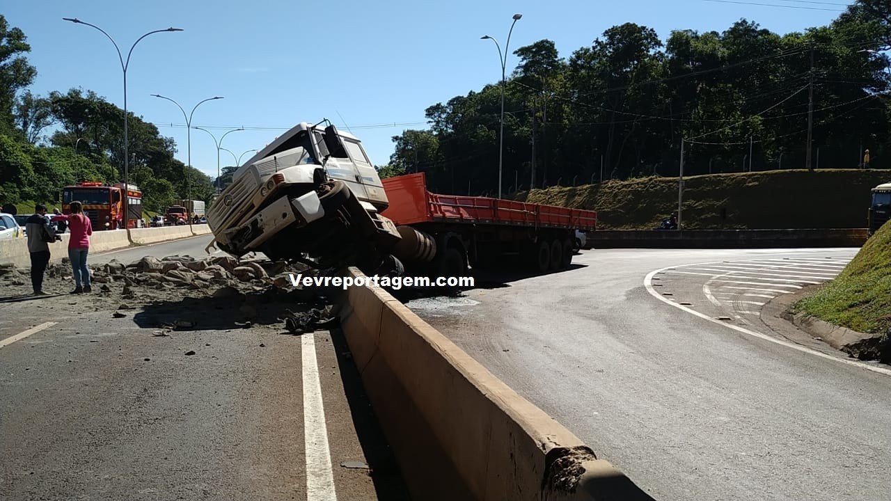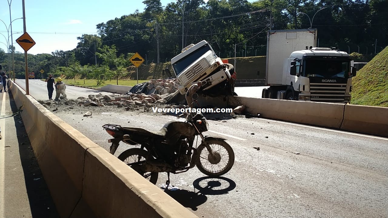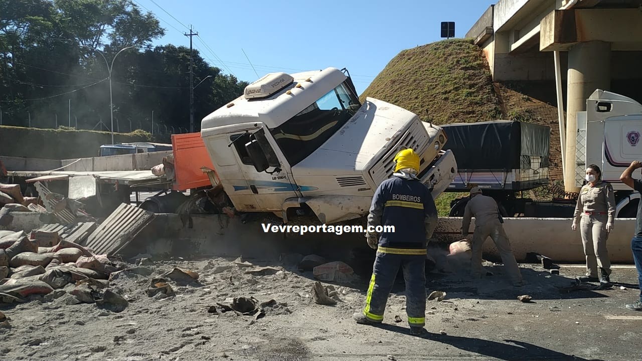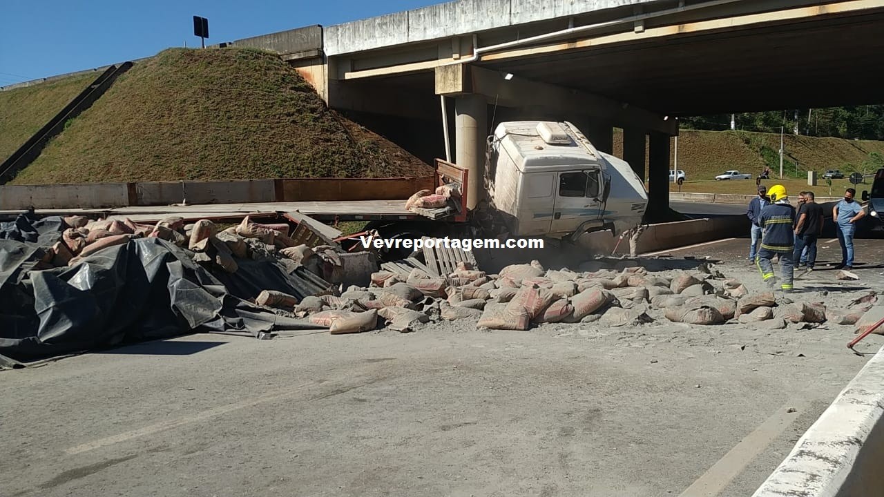 Na manhã desta quarta-feira, 28 de abril de 2021, por volta das 09h40 minutos, os socorristas do Siate, foram acionados para deslocarem até a Avenida Paraná, no viaduto, pois segundo as informações repassadas que uma carreta teria tombado e a carga de cimento teria caído em cima de um motociclista que passava na via.