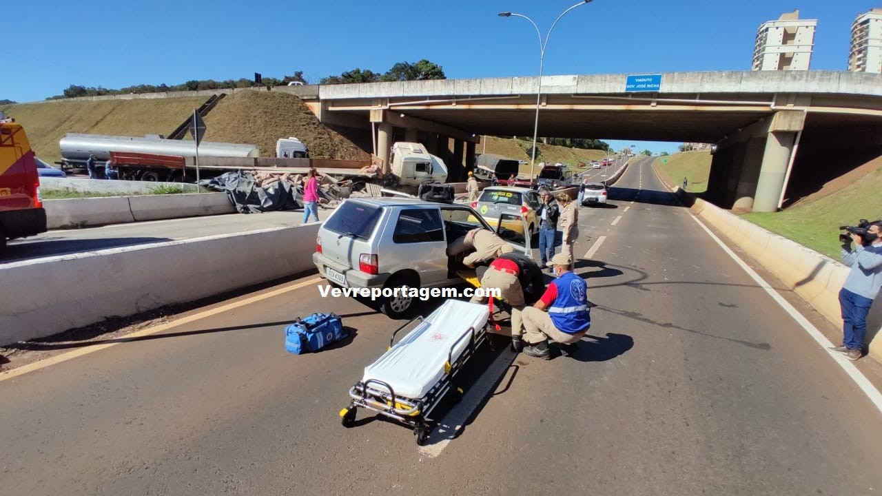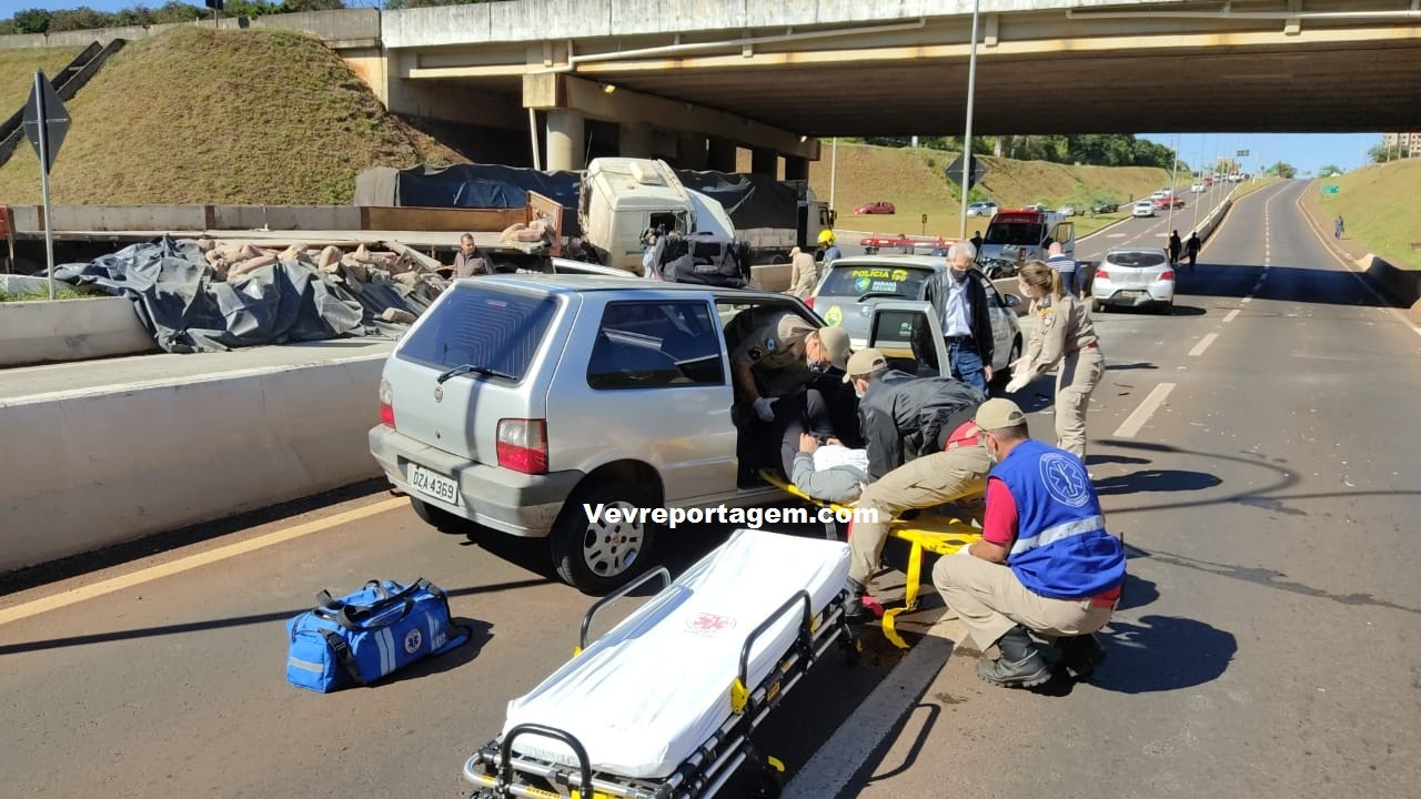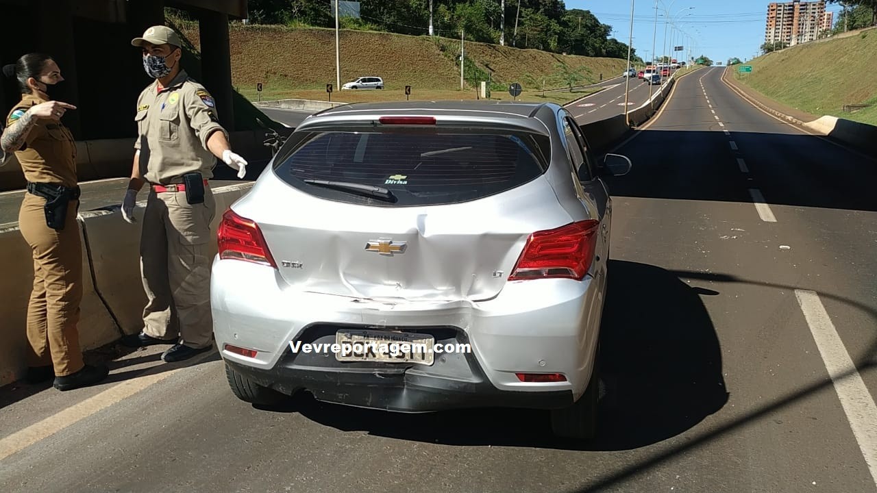 Enquanto os socorristas e os bombeiros atendiam o motociclista do outro lado da Avenida Paraná, um outro acidente aconteceu, onde um veiculo Uno colidiu na traseira do veiculo Ônix, o motorista do Uno ficou com ferimentos leves e foi socorrido pelo socorristas do Siate.
