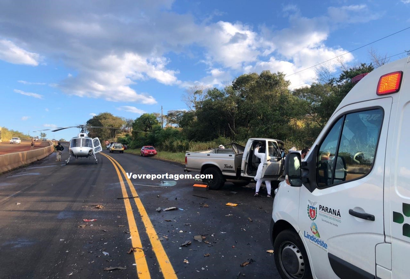 Um grave acidente de trânsito registrado na tarde desta quinta-feira (03), deixou duas pessoas feridas na BR-163 entre Lindoeste e Santa Lucia.