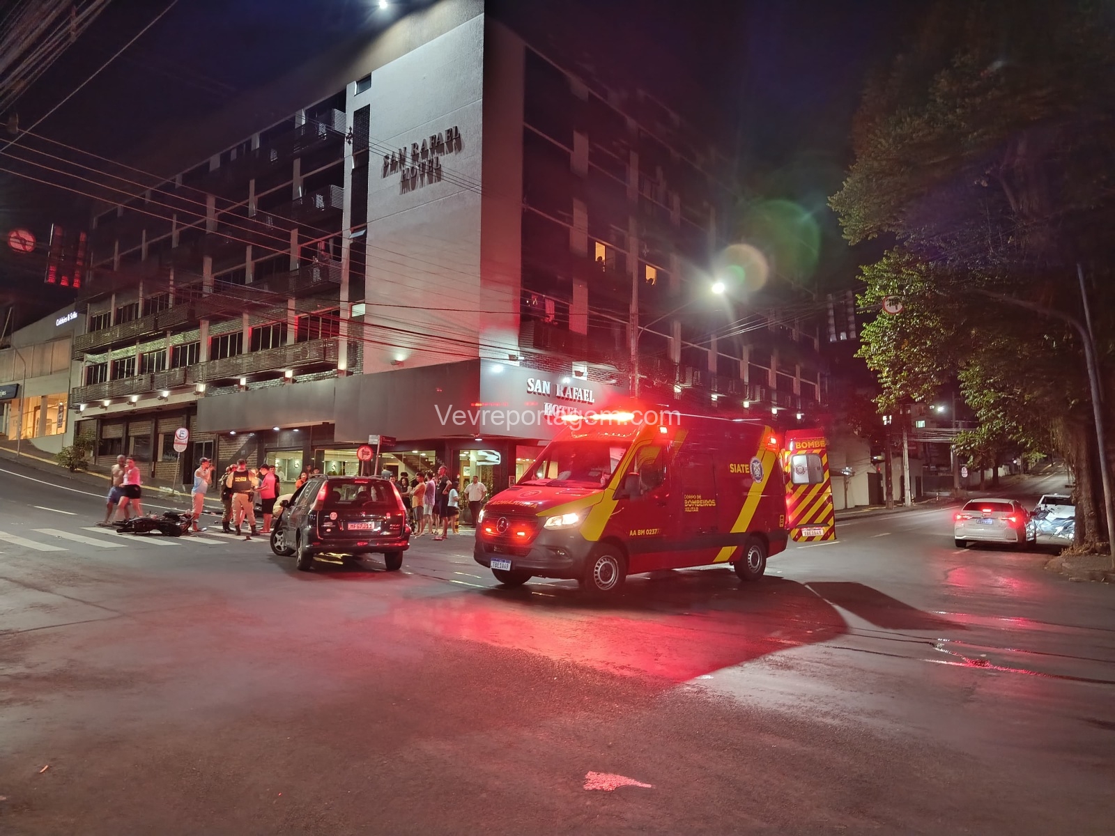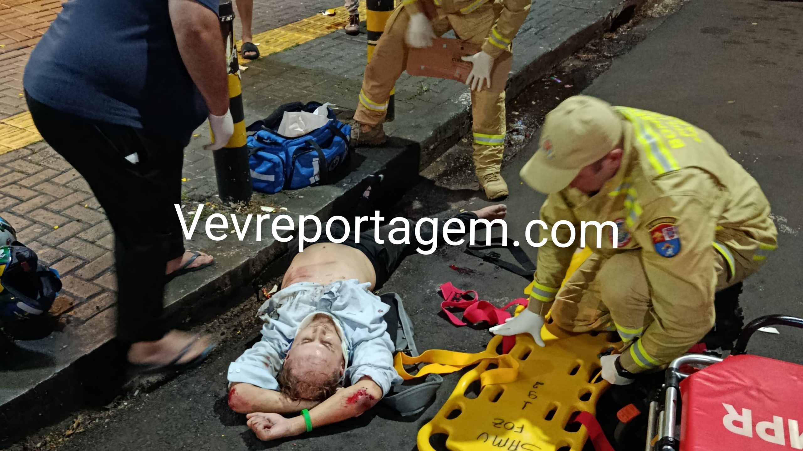 Ao chegarem ao local, as equipes constataram que se tratava de uma colisão envolvendo uma motocicleta e um automóvel. Uma das vítimas apresentava fratura exposta na perna direita e estava em estado considerado gravíssimo. Ela foi rapidamente imobilizada, colocada na maca e encaminhada no interior da ambulância ao Hospital Municipal Padre Germano Lauck.