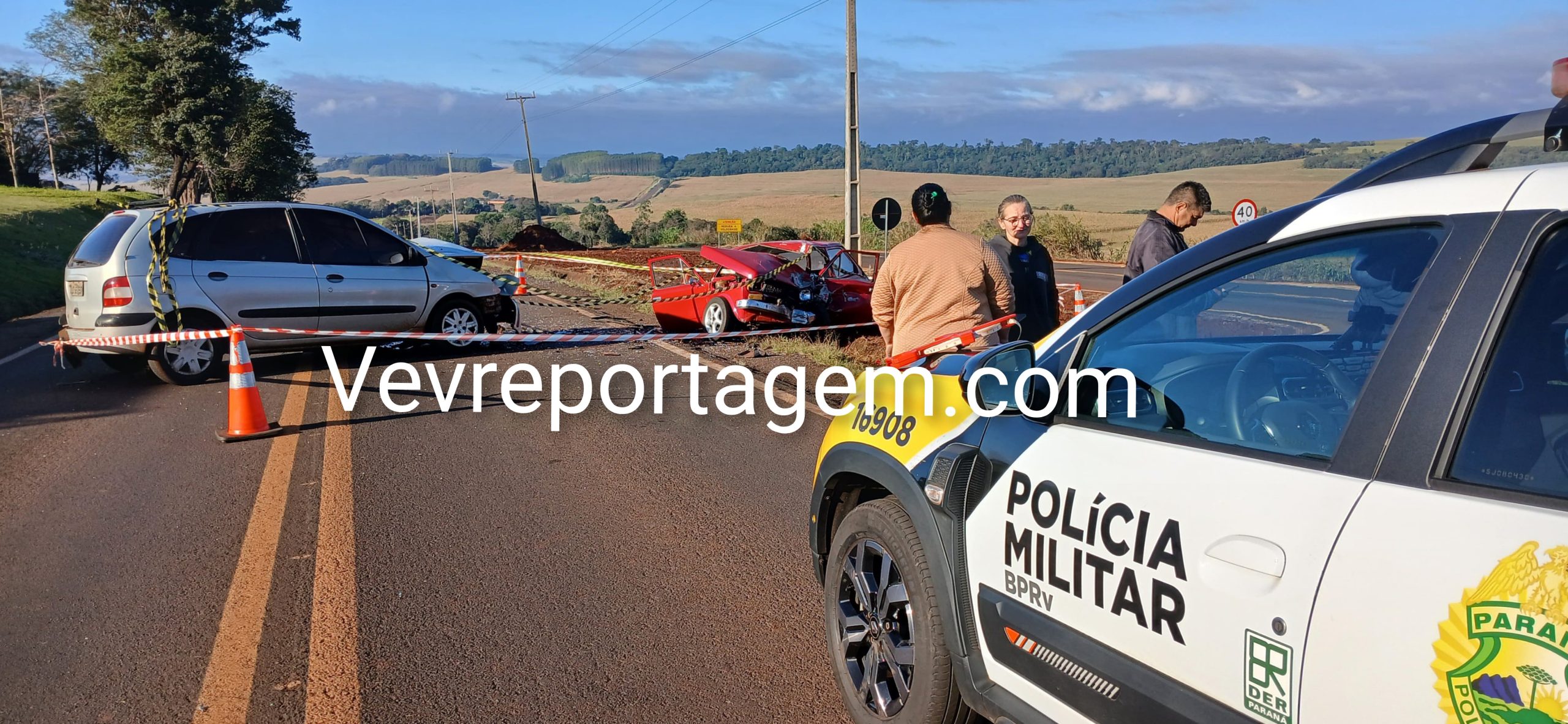 Um grave acidente foi registrado nas primeiras horas da manhã desta quinta-feira (30) na PR-497, nas proximidades da empresa Frivatti, em Itaipulândia. A colisão frontal envolveu um Fiat 147 e um Renault Scénic.