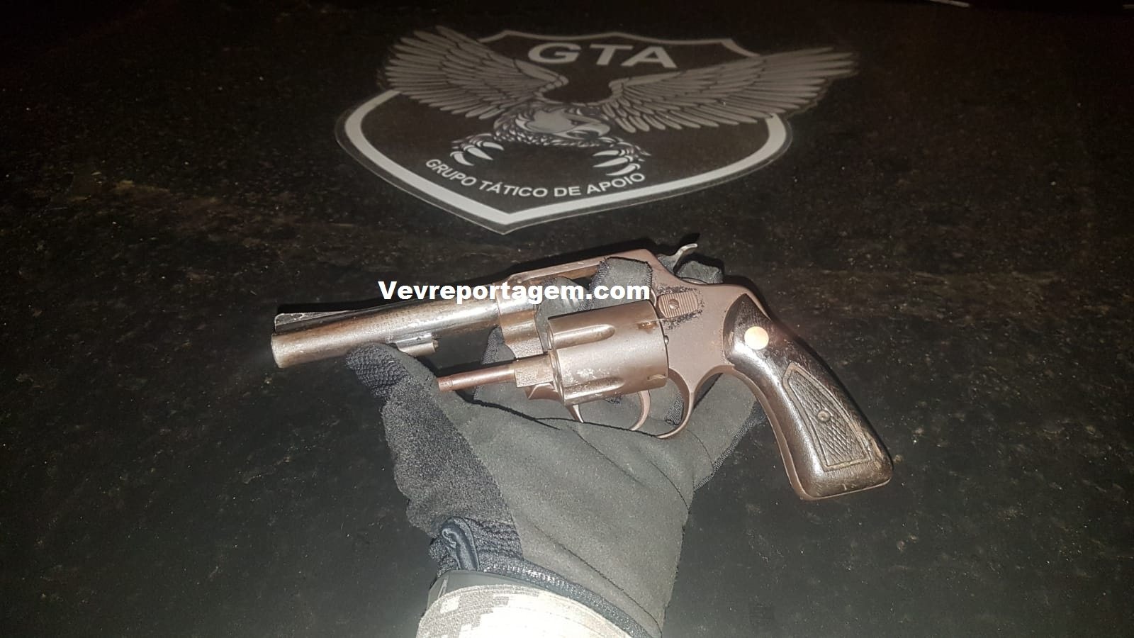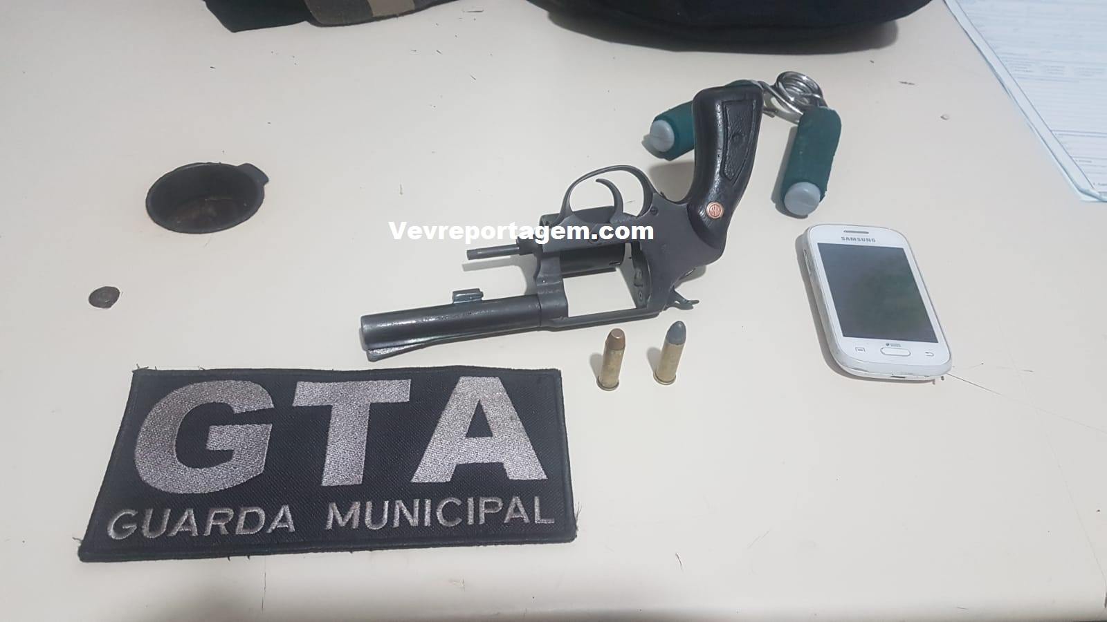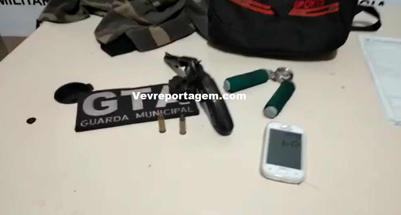 Os guardas resolveram realizarem a abordagem, em revista pessoal nada foi encontrado, os guardas pediram para eles irem até o local onde foi visto um deles largando um objeto, e lá foi encontrado um revólver da marca Rossi, calibre 38, com 02 munições intactas.