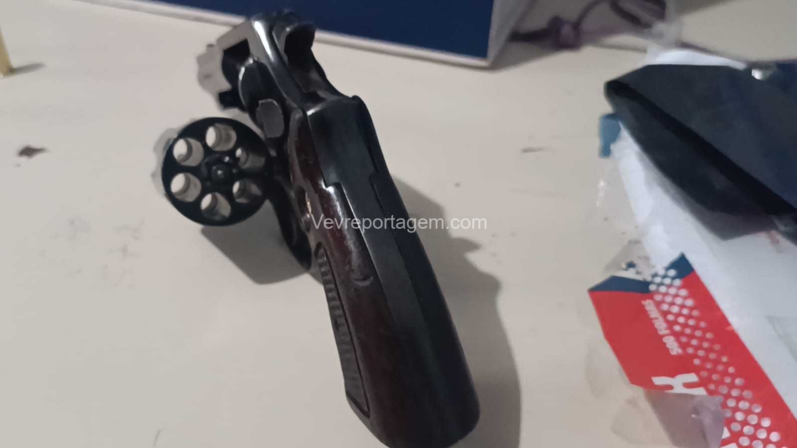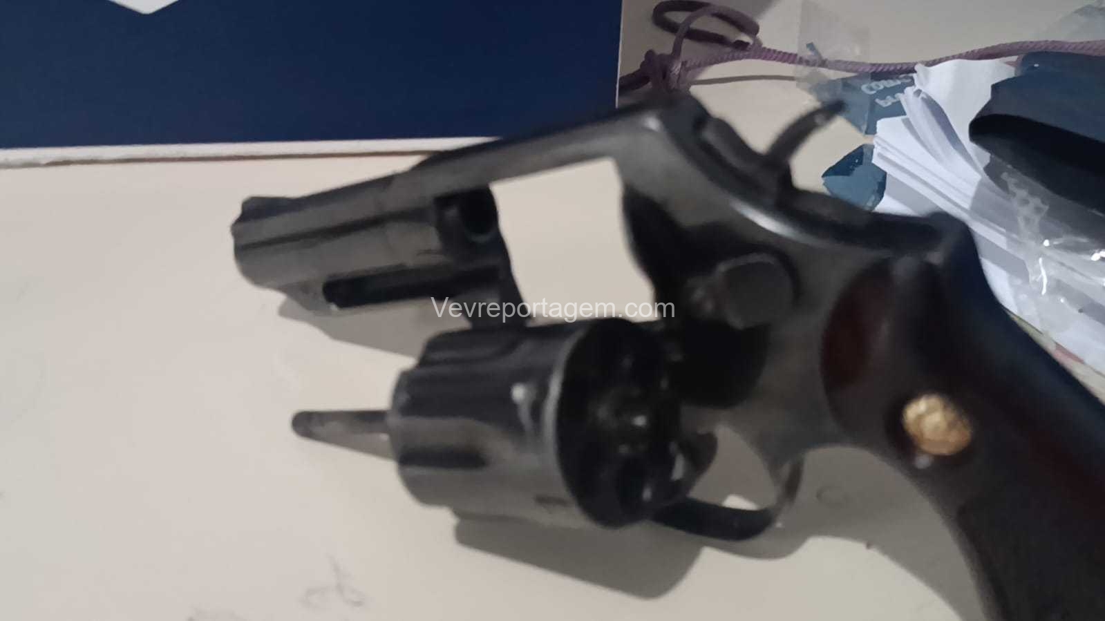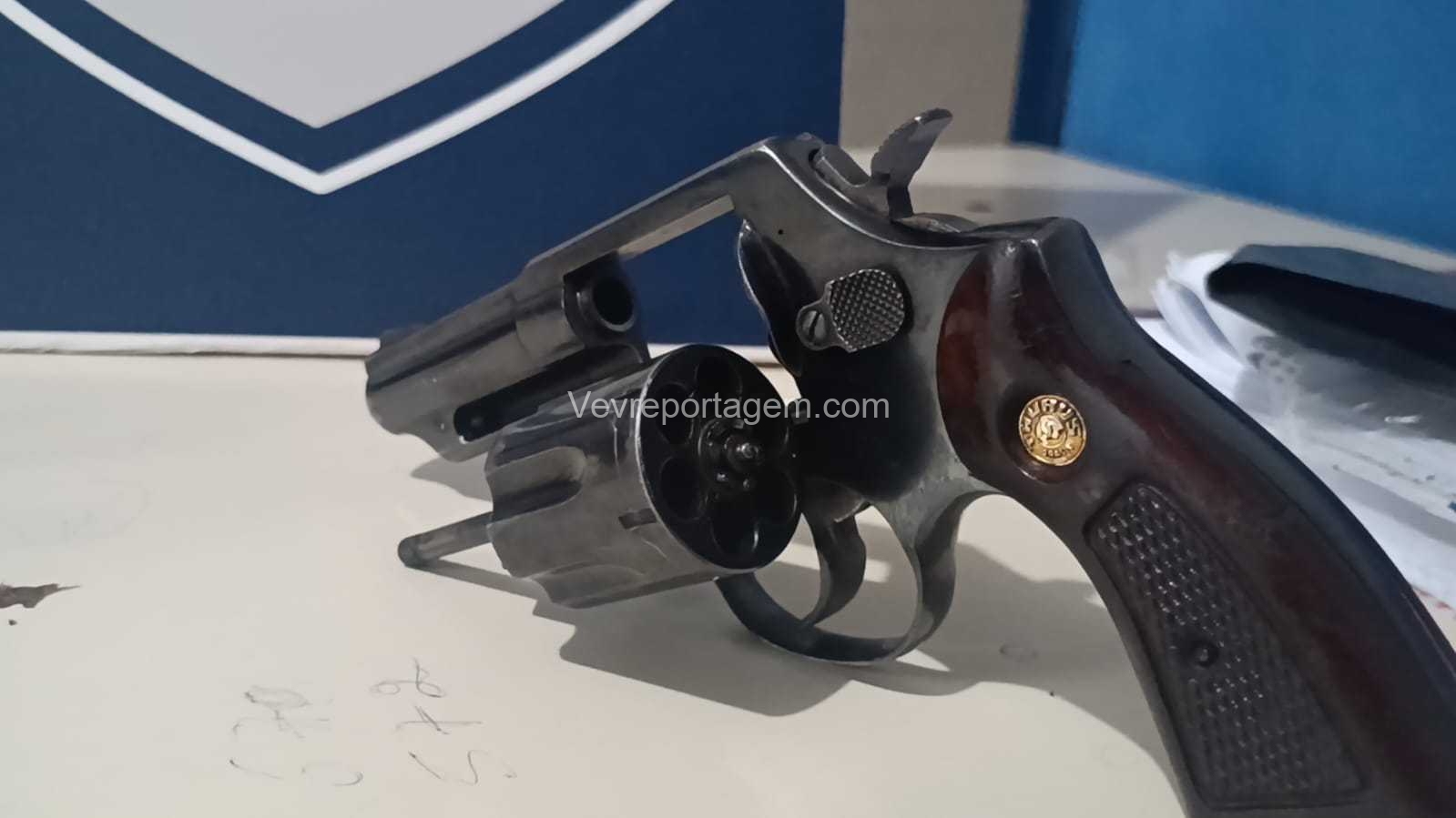 Ao chegarem, os guardas se depararam com veículos deixando a região e realizaram a abordagem de um automóvel onde estavam dois homens e uma mulher. Durante a revista pessoal, nada foi encontrado com os ocupantes. Porém, na vistoria do veículo, foi localizada uma arma de fogo calibre .38.