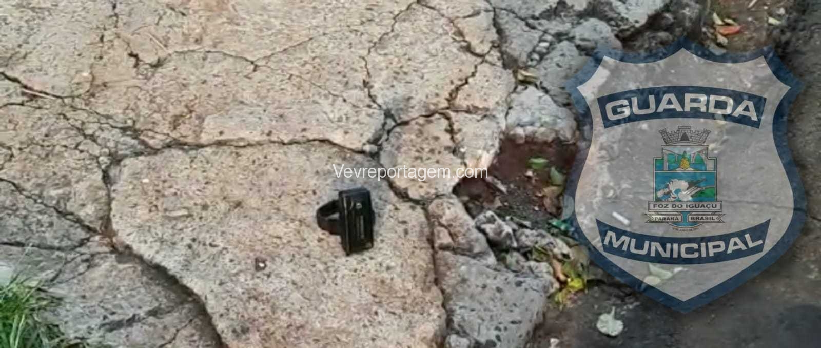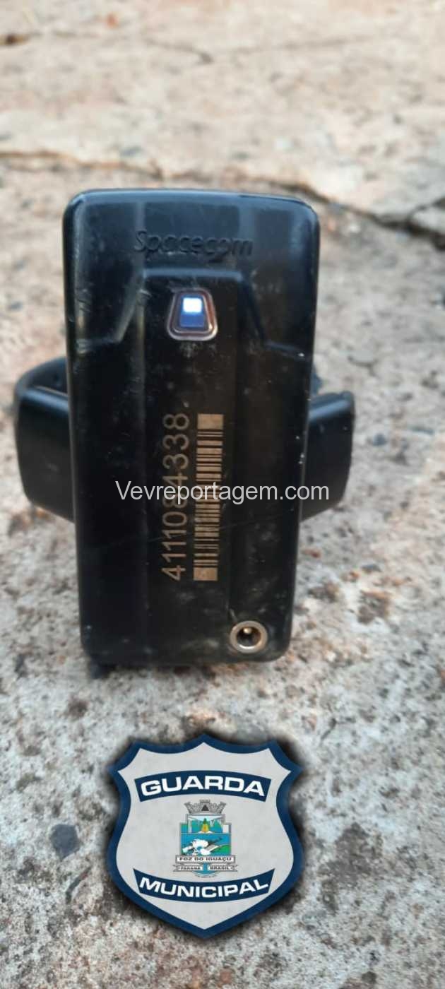 Equipe do Grupamento Operacional de Trânsito (GOT) quando em patrulhamento observou jogado na calçada um objeto que aparentava ser uma tornozeleira eletrônica.