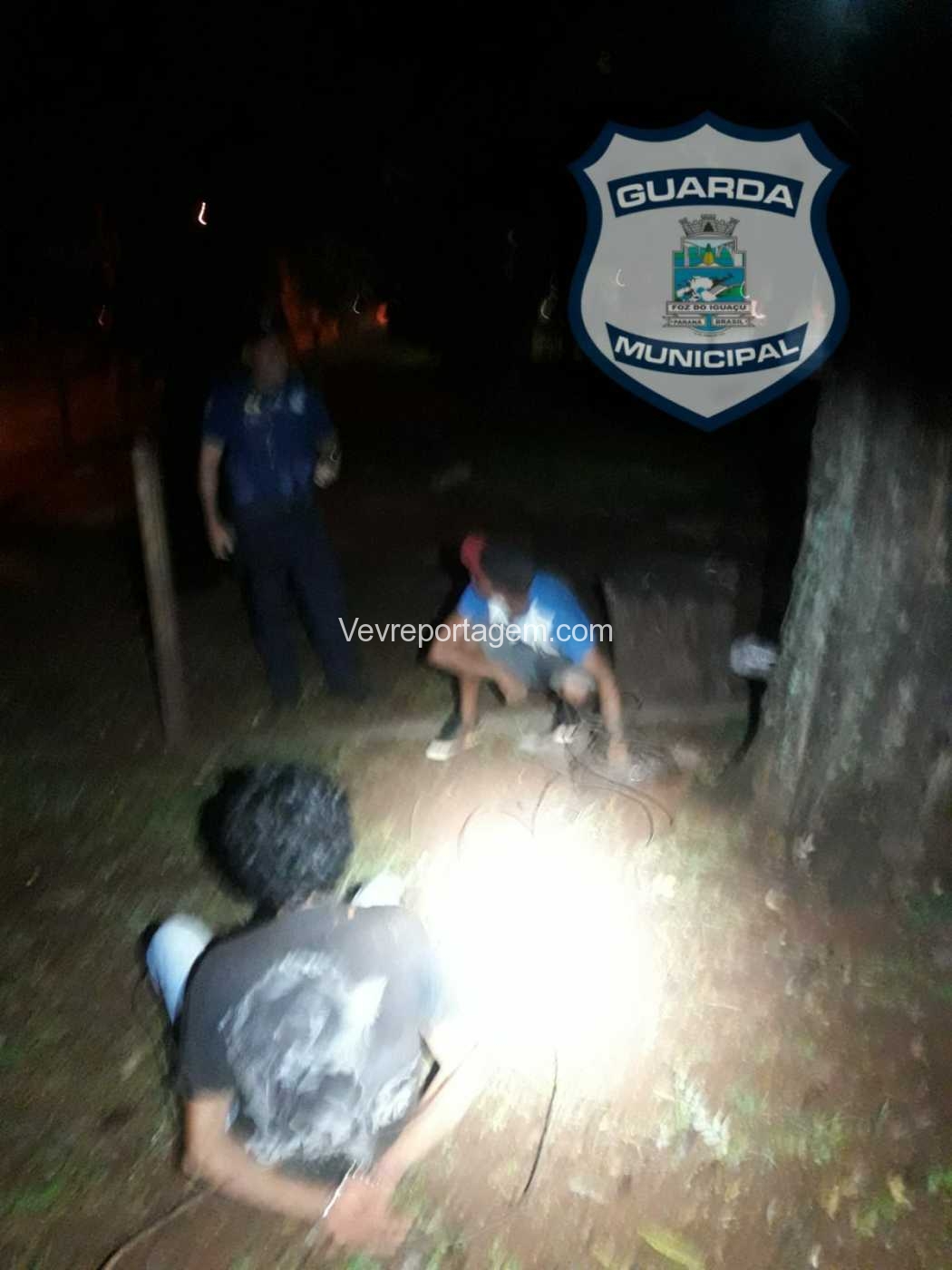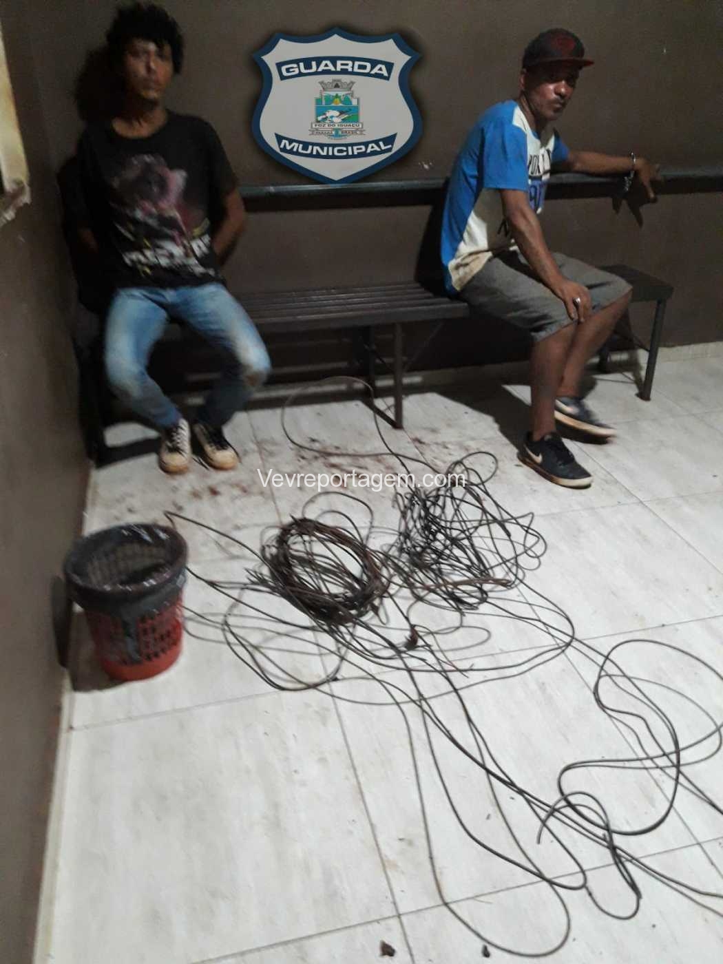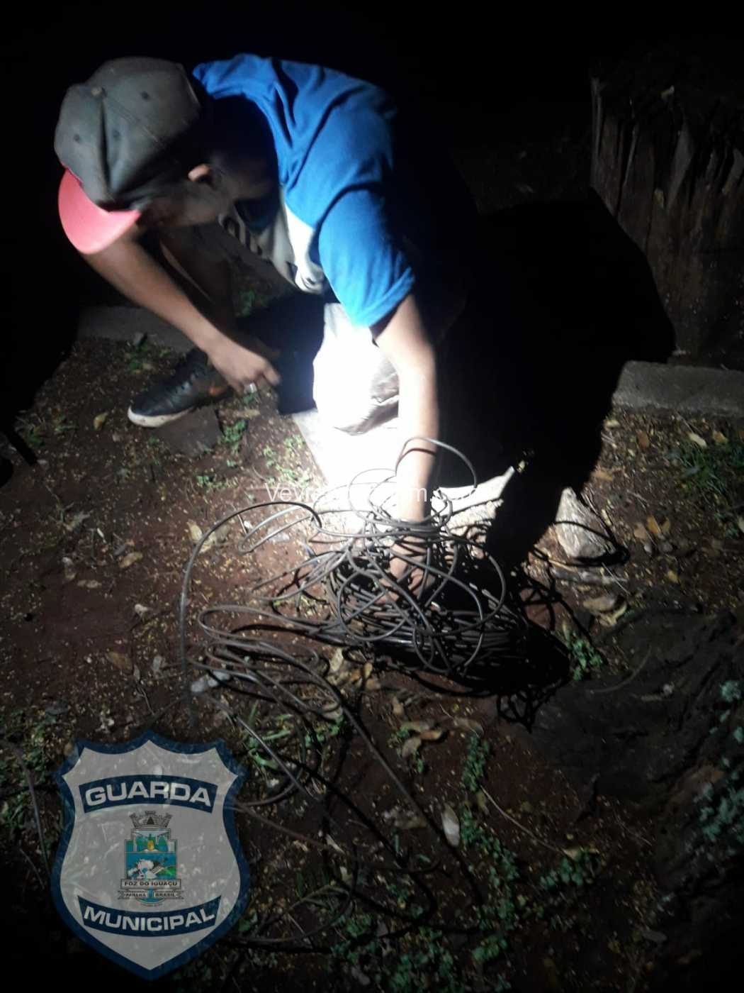 Equipe da Central de Vídeo monitoramento da Guarda Municipal flagrou duas pessoas do sexo masculino que estavam retirando cabos da rede de iluminação pública.
