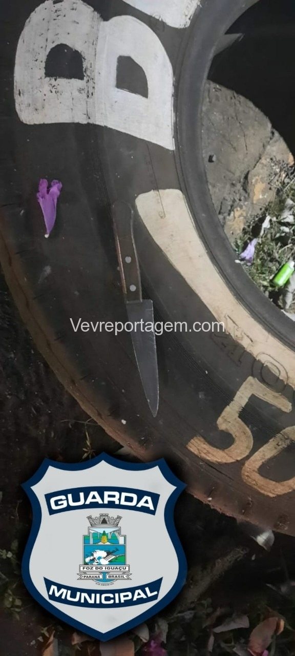 Diante da situação a equipe imediatamente foi ao local e ao chegar foi informada via central que o veículo havia sido roubado em frente a praça da bíblia. Os guardas abordaram o homem sendo confirmado não havia ter sofrido lesões devido ter colidido o veículo contra a árvore, qual foi submetido a busca pessoal e nada de ilícito localizado em vistoria ao interior do veículo foi localizado uma arma branca (faca) qual posteriormente a vítima relatou ter sido utilizada no roubo.