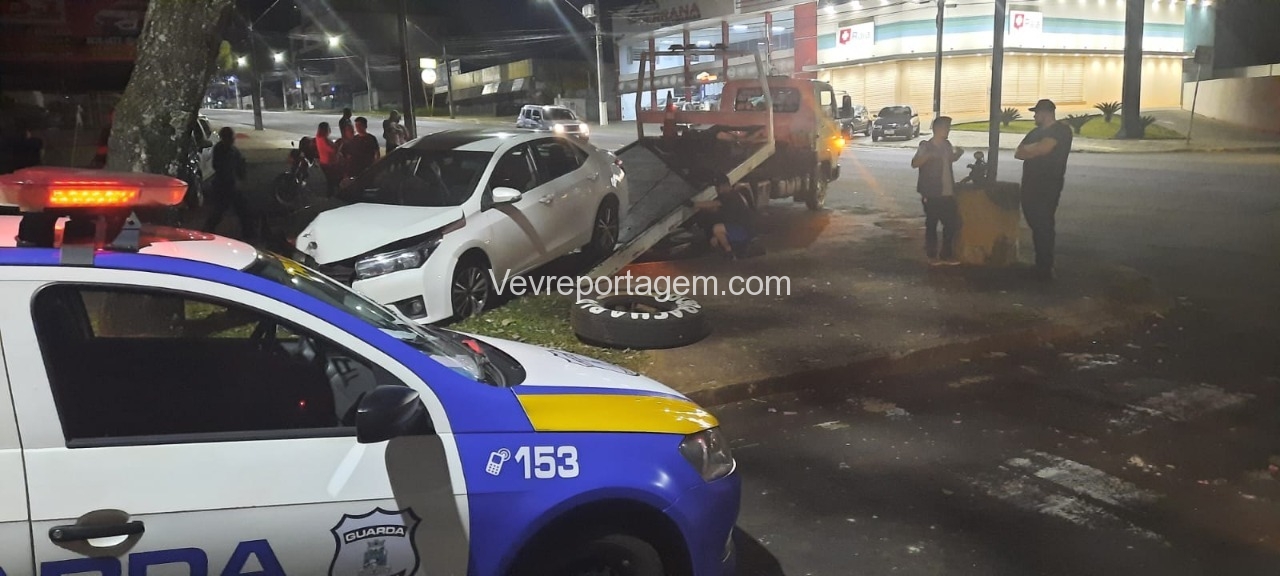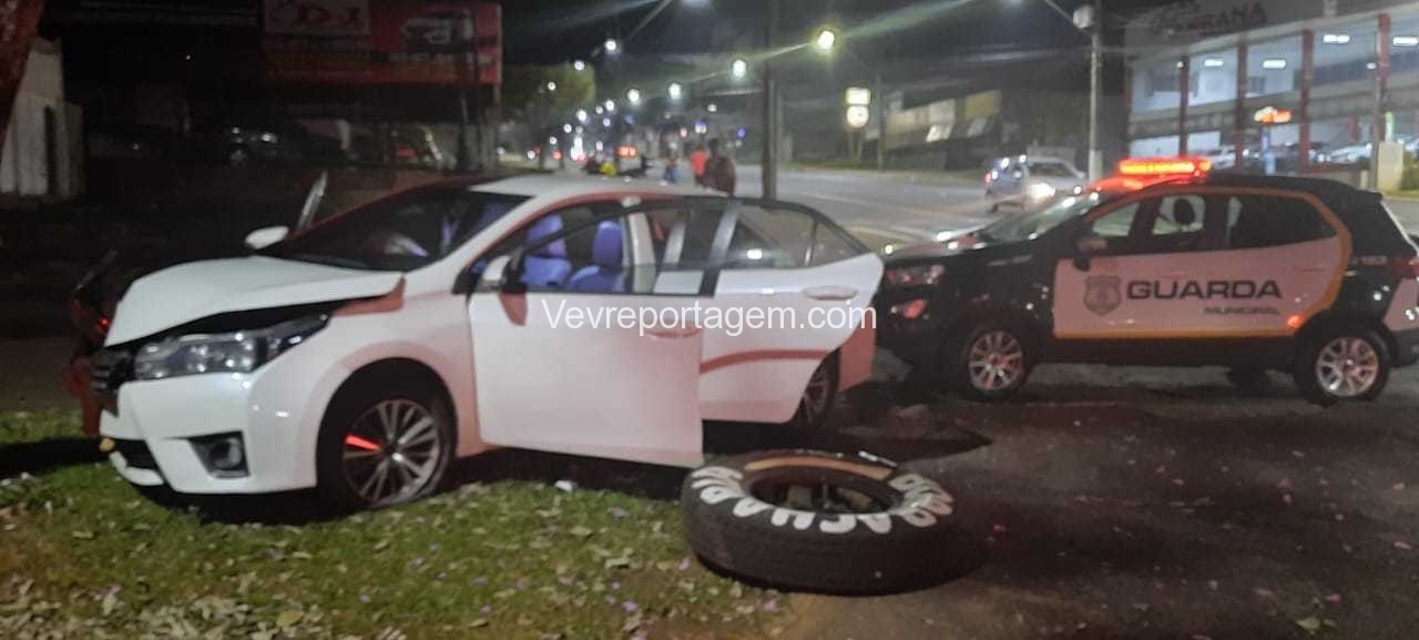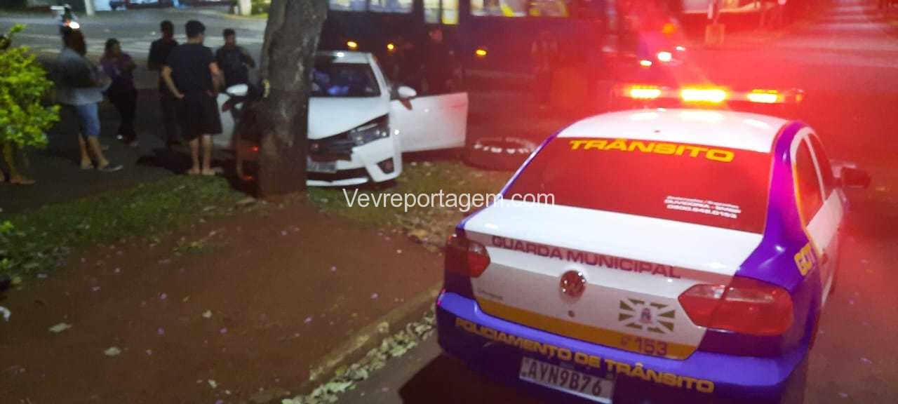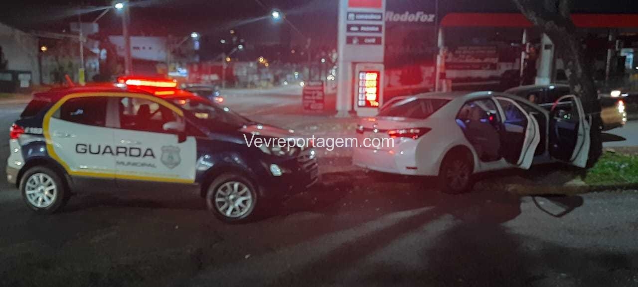 A equipe do Grupamento Operacional de Trânsito da Guarda Municipal, estava em patrulhamento pela Avenida Republica Argentina, quando observou o veículo marca TOYOTA modelo COROLLA de cor BRANCA e placas AZJ 2228 transitando em sentido oposto a viatura em alta velocidade e logo em seguida ao tentar acessar a Avenida João Paulo II, acabou colidindo contra uma árvore.