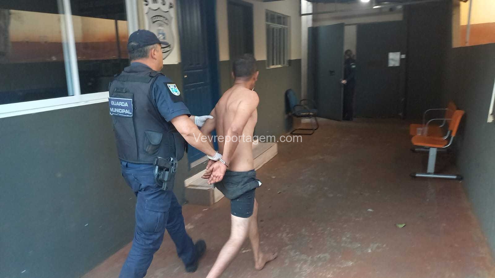 O suspeito recebeu voz de prisão no local e foi encaminhado, sob escolta da Guarda Municipal, à Delegacia da Polícia Civil, onde permanece à disposição da Justiça.