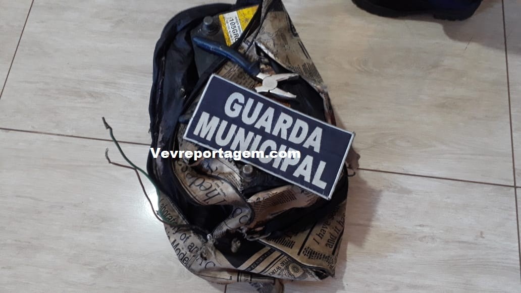 Os guardas ao chegarem no local constataram a ocorrência, onde o indivíduo estava dentro do pátio de onde fica as máquinas e estava em posse de uma bateria furtado de uma das máquinas.