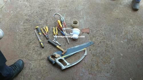 Para o local, foi enviado a equipe do Policiamento Comunitário da ÁREA LESTE/REFORÇO, qual ao chegar foi alertada por populares de que o denunciado estava em fuga em via publica sendo perseguido pela equipe e detido, o mesmo estava com uma bolsa, no interior da bolsa foi localizado dois alicates, quatro chaves de fenda, um martelo, um serrote, duas chaves, um estilete, um esmerilho, uma lanterna e uma serra corte, tudo produto de furto da residência do solicitante/vitima.