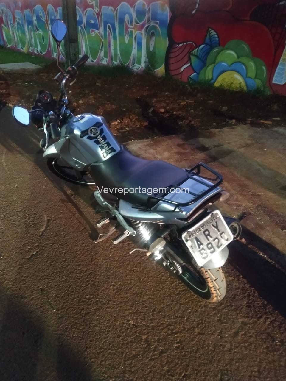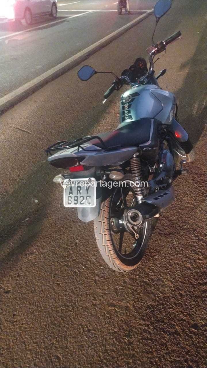 A equipe deslocou até o local e localizou uma motocicleta marca YAMAHA modelo FACTOR YBR125 ED de cor prata com placa ARY-8920, qual teve a placa consultada junto a central de operações e constatado ser produto de furto.