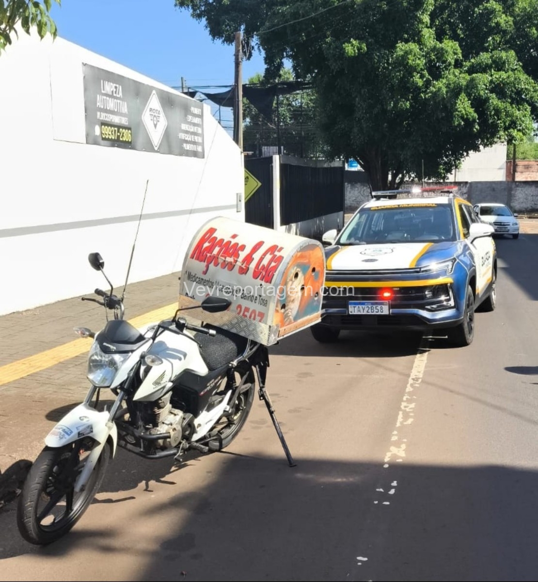 A Guarda Municipal foi até a Rua Castelo Branco, em frente a uma academia, após ser orientada pela Central da Guarda para averiguar a situação de uma motocicleta com suspeita de furto recente.