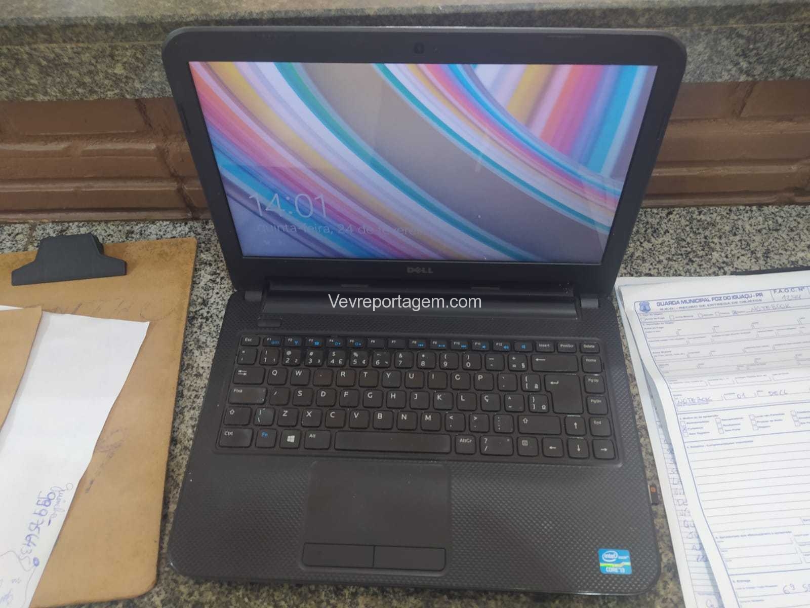 Para o local foi enviado a equipe do Policiamento Comunitário da Área Centro qual ao chegar ao local encontrou a pessoa de nacionalidade Paraguaia estava dominada por populares sendo que a solicitante/vitima relatou a equipe que está entrou em sua loja junto com uma pessoa do sexo masculino qual logrou êxito em fugir e subtraíram um Notebook qual foi recuperado pela vitima.