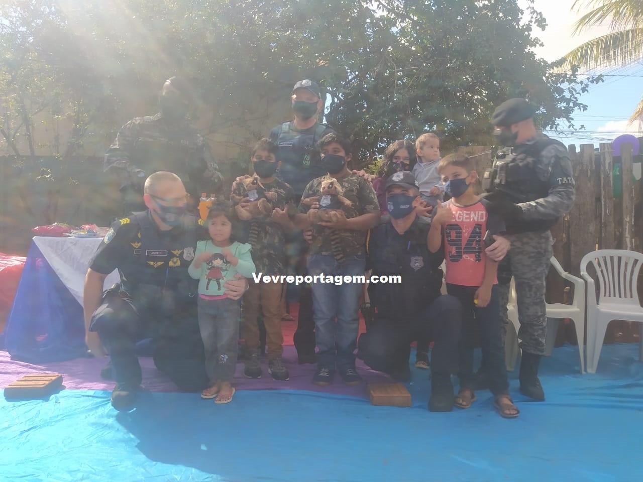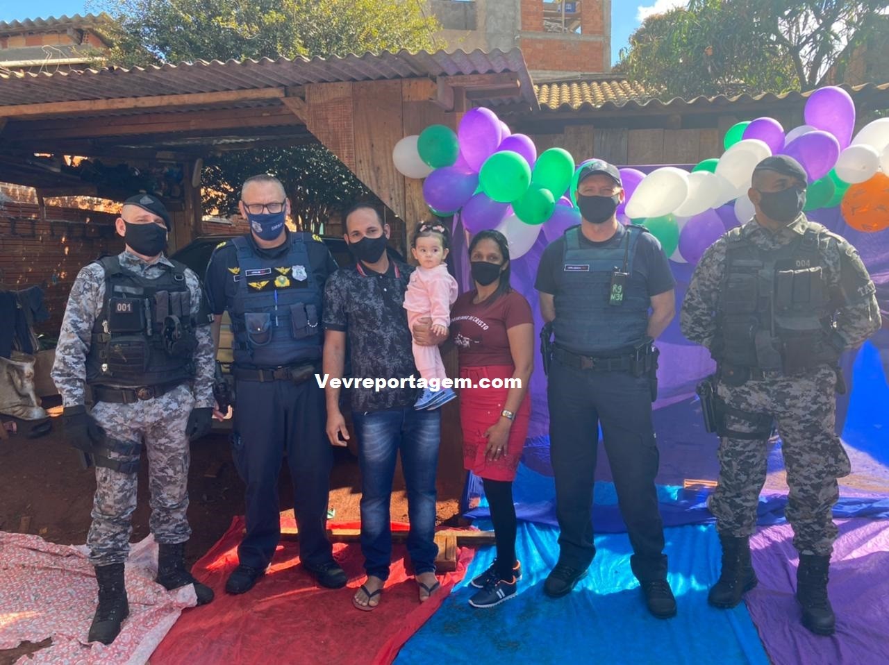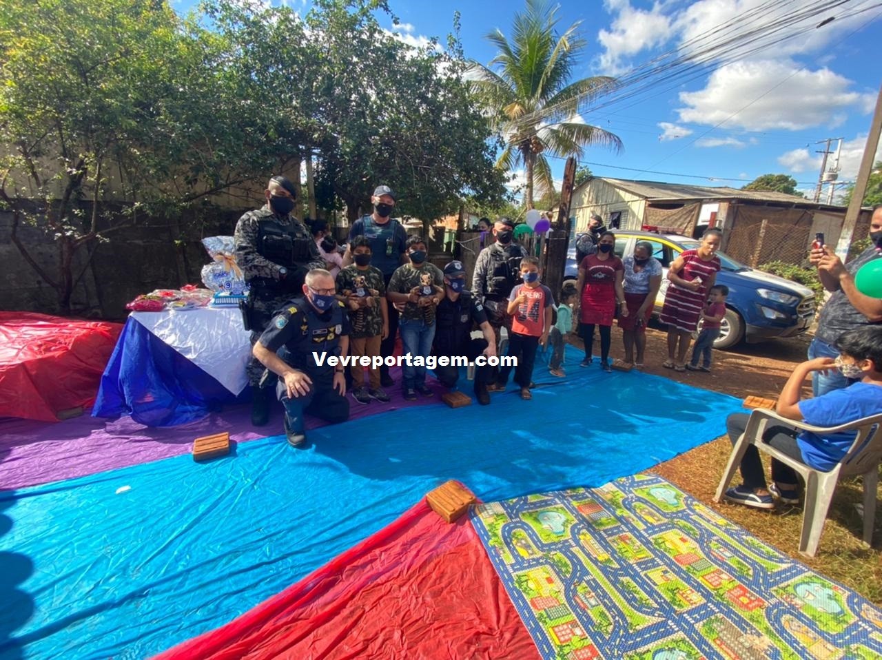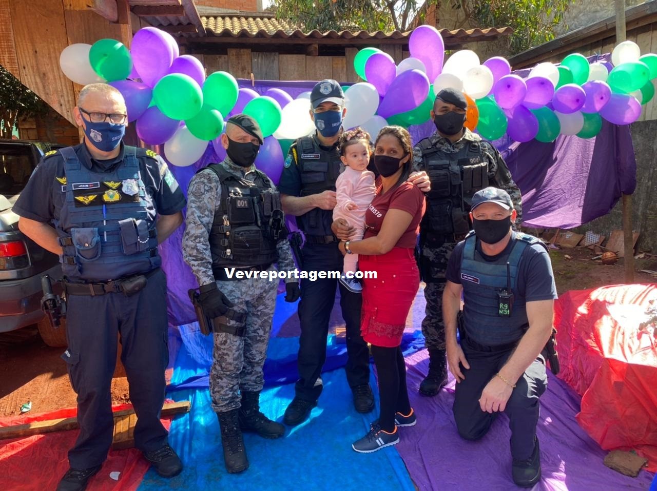 A guarnição além de ir na festa dos aniversariantes, levaram presentes e um bolo para comemorarem com as duas crianças este dia tão especial. Antes de cantarem o parabéns os aniversariantes tiraram fotos com os guardas municipais e até entraram na viatura para conhecer como funciona.