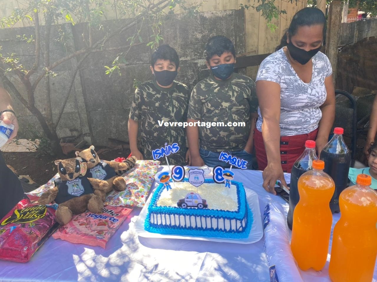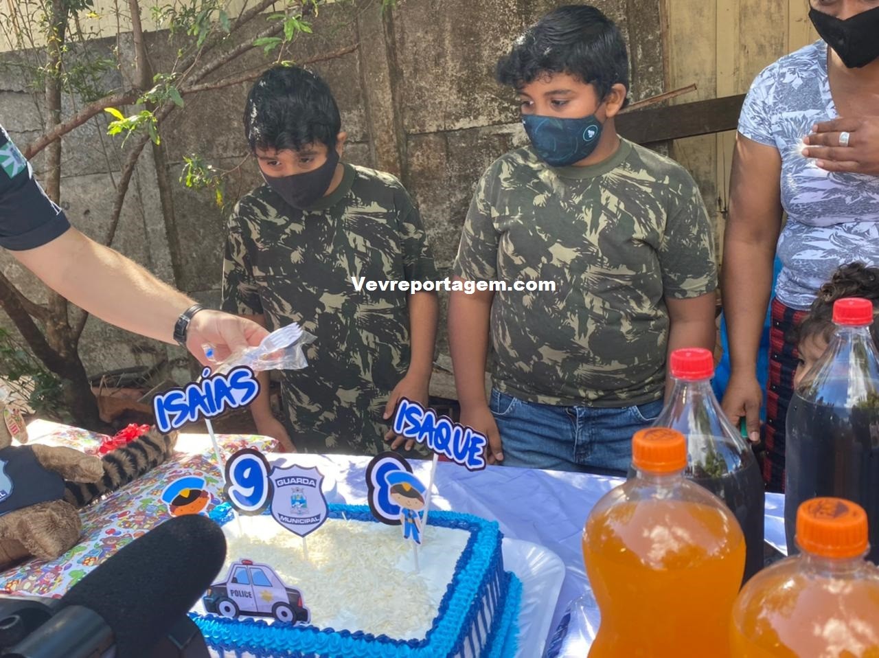 Os Guardas foram até a residencia dos dois aniversariantes sendo, Isaías e o Isaque, que ao avistarem as equipes da Guarda Municipal, não acreditavam no que estava acontecendo e de imediato já foram de encontro com as equipes.