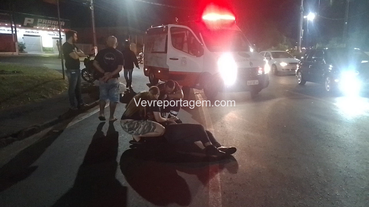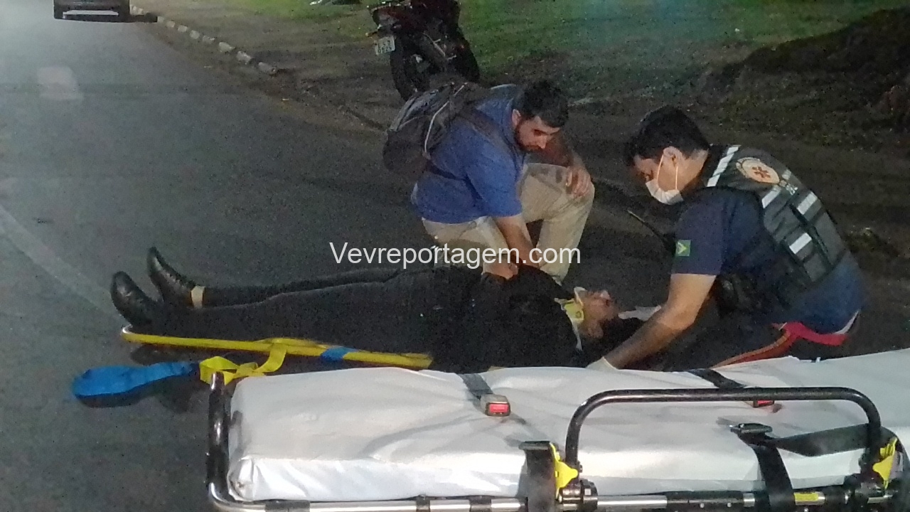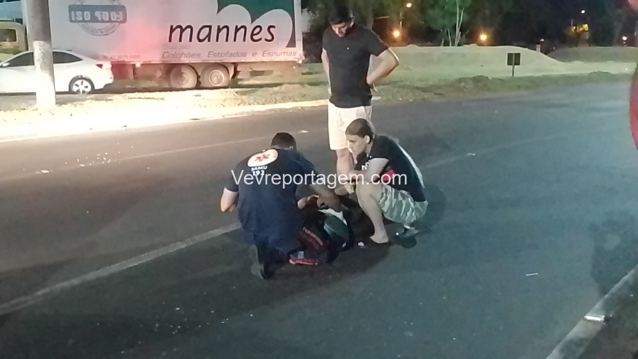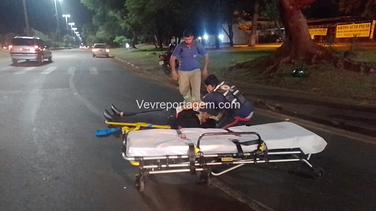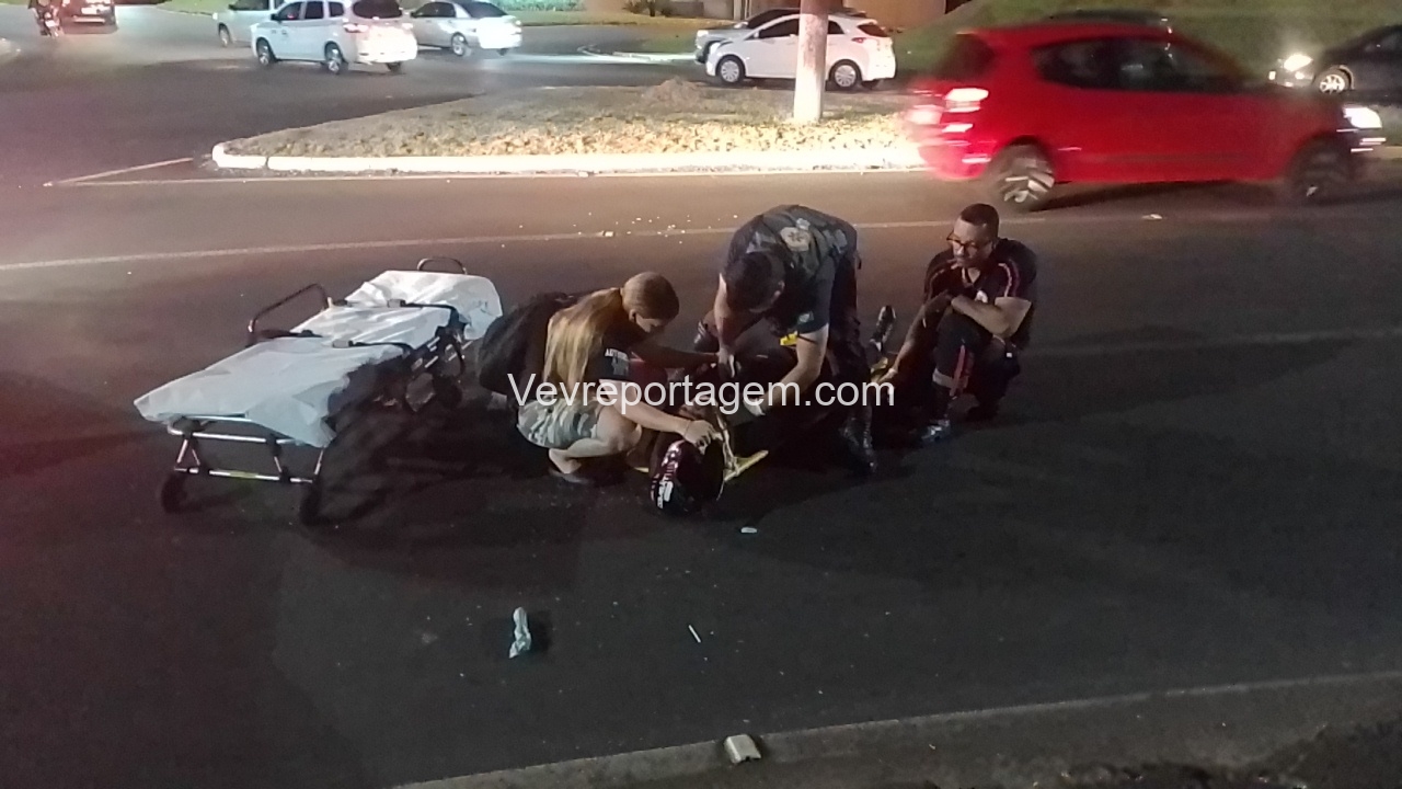 As informações repassadas que a motociclista vinha pela rotatória sentido o centro, quando uma motocicleta de cor vermelha furou a preferencial e colidiu. Nisso o motociclista da motocicleta vermelha pegou levantou a moto e fugiu sentido Avenida Jules Rimet. O fujão estava vestido com uma camiseta do Brasil e fugiu sem capacete.