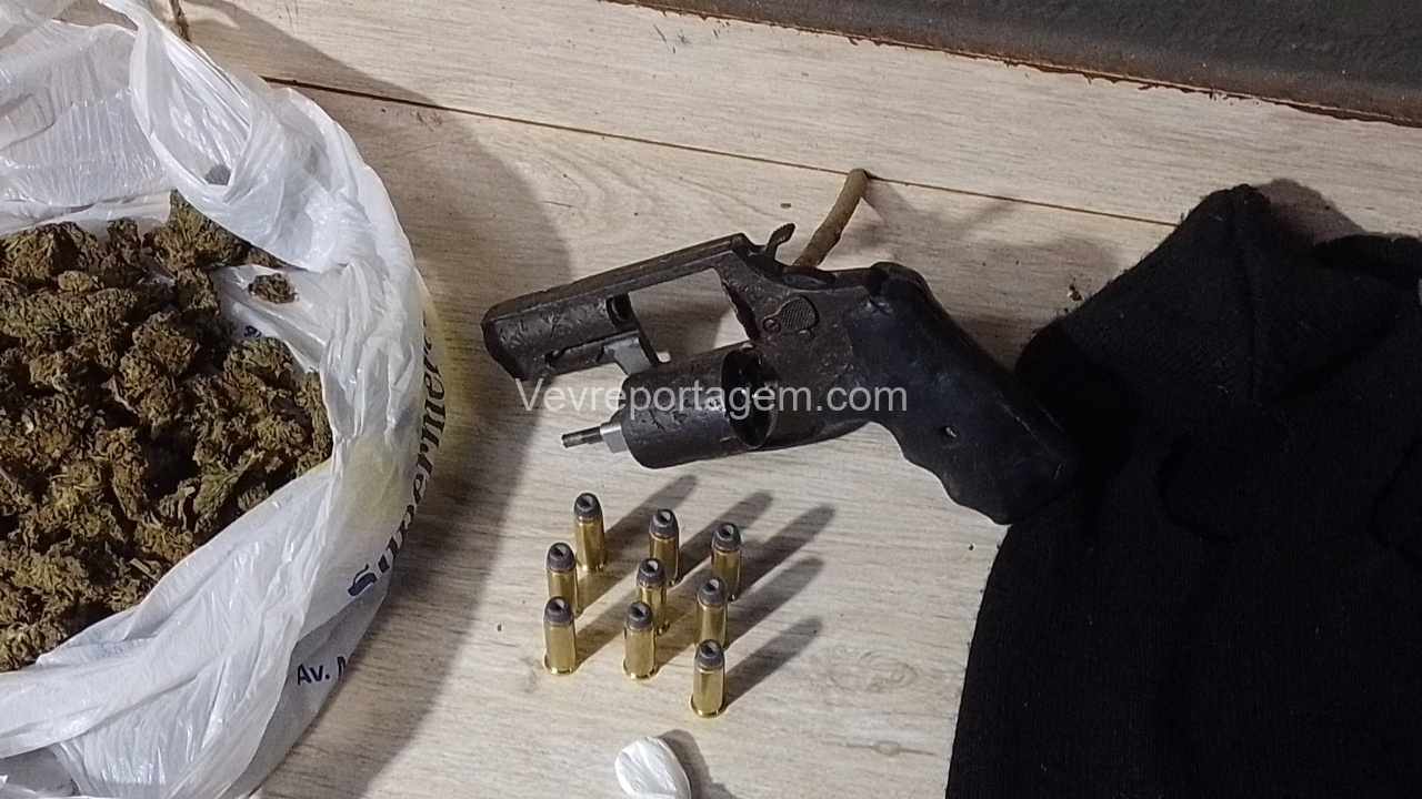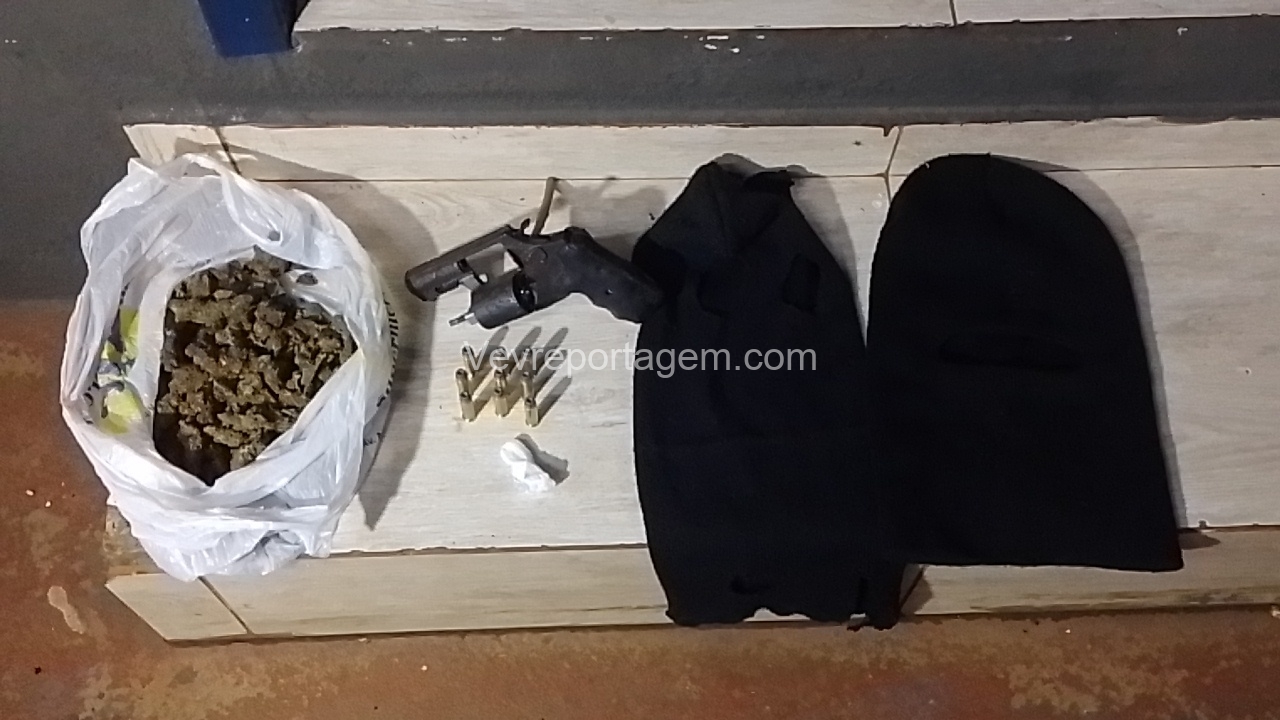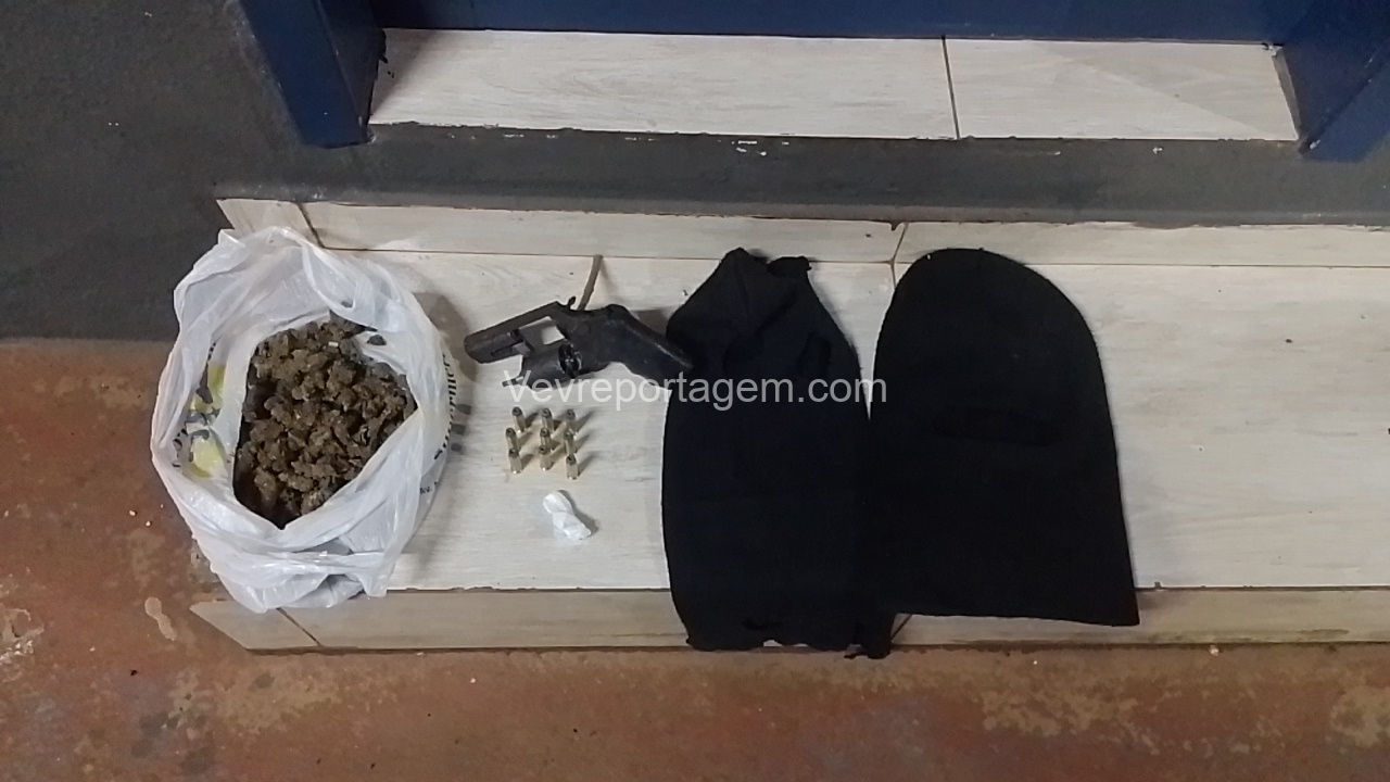 Na vistoria ao local, os militares encontraram balaclavas (capuzes), um revólver calibre .38 com munição e porções de droga. Apesar da negativa do homem sobre a propriedade da arma e do entorpecente, e a balaclava. Além disso, os policiais verificaram que a conta de energia elétrica do bar estava registrada em seu nome, reforçando o vínculo com o local.