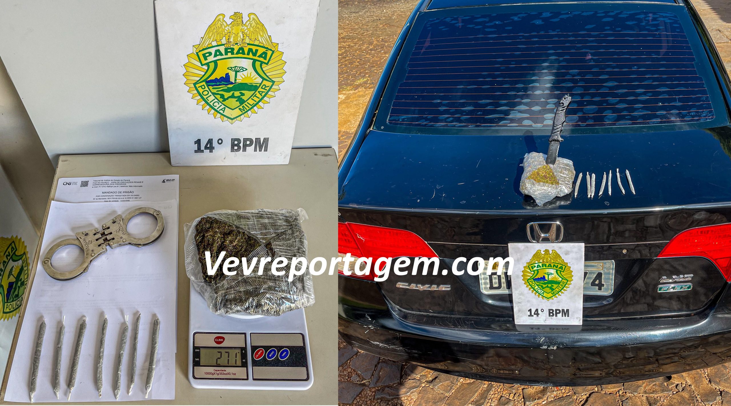 Após o recebimento das informações, foi montado um cerco policial que possibilitou a localização e abordagem do suspeito. Durante a busca no veículo utilizado por ele, os policiais encontraram aproximadamente 276 gramas de uma substância análoga a capulho (maconha).