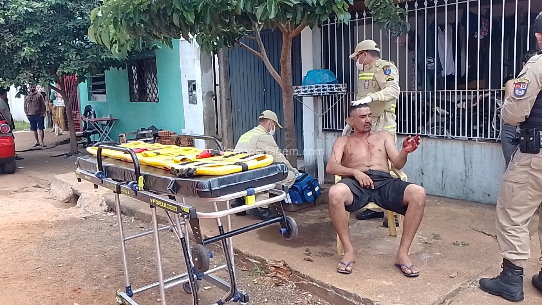 No local, a equipe encontrou a vítima, Jean Carlos Leite, de 31 anos, sentada em uma cadeira, consciente e orientada, apresentando um ferimento de disparo de arma de fogo na cabeça. Apesar de afirmar que não queria ser atendido, devido à gravidade do ferimento e à bala alojada, ele recebeu atendimento dos socorristas do SIATE, com o apoio médico do SAMU, e foi encaminhado ao Hospital Municipal para avaliação e cuidados médicos.