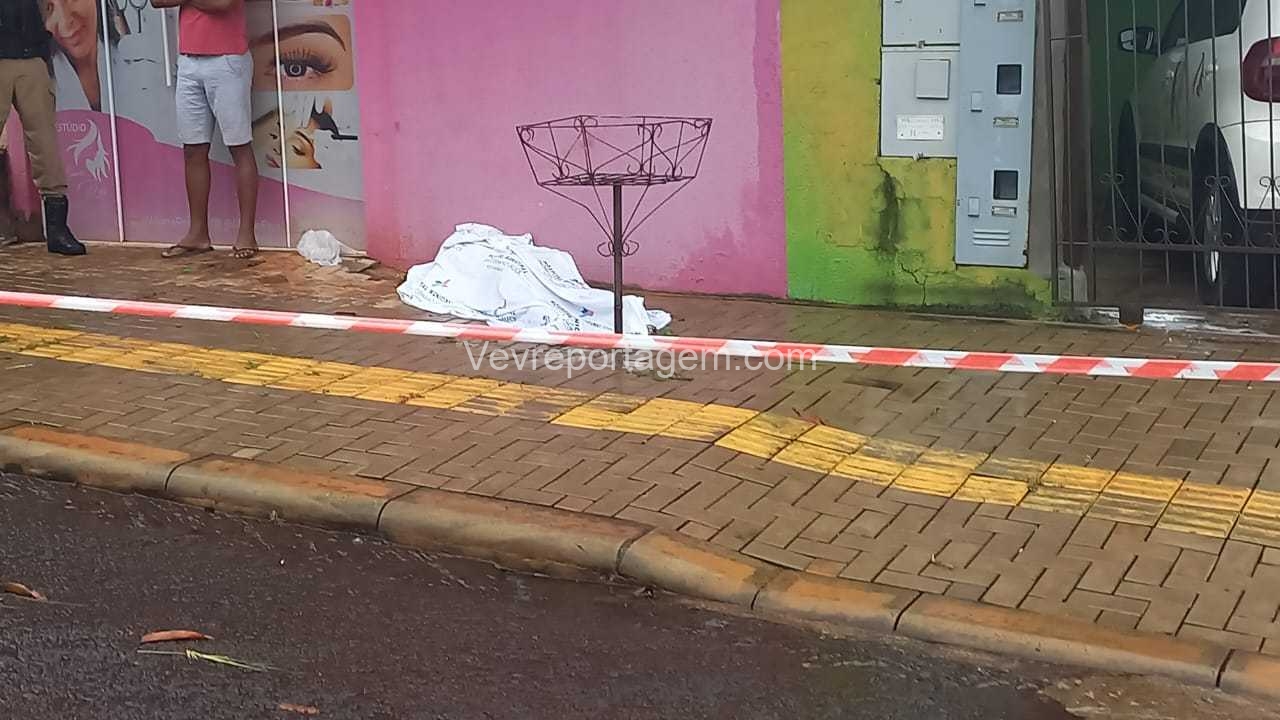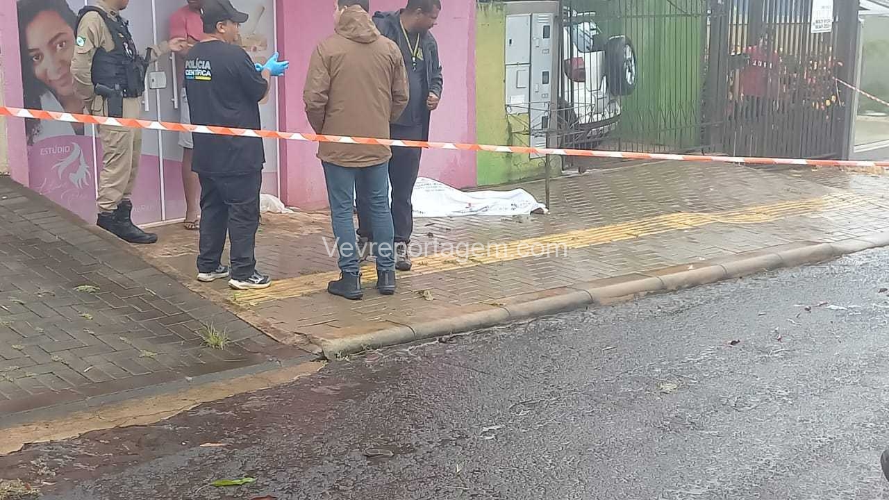 Segundo informações repassadas por populares, um homem estaria caído na calçada, com ferimentos e possivelmente já em óbito.