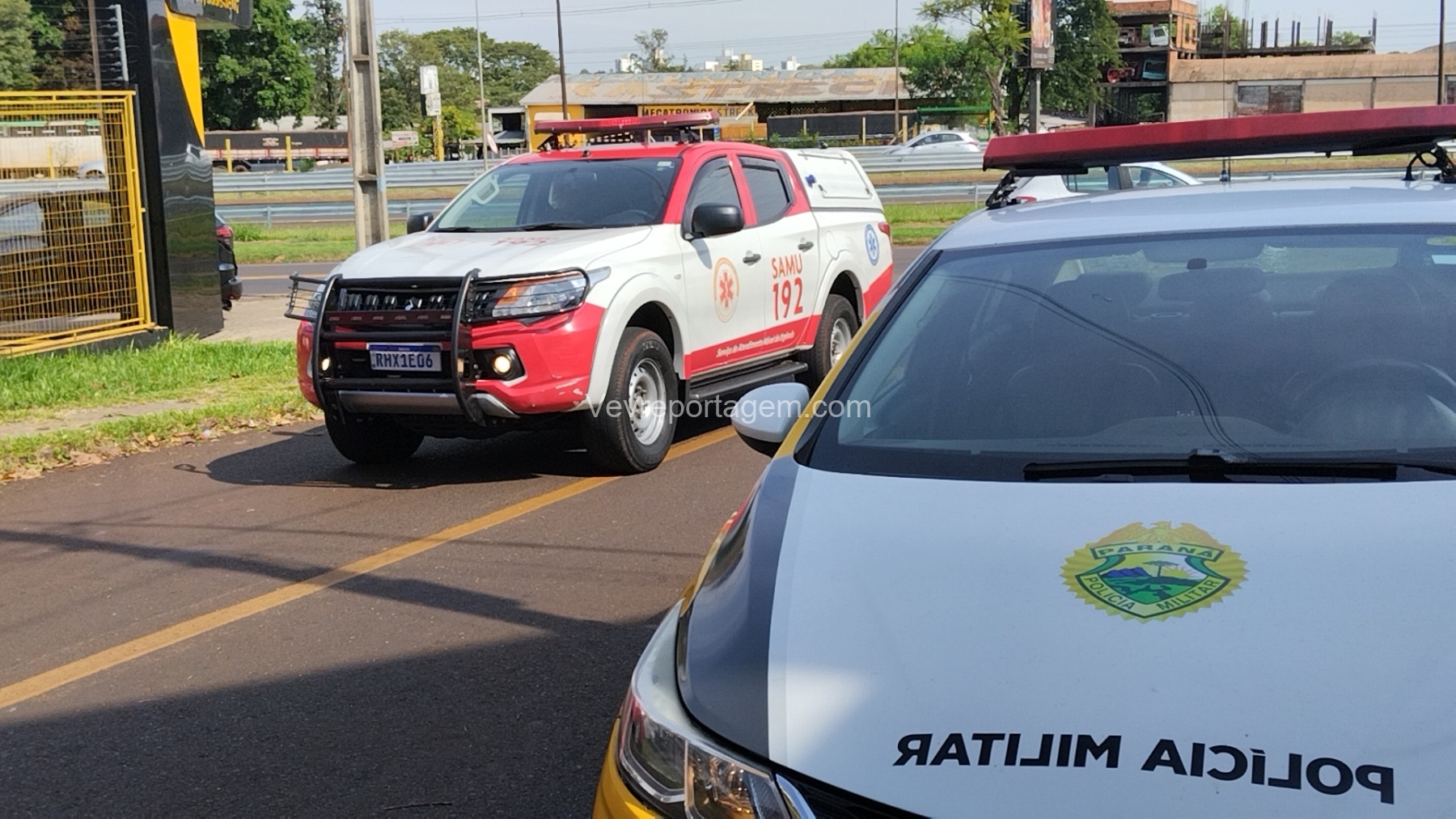 Socorristas do Siate foram acionados inicialmente para atender uma ocorrência de ferimento por arma de fogo em via pública. Ao chegarem ao local, a vítima foi avaliada, imobilizada e colocada na maca, sendo encaminhada para o interior da ambulância. Durante o atendimento, foi solicitado apoio médico do Samu.