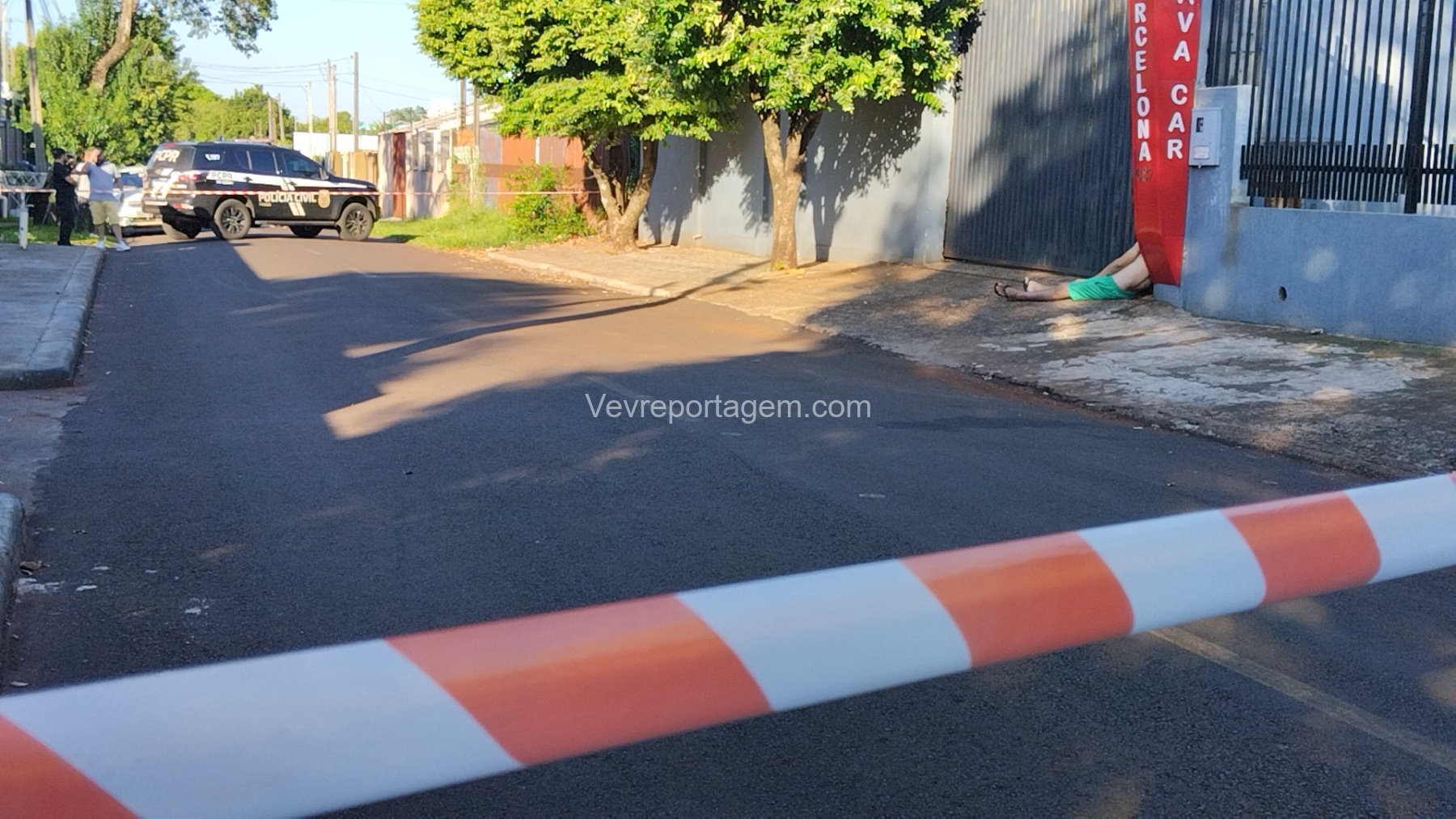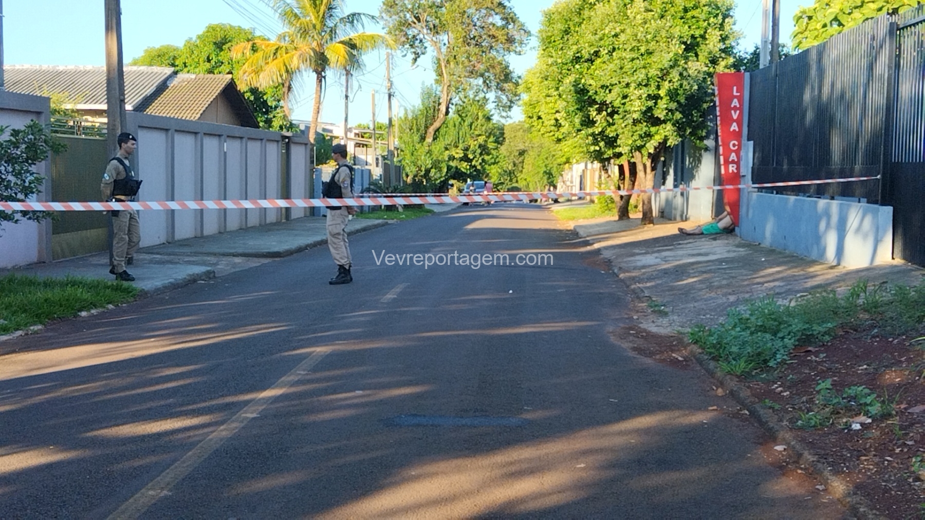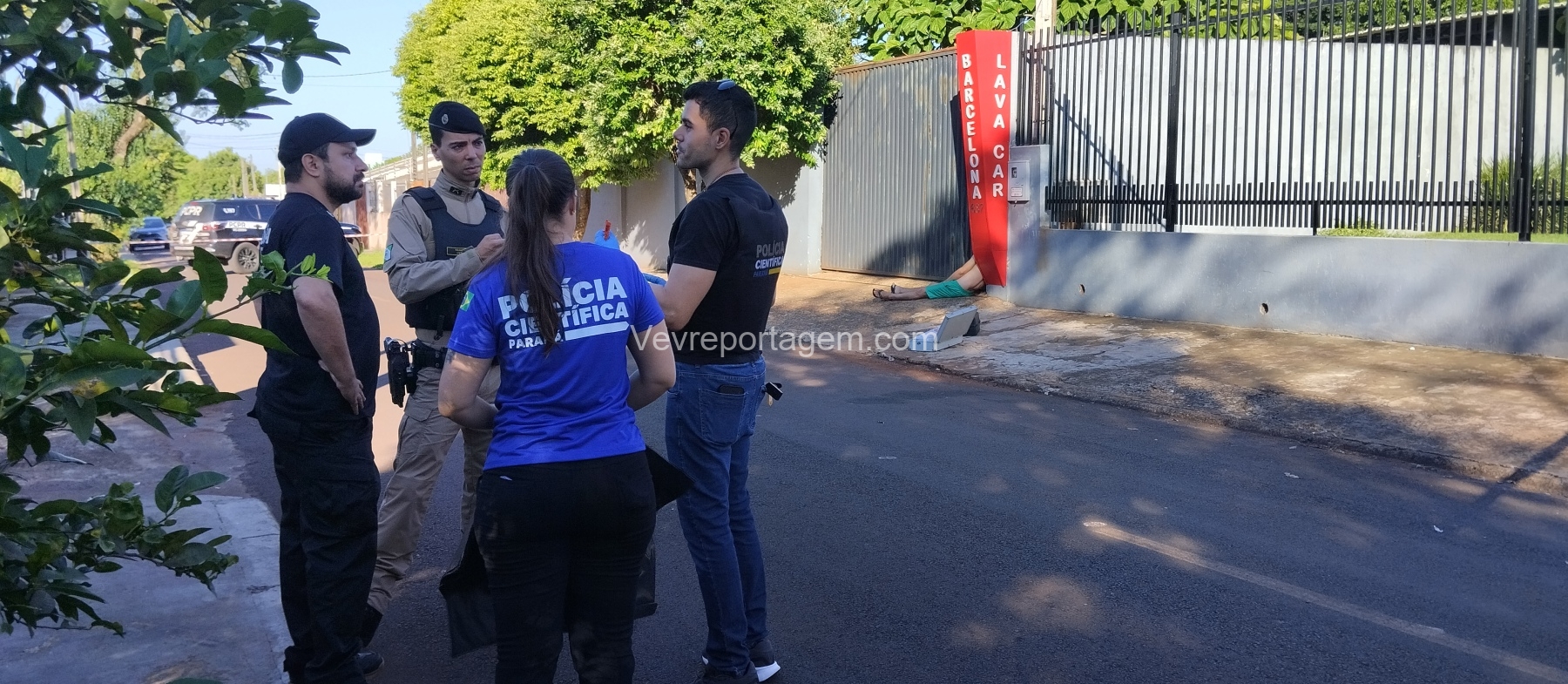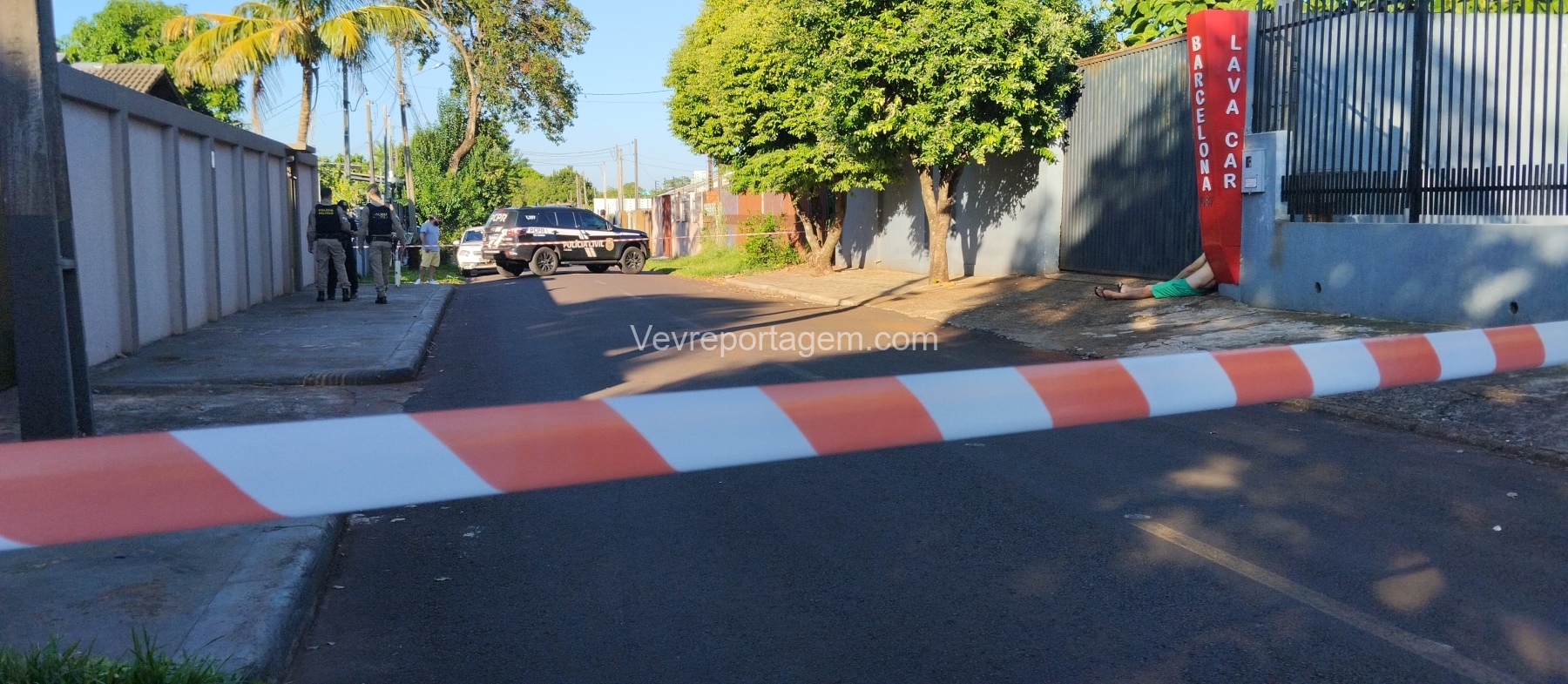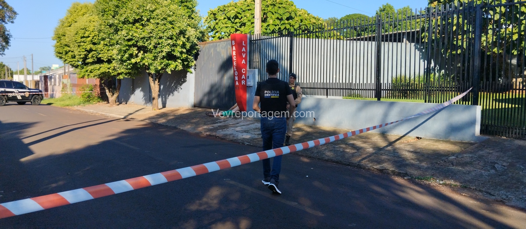 Ao chegarem, as equipes encontraram a vítima, identificada como Jair Florentino Gama, caída ao lado do portão do lava-car de sua propriedade. Após avaliação, foi constatado que o homem já estava em óbito.