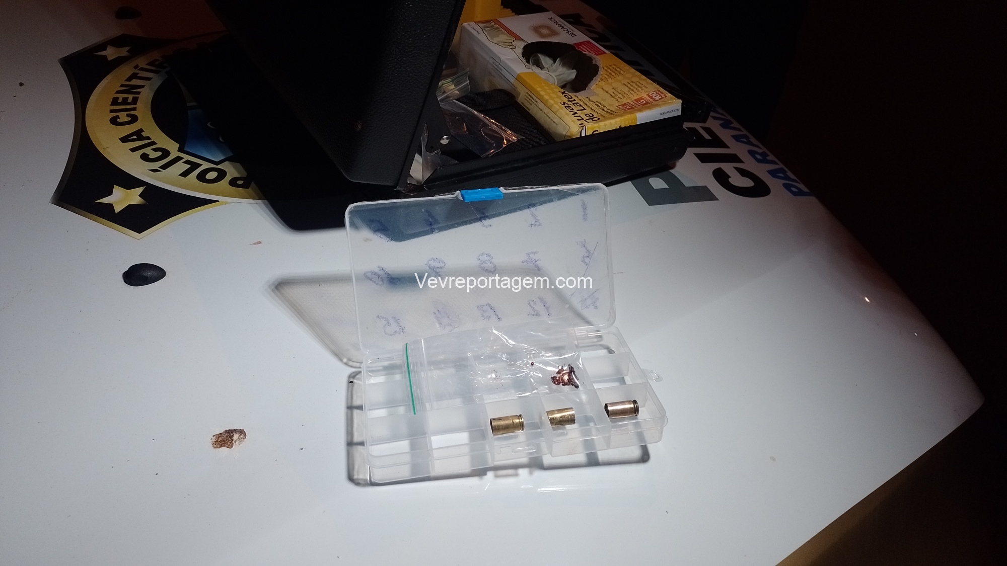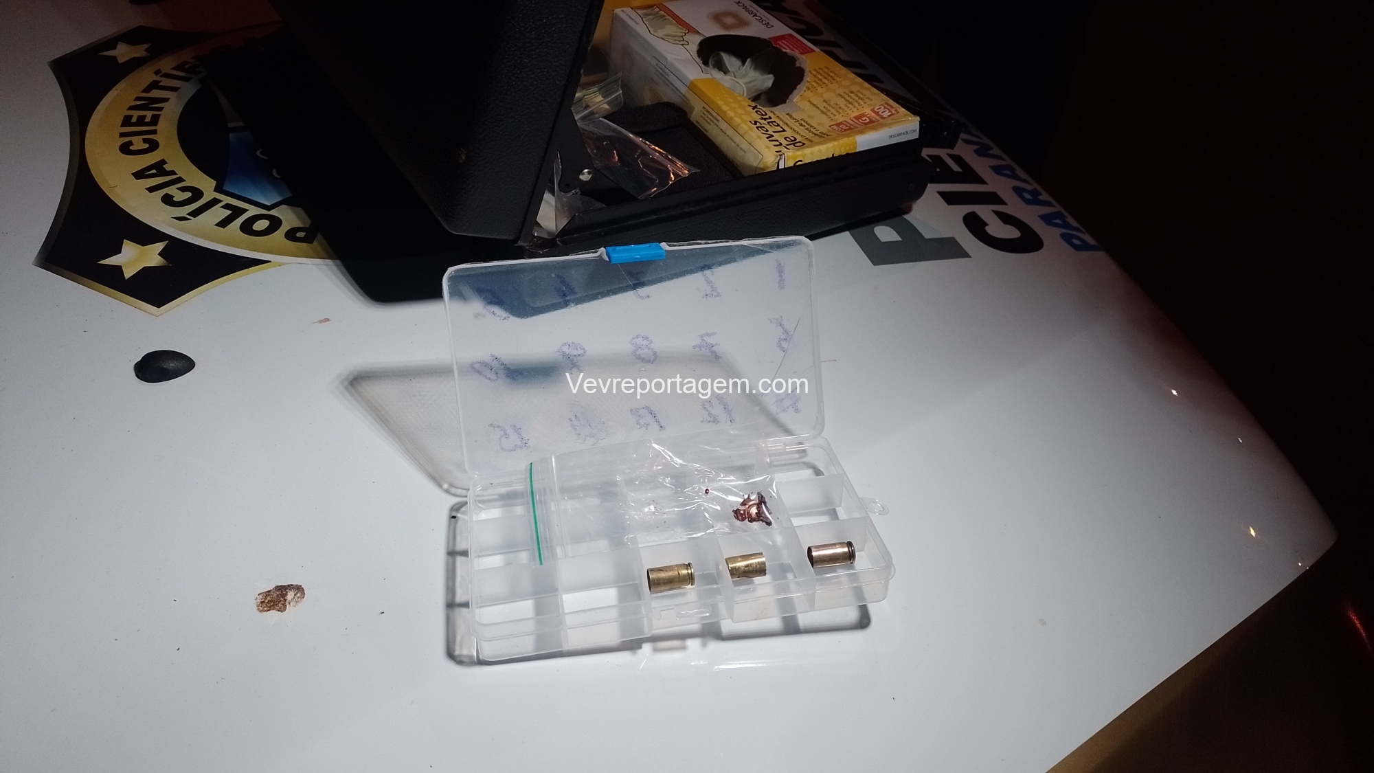Com a chegada da Criminalista a perícia foi feita, e foi encontrado na cena do crime 4 cápsulas de pistola 9mm, e a vítima foi ferida por dois disparos acertando um tiro na cabeça e outro nas nádegas.