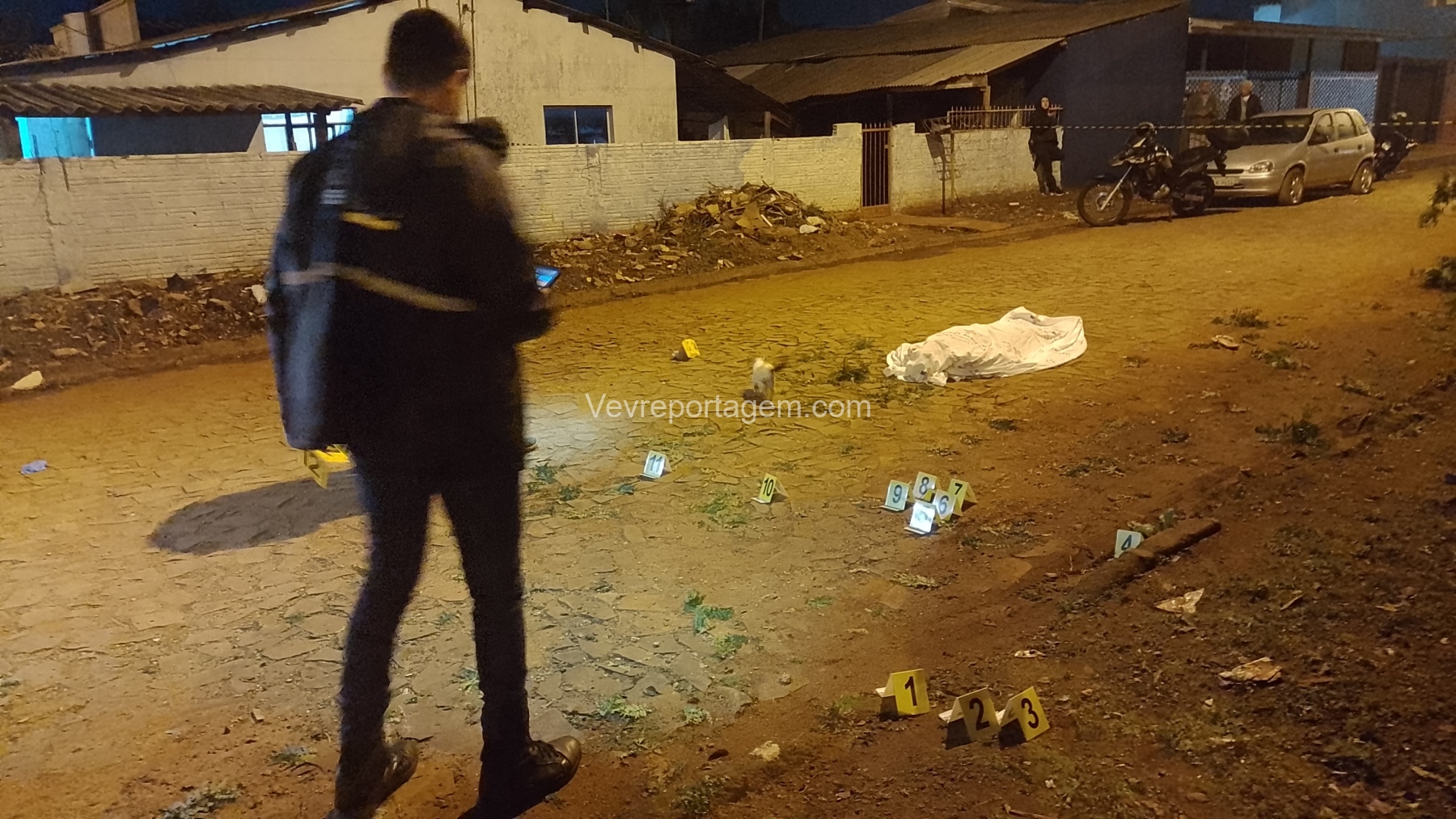 A perícia constatou múltiplas perfurações provocadas por disparos de arma de fogo. No local, foram recolhidas 11 cápsulas de pistola calibre 9mm. O corpo foi encaminhado ao IML de Foz do Iguaçu, onde passará por exames de necropsia antes de ser liberado para os familiares.
