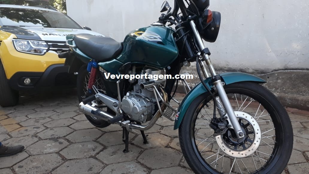 Em patrulhamento os policiais conseguiram localizar o homem com a motocicleta empurrando, pois a mesma caiu a corrente. Após ser abordado o homem foi reconhecido pela vítima e populares que avistaram a situação.