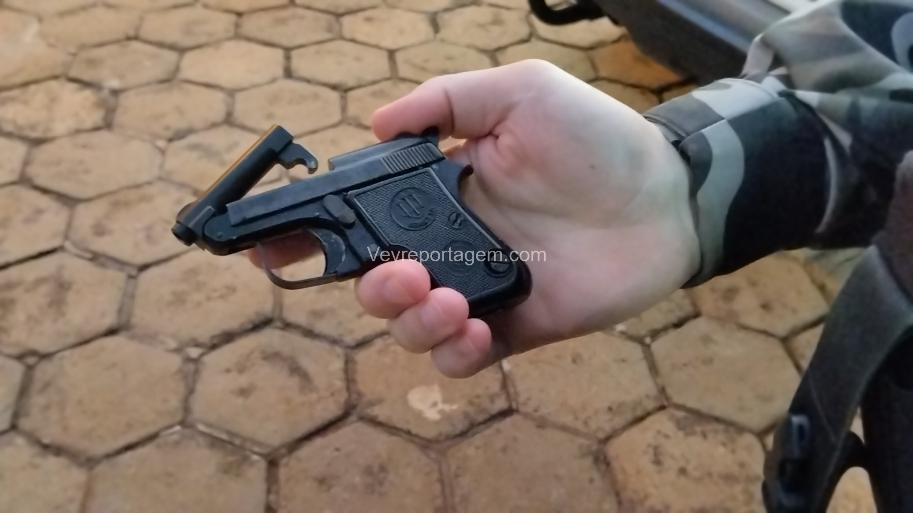 Diante da situação, a equipe deu ordem de parada, a qual foi prontamente acatada. Durante a revista pessoal, os policiais localizaram com o suspeito uma arma de fogo de calibre 635.