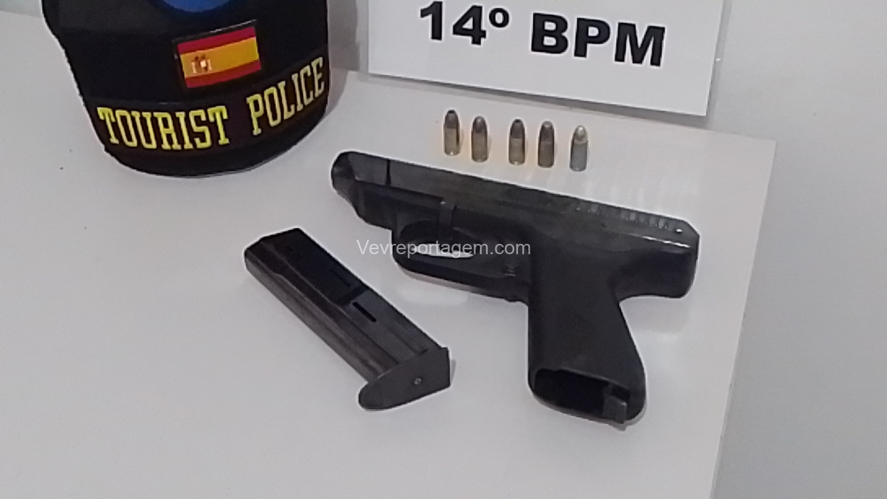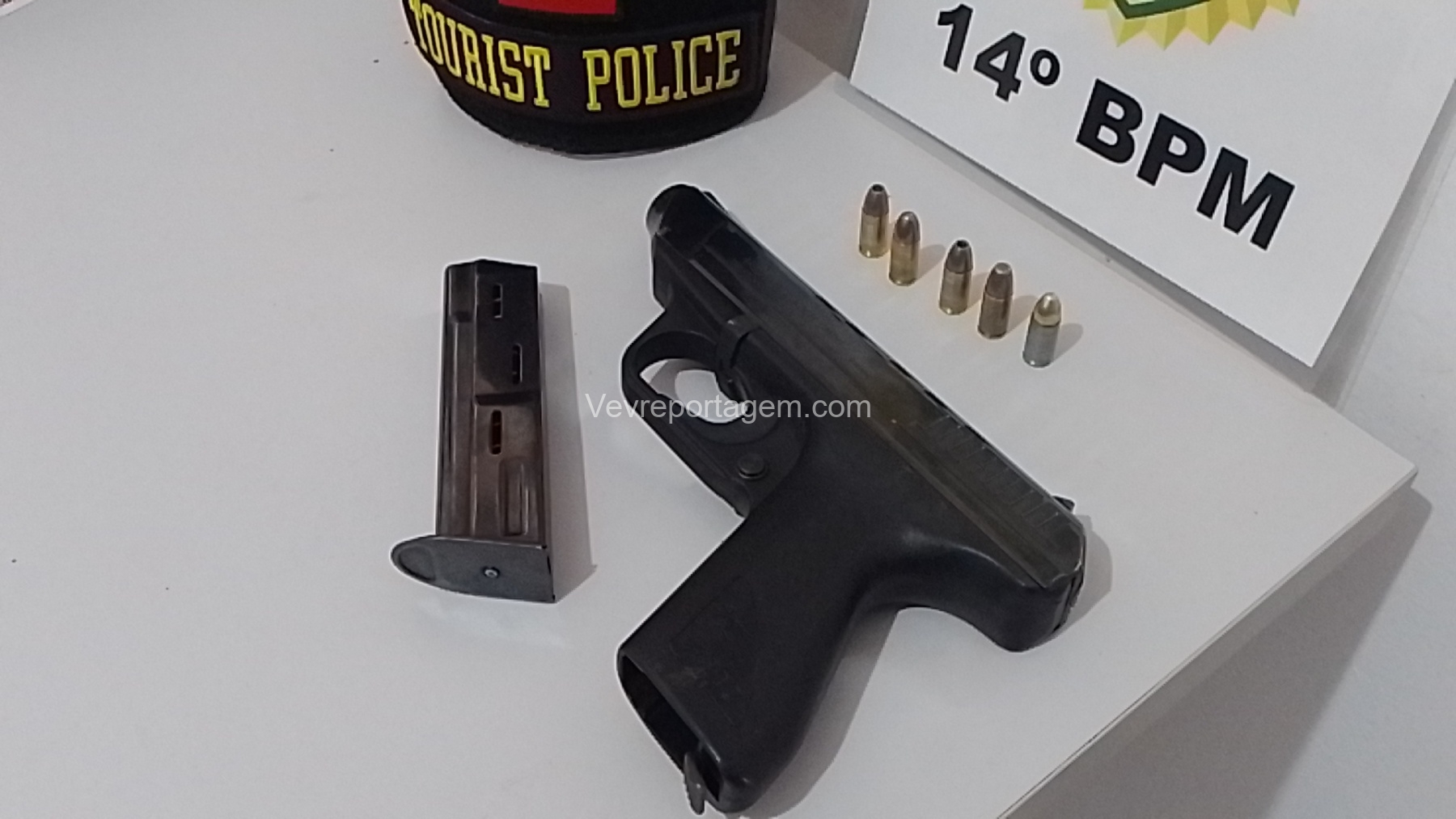 Na sequência, os militares realizaram a abordagem e encontraram, próximo ao suspeito, uma arma de fogo calibre 9mm, que estava municiada.