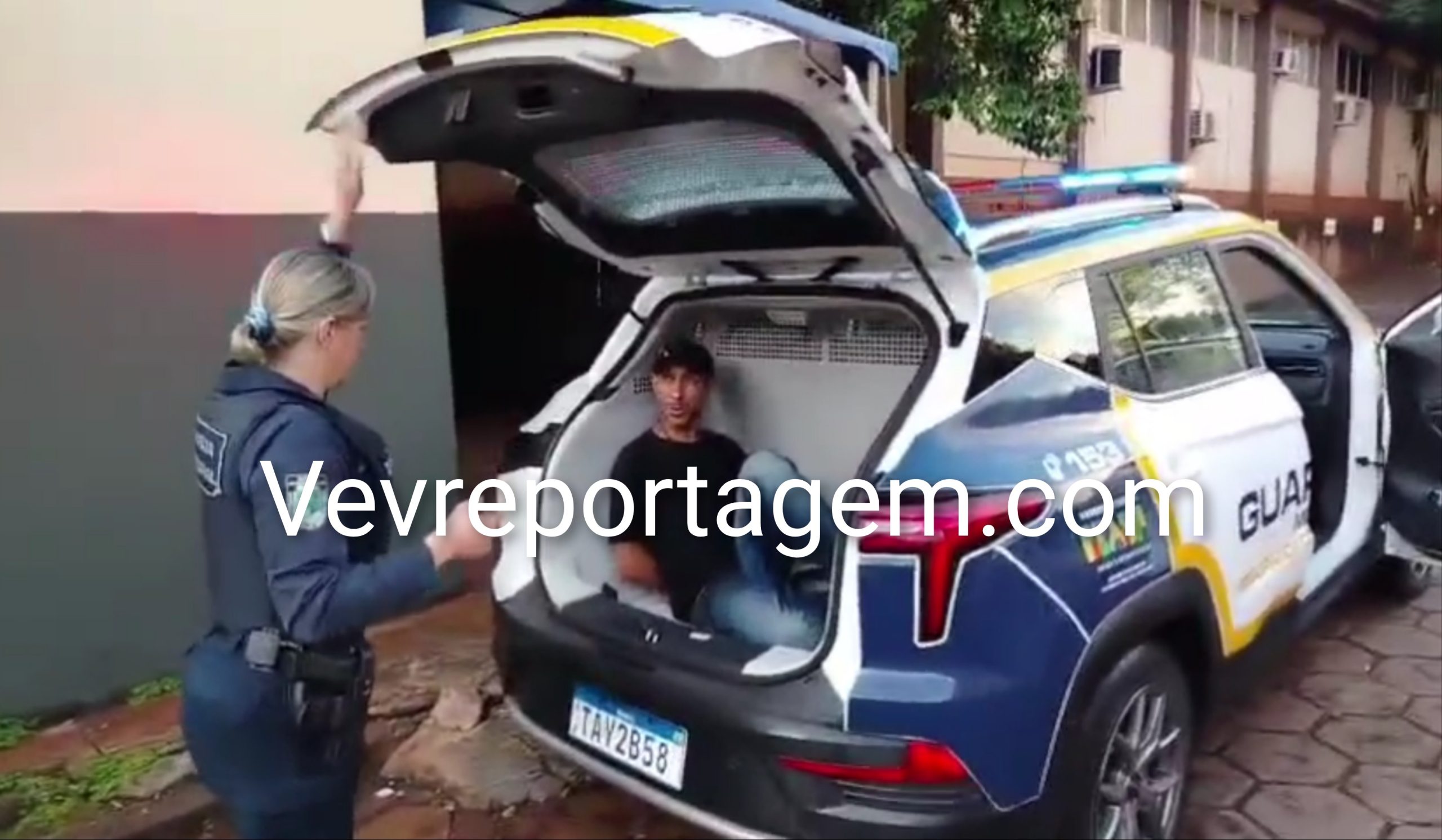 De acordo com a solicitante e vítima, um homem, trajando camiseta preta e calça jeans, teria pulado o portão da residência atualmente desabitada e adentrado ao local. Ao chegar, a equipe foi recebida pela solicitante, que abriu o portão para permitir a entrada dos guardas e indicou um depósito nos fundos da casa, onde o suspeito foi encontrado.