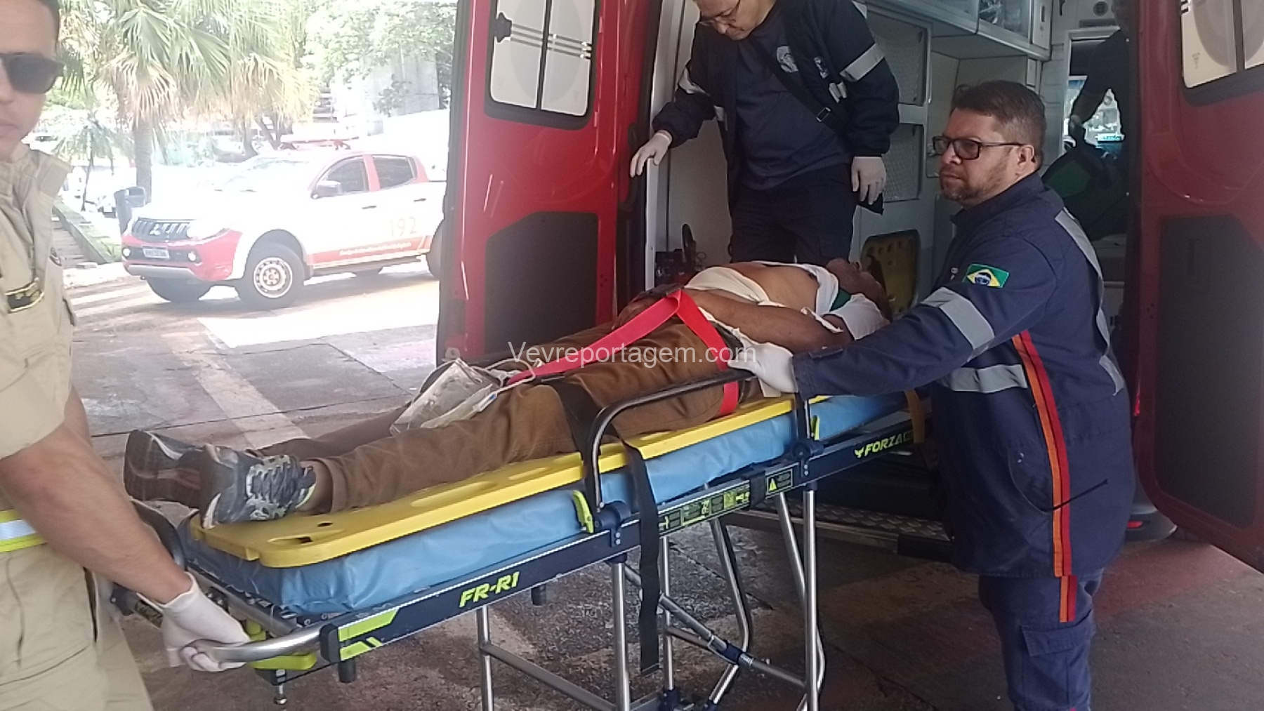 No local, os socorristas encontraram Vanderlei da Rosa Barreto, de 50 anos, com um ferimento grave na região do abdômen. A vítima recebeu os primeiros atendimentos ainda na via e, em seguida, foi encaminhada em estado grave ao Hospital Municipal de Foz do Iguaçu.