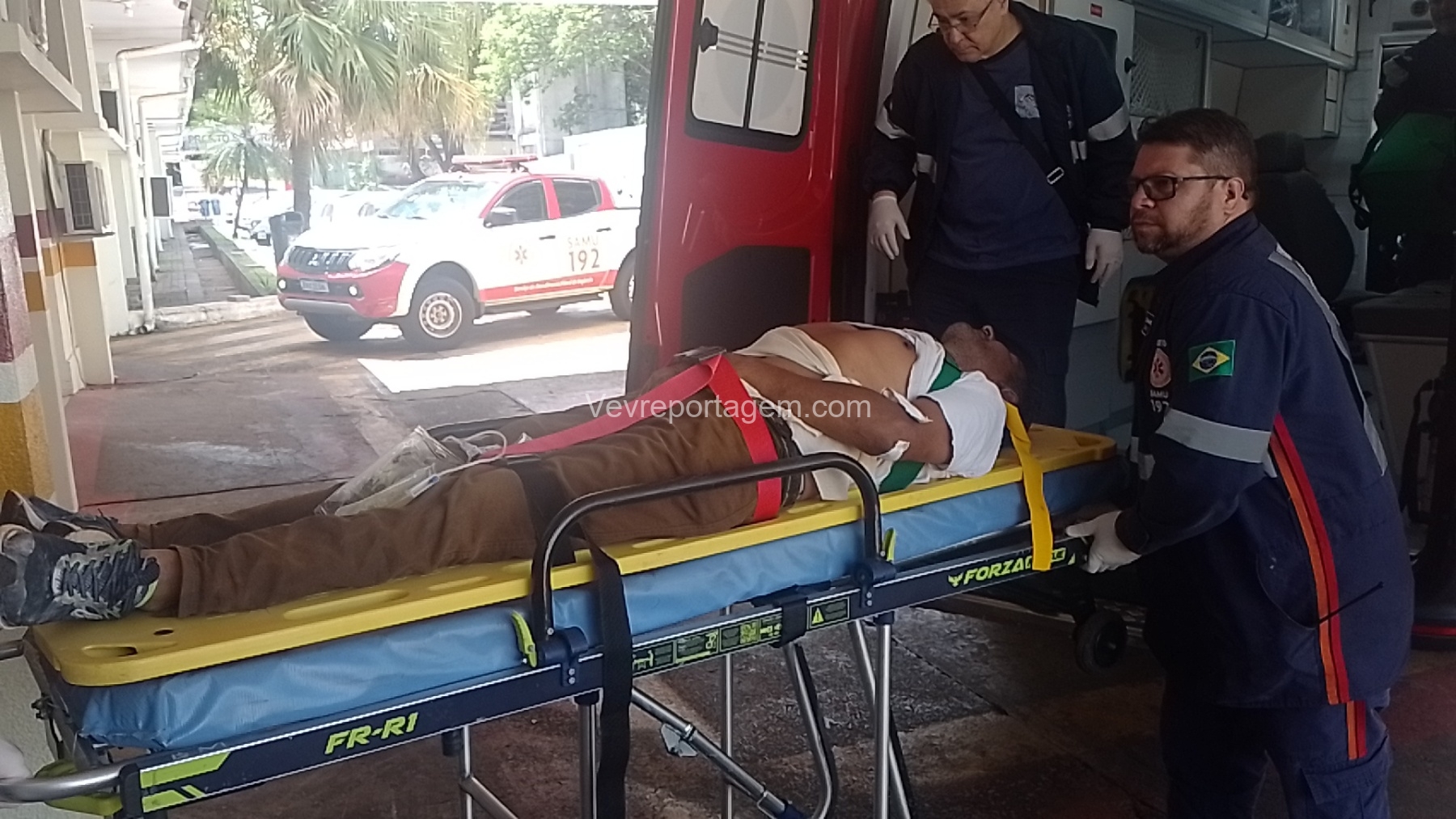 No local, os socorristas encontraram Vanderlei da Rosa Barreto, de 50 anos, com um ferimento grave na região do abdômen. A vítima recebeu os primeiros atendimentos ainda na via e, em seguida, foi encaminhada em estado grave ao Hospital Municipal de Foz do Iguaçu.