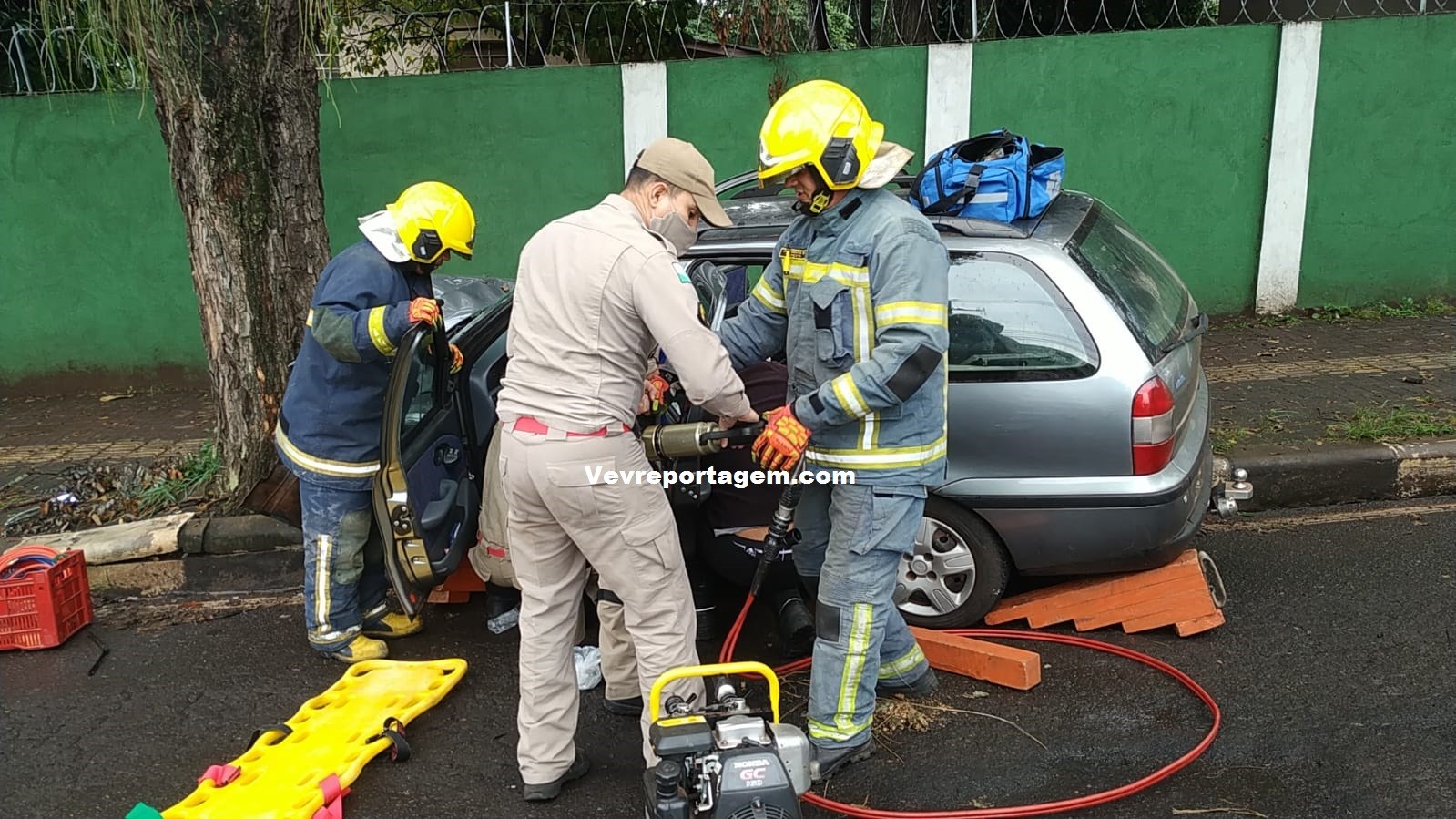 Para o local do acidente, foram enviados uma ambulância do Siate, apoio médico e um ABTR Auto (Bomba Tanque de Resgate), pois a vítima estava presas na ferragens.