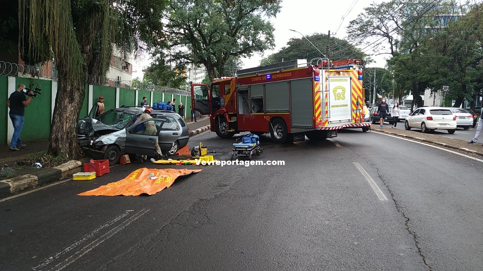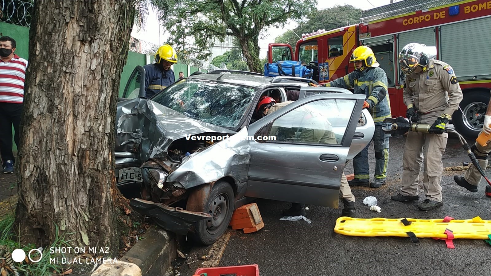 Segundo repassado no local, que o motorista do Palio Wilkend vinha descendo a Avenida Paraná, sentido Centro, quando teria colidido em outros dois veículos parados no semáforo do outro lado da via, após a colisão nós veículos o motorista perdeu o controle e colidiu violentamente contra a árvore. Os socorristas não descartaram a possibilidade do homem ter tido um mau-súbito.