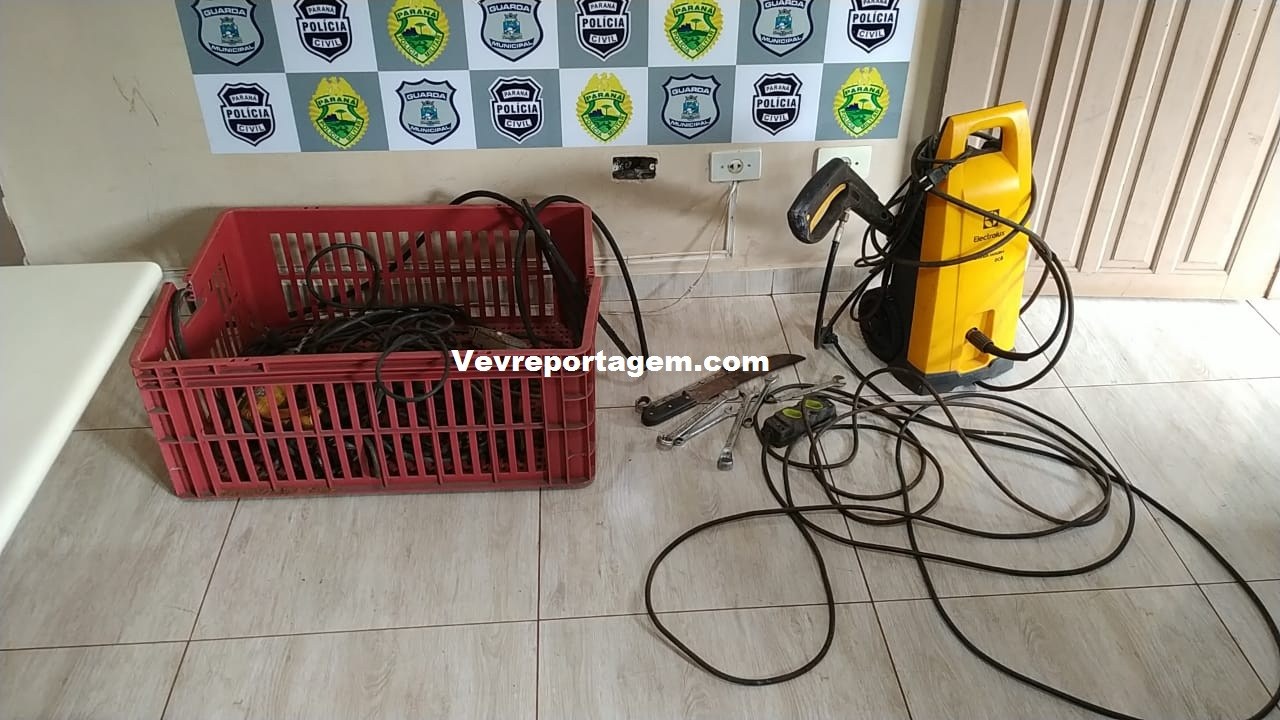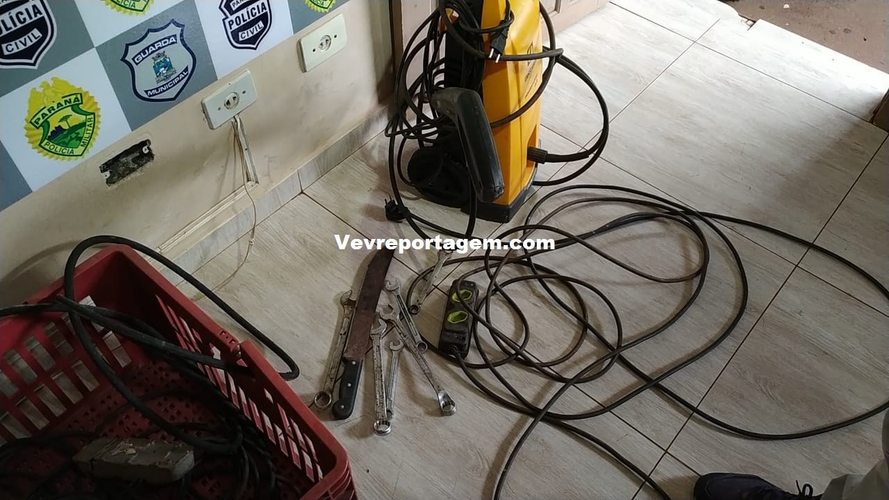 O homem identificado sendo, Romário Pinto Berte, 21 anos de idade, nacionalidade paraguaia, foi encaminhado para a delegacia juntamente com alguns objetos recuperados, já na residencia onde ele vendia a maquina de lavar calçadas por 50 reais, a mulher que ali estava foi encaminhada para a delegacia e poderá responder por receptação.