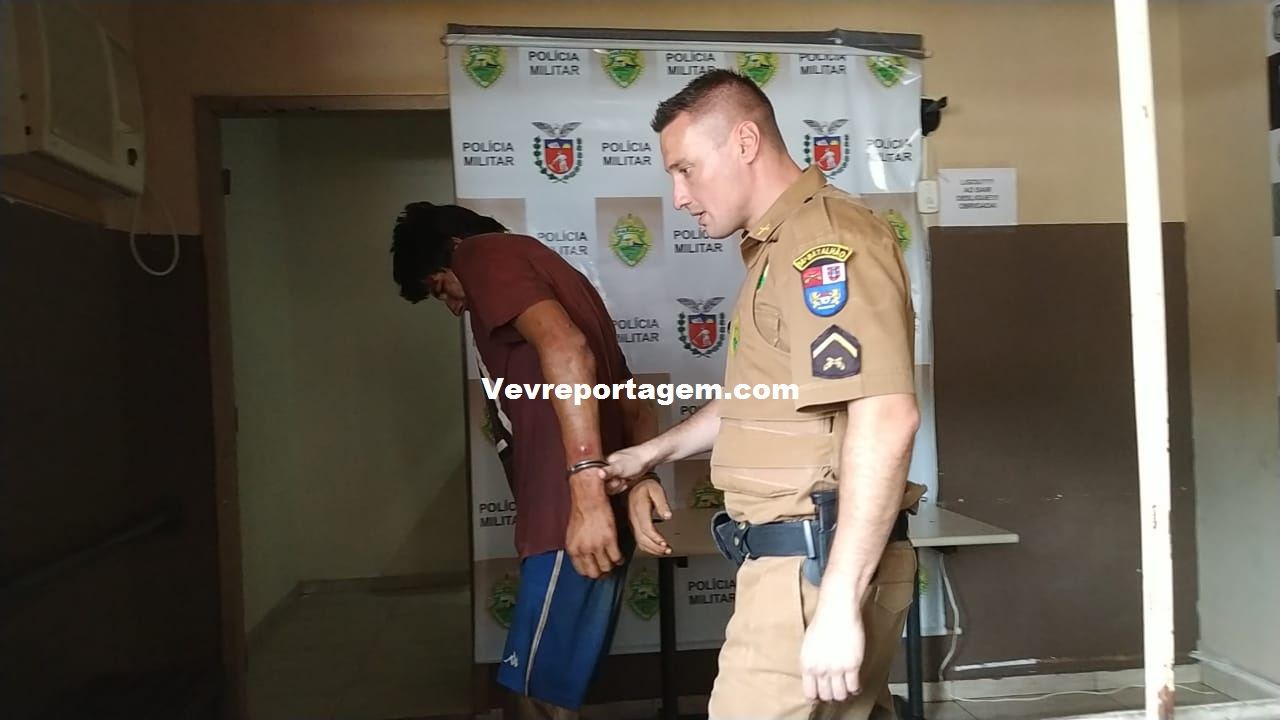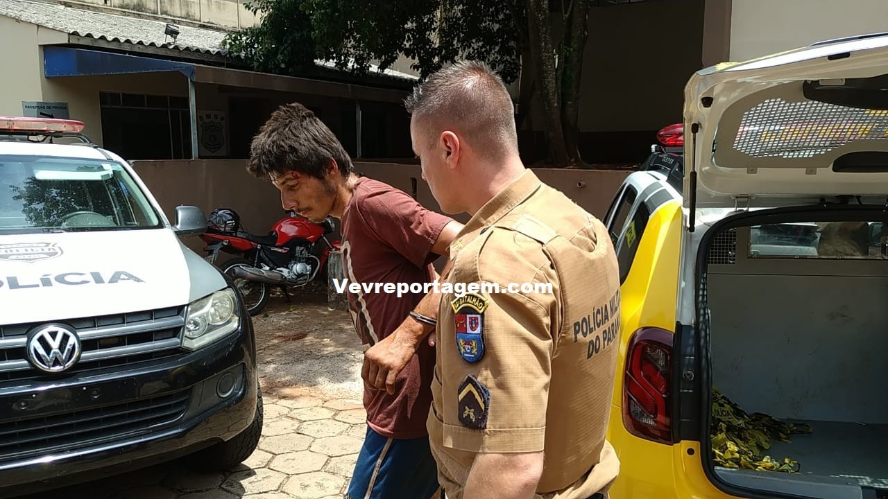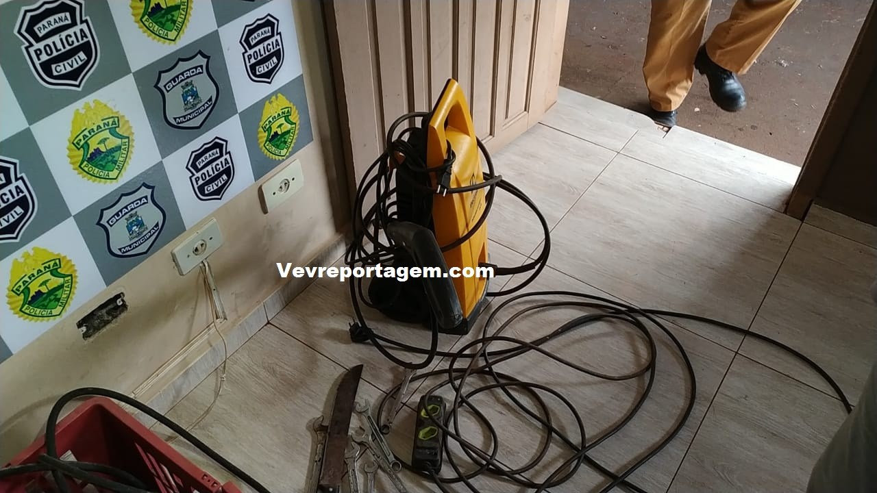 Com as características repassadas do homem, a equipe policial começou a realizar patrulhamento no Jardim Jupira, quando avistaram um homem com as mesmas características passadas, vendendo em uma residencia um dos objetos furtados uma maquina de lavar calçadas. Momento este que o individuou viu a viatura e começou a correr pulando muros das residências, foi quando na fuga ele subiu em cima do telhado de uma residência e acabou caindo para o interior da casa. A mulher que estava dentro da residência grávida de 8 meses com o susto a mesma acabou estourando a bolsa, o homem foi preso e encaminhado para a delegacia, já a mulher foi socorrida pelo SAMU encaminhada para o Hospital, onde sera realizado o parto.