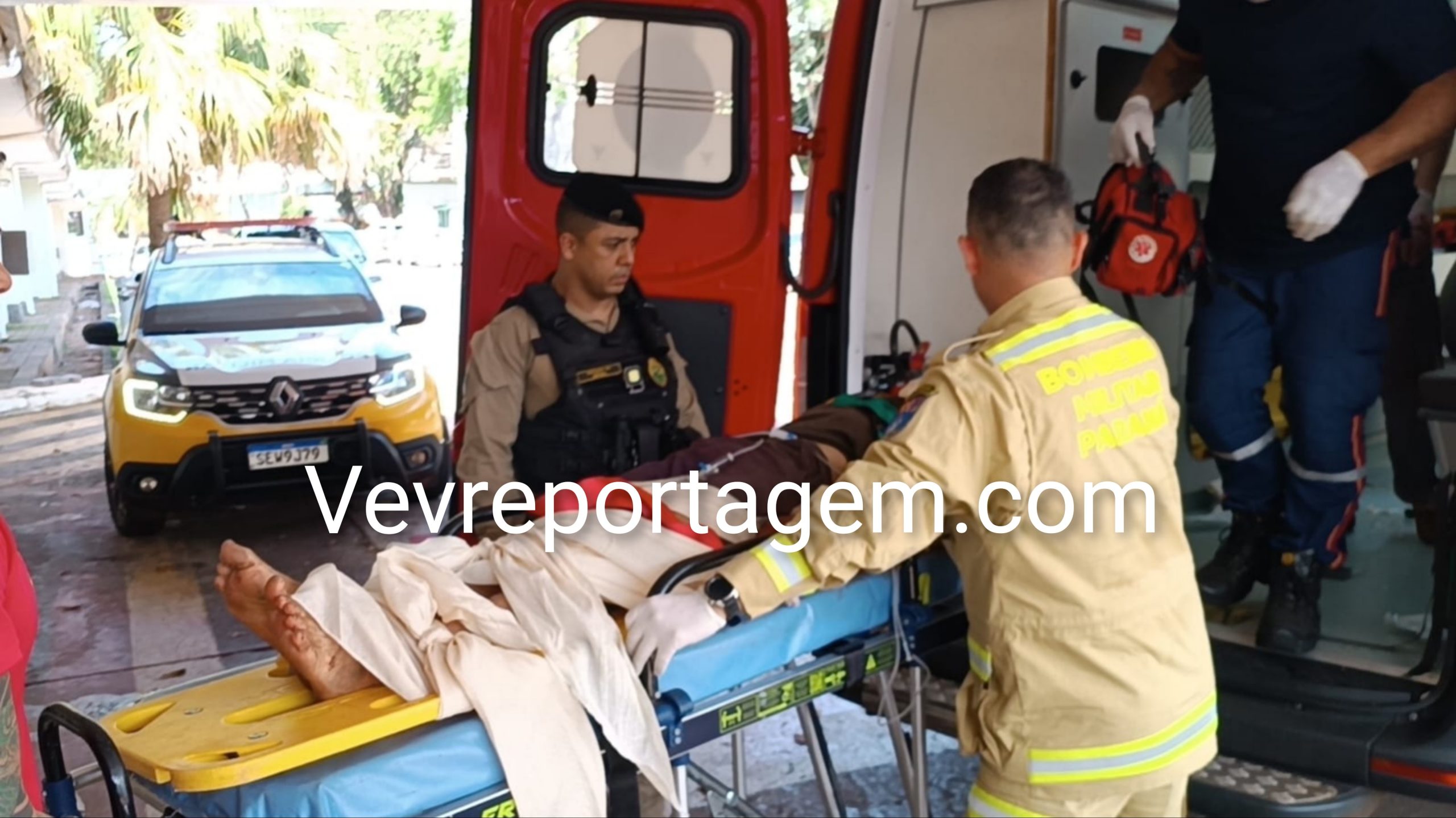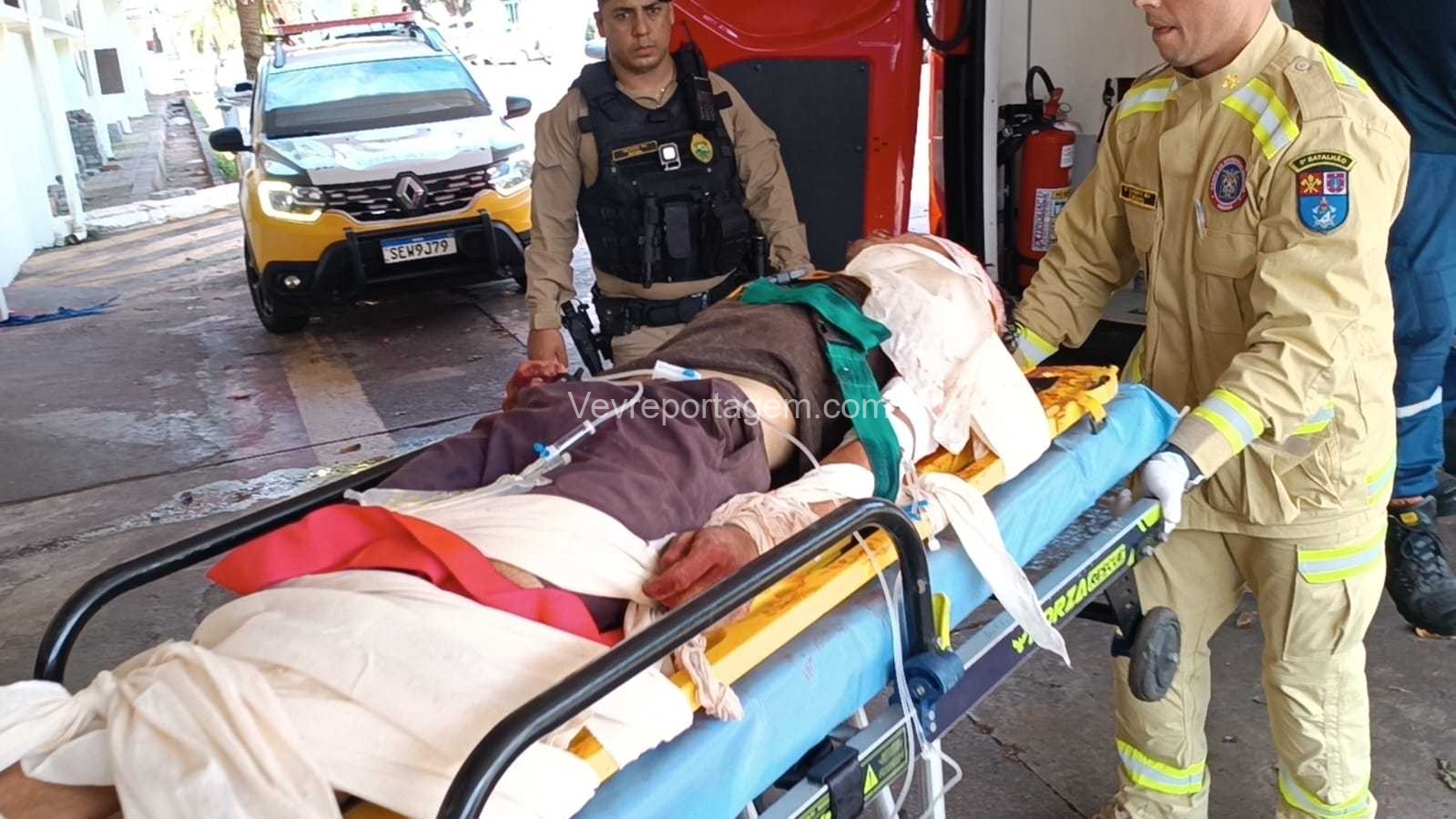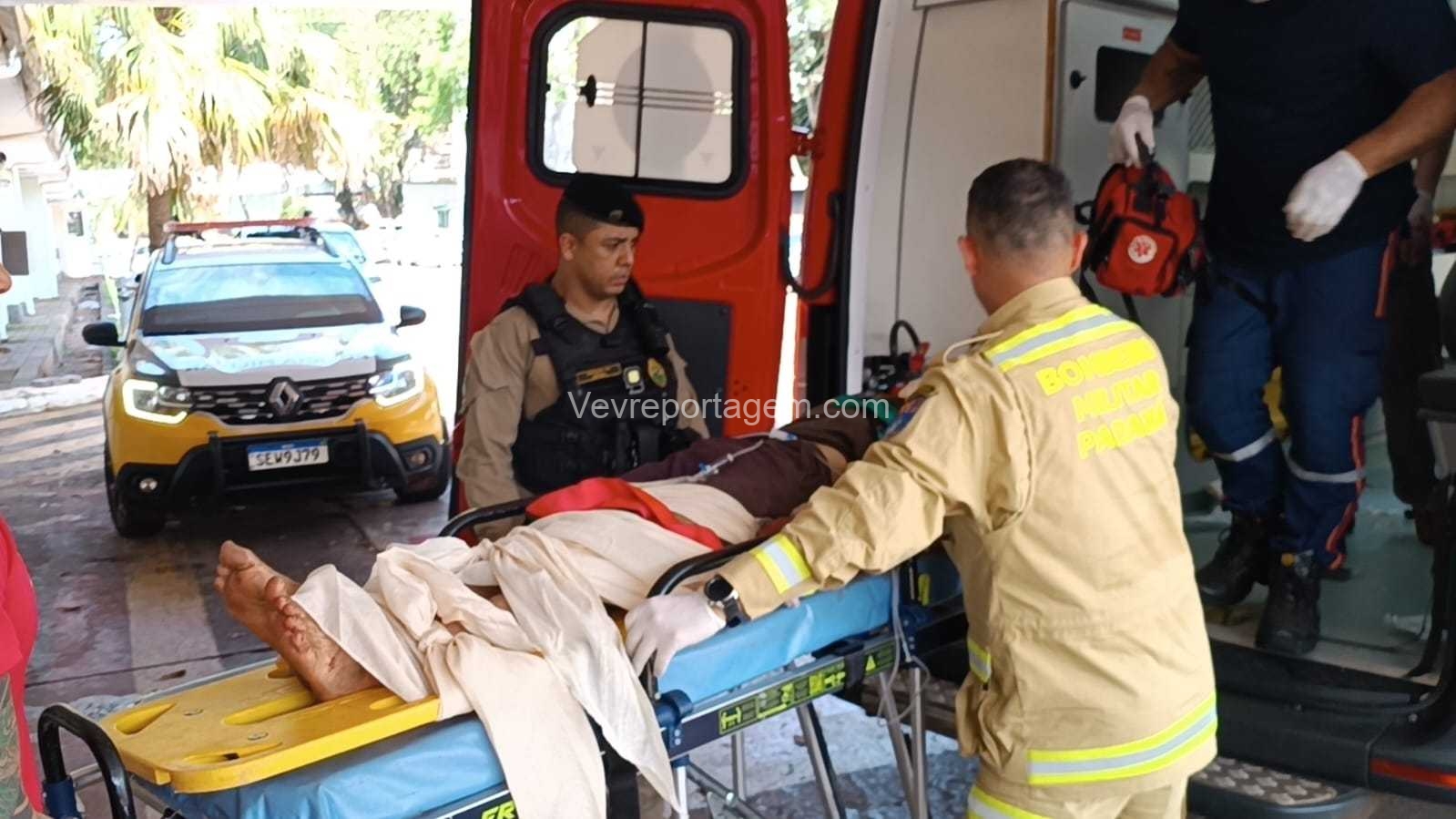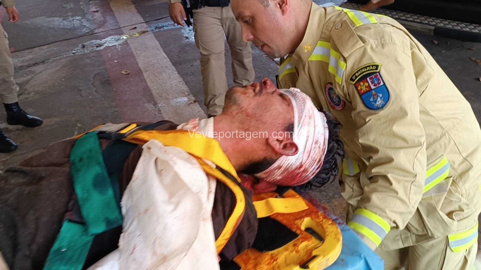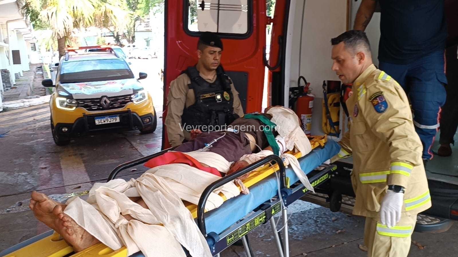 Os socorristas realizaram os primeiros atendimentos, imobilizaram o agressor e o colocaram na ambulância, onde ele foi avaliado por um médico do SAMU (Serviço de Atendimento Móvel de Urgência). Em seguida, o homem foi encaminhado ao Hospital Municipal, sob escolta policial.