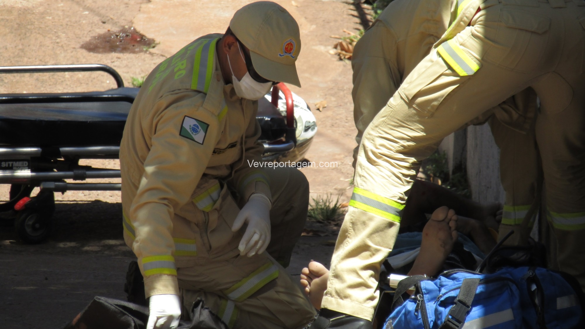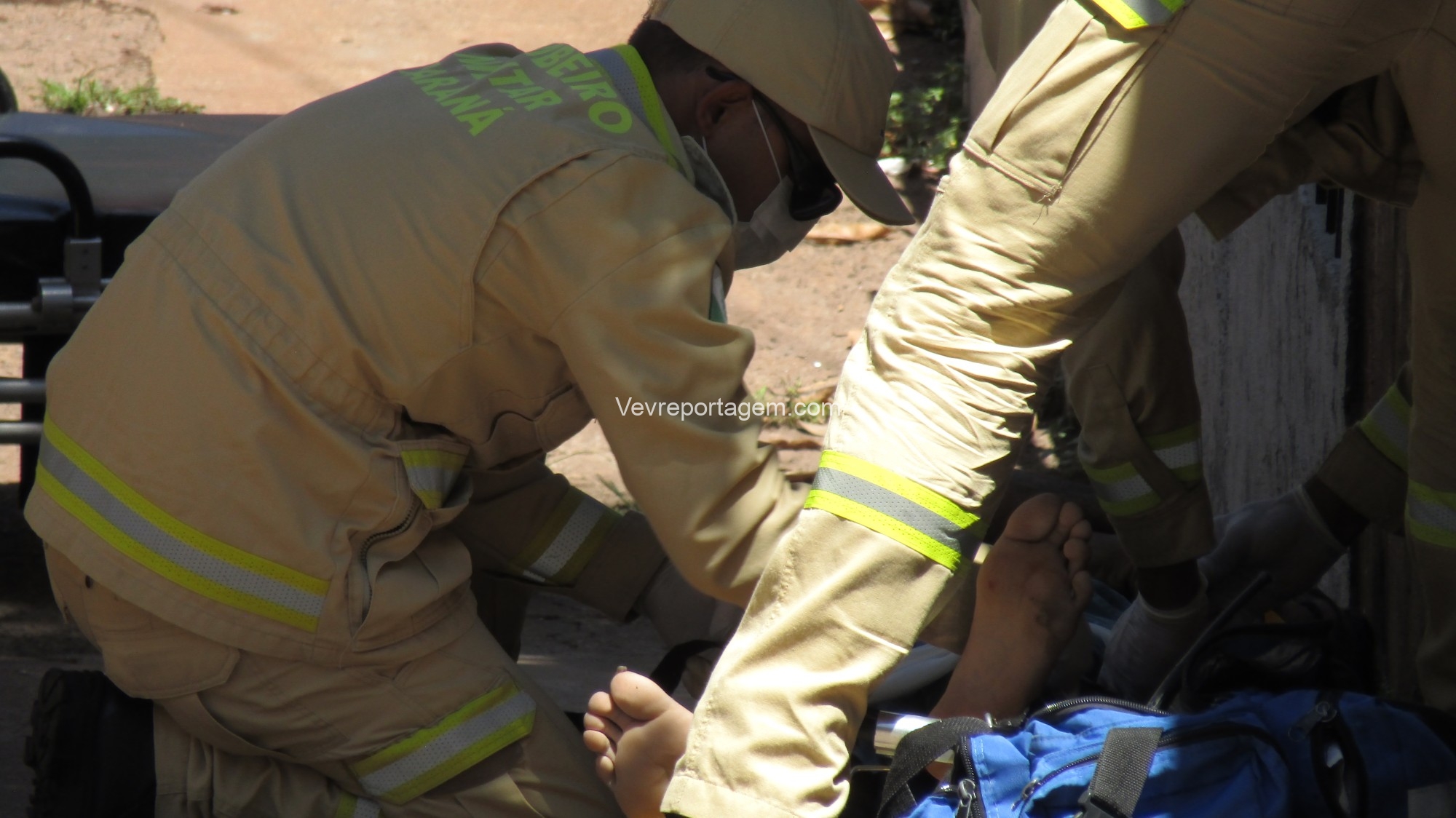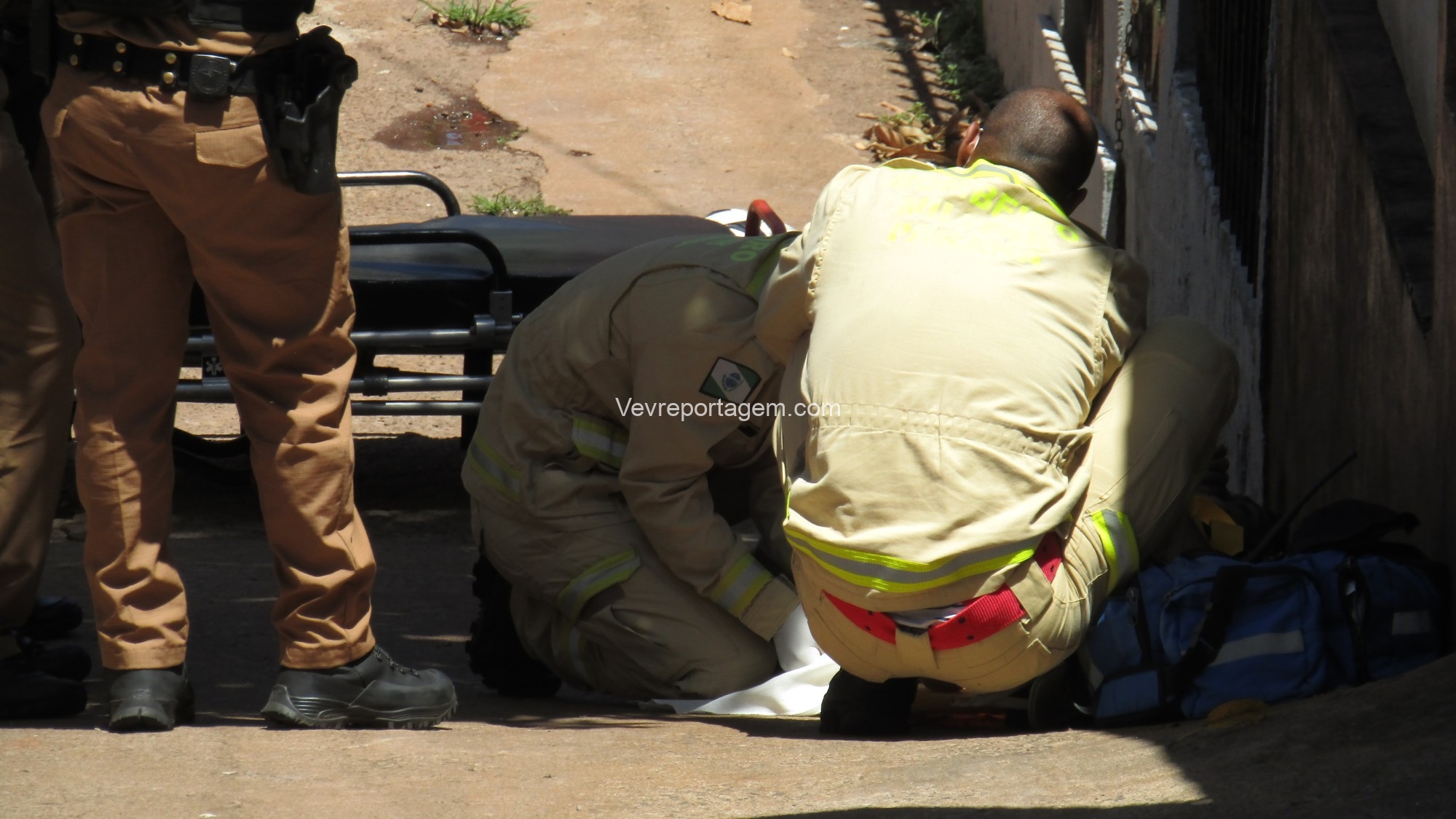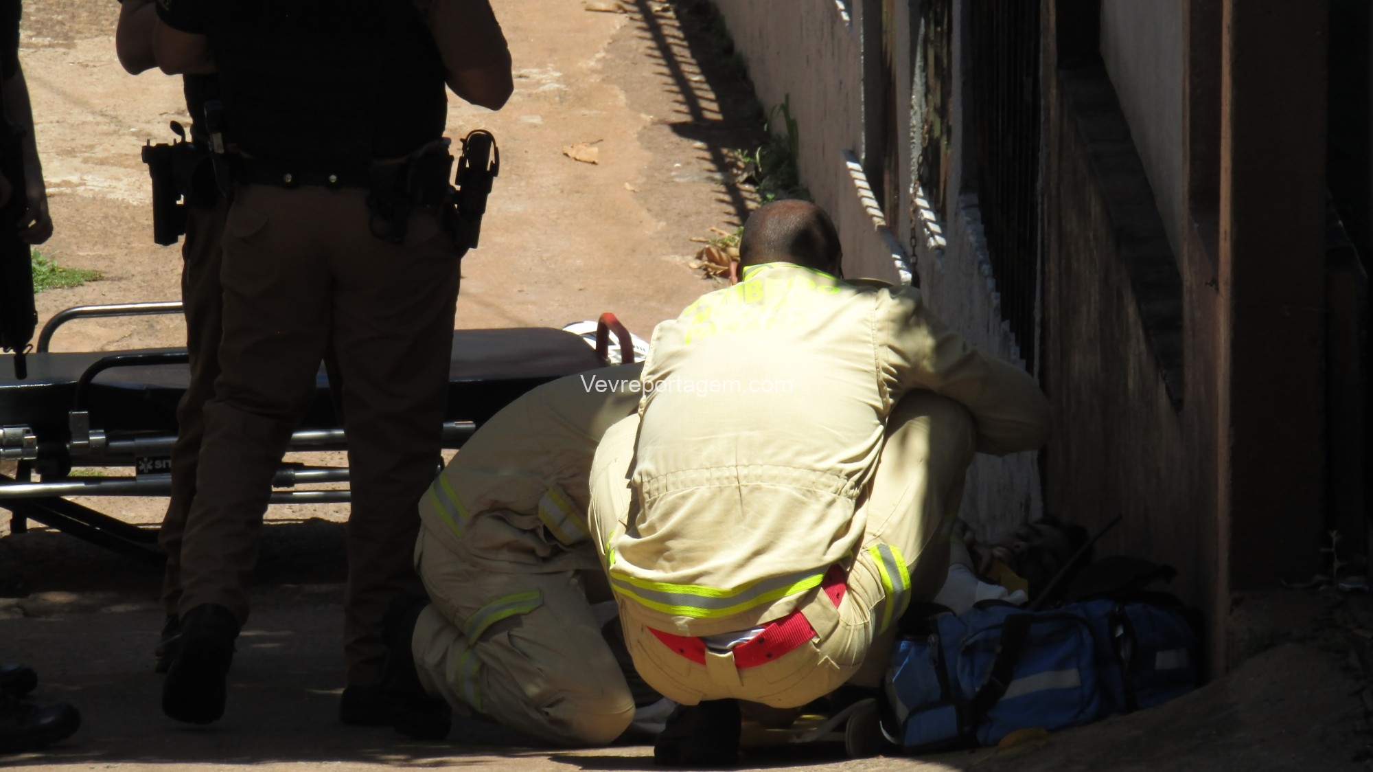 No local, os policiais militares estavam fazendo a guarda de um homem com um ferimento de disparo de arma de fogo na perna. Os socorristas avaliaram o mesmo e acionaram o apoio médico.